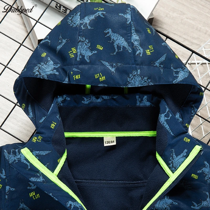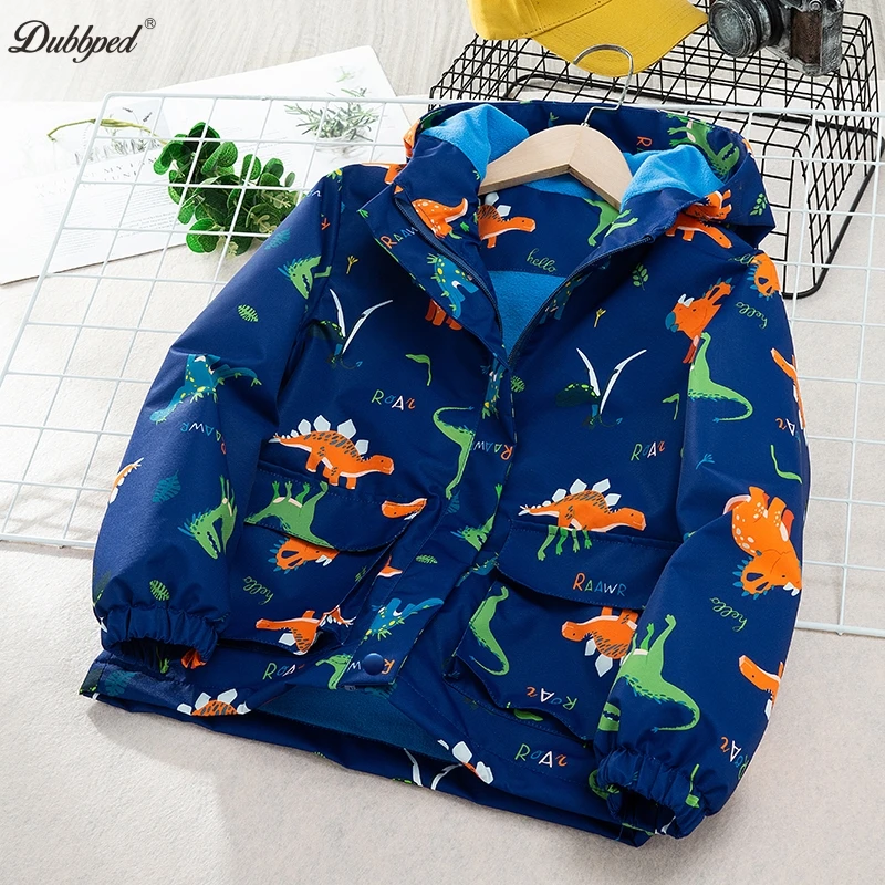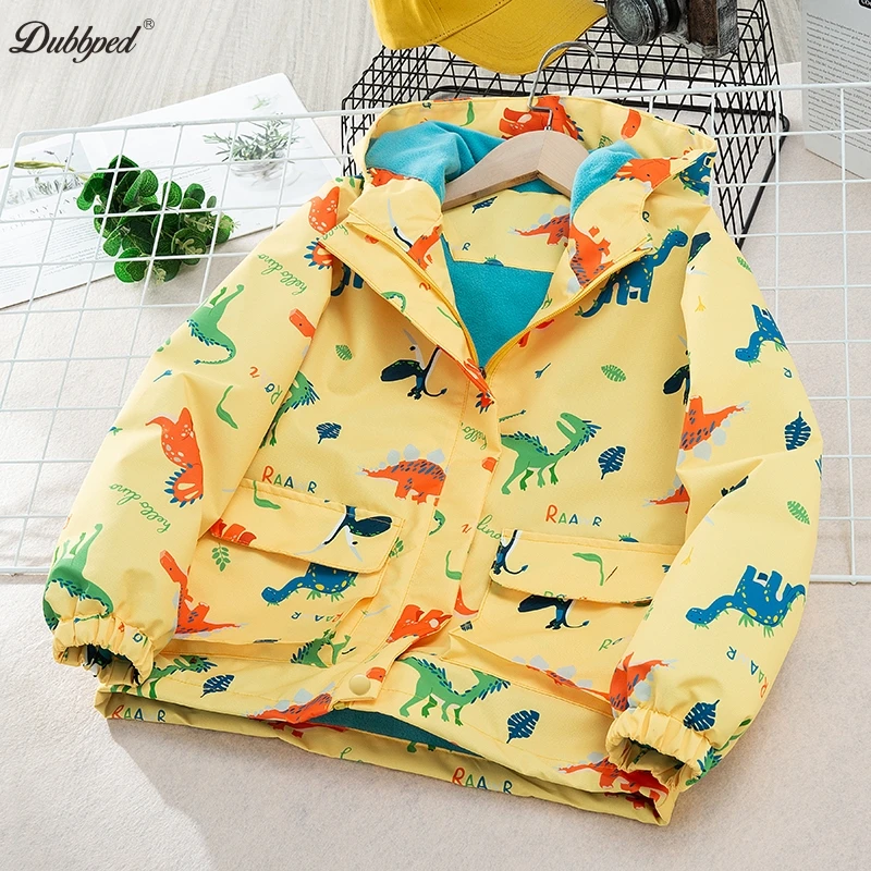 Dubbped Kids dinosaur Jacket ragazzi impermeabile cappello staccabile Design cappotto giacca a vento capispalla panno antivento in pile polare