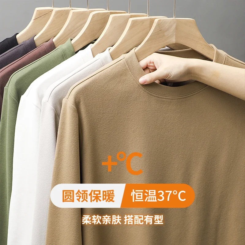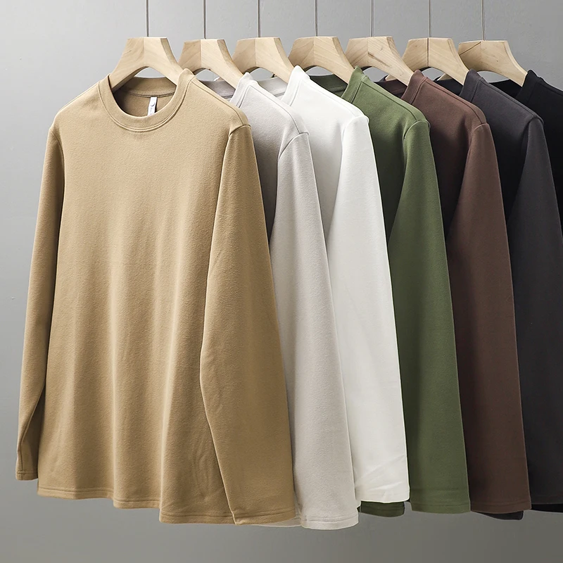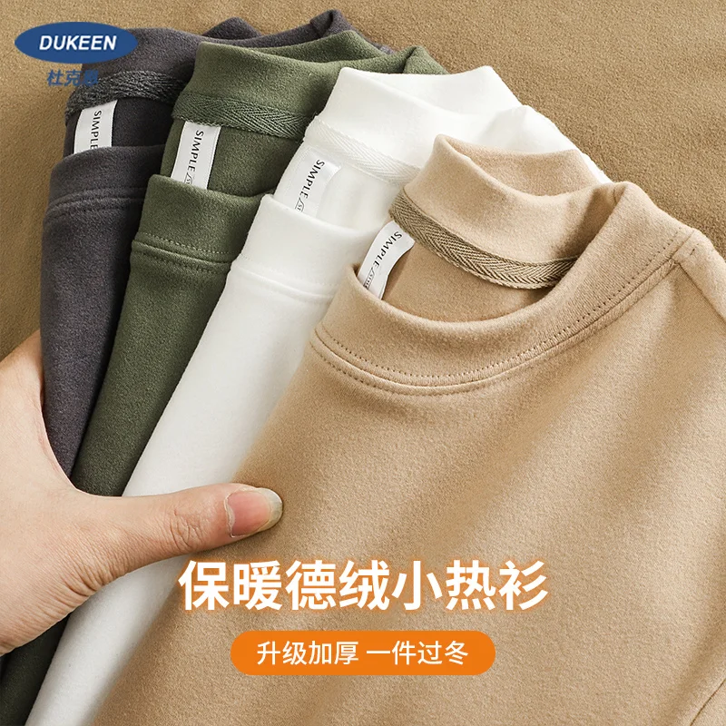DUKEEN 350G T-shirt a maniche lunghe in tessuto Dralon su due lati per uomo Autunno e inverno Canottiere in pile caldo tinta unita da uomo