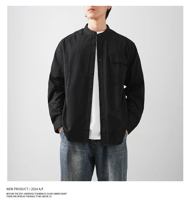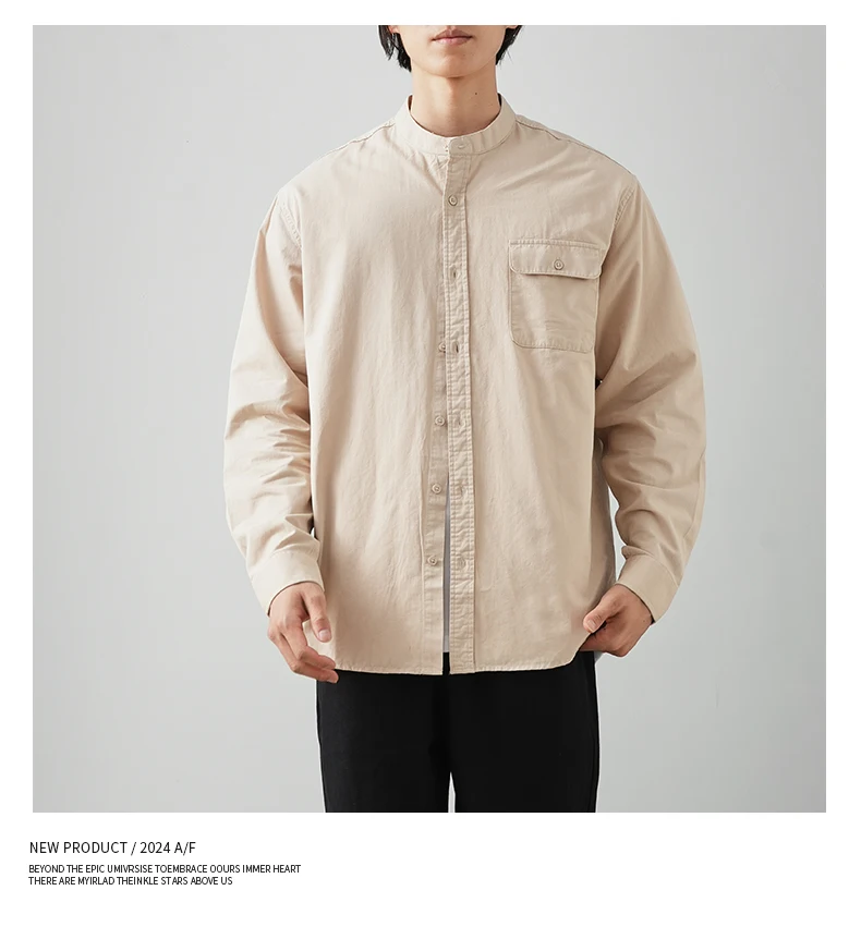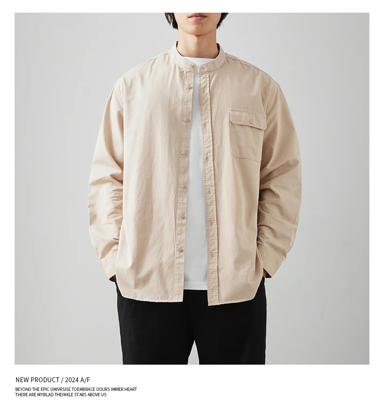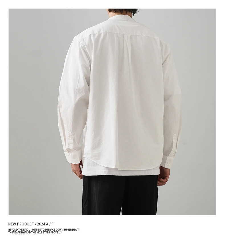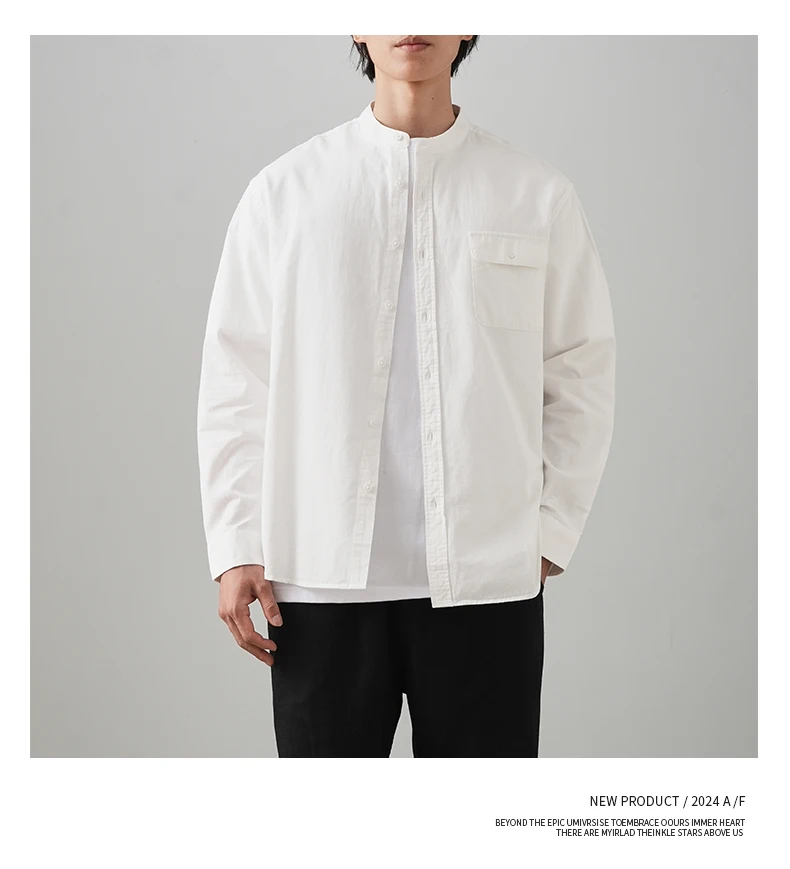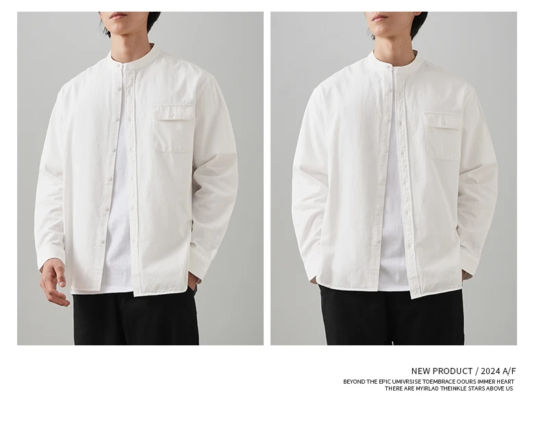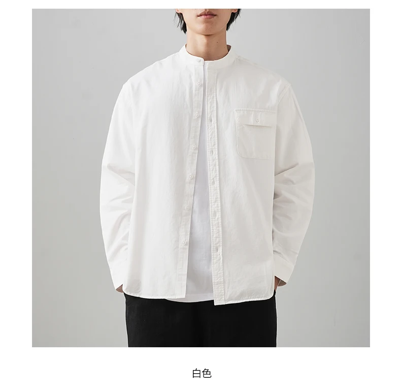 DUKEEN Camicia da uomo con colletto alla coreana 2025 Primavera e autunno 100% cotone Stile coreano Manica lunga Casual Top bianchi Abbigliamento uomo 1DUKEEN Camicia da uomo con colletto alla coreana 2025 Primavera e autunno 100% cotone Stile coreano Manica lunga Casual Top bianchi Abbigliamento uomo