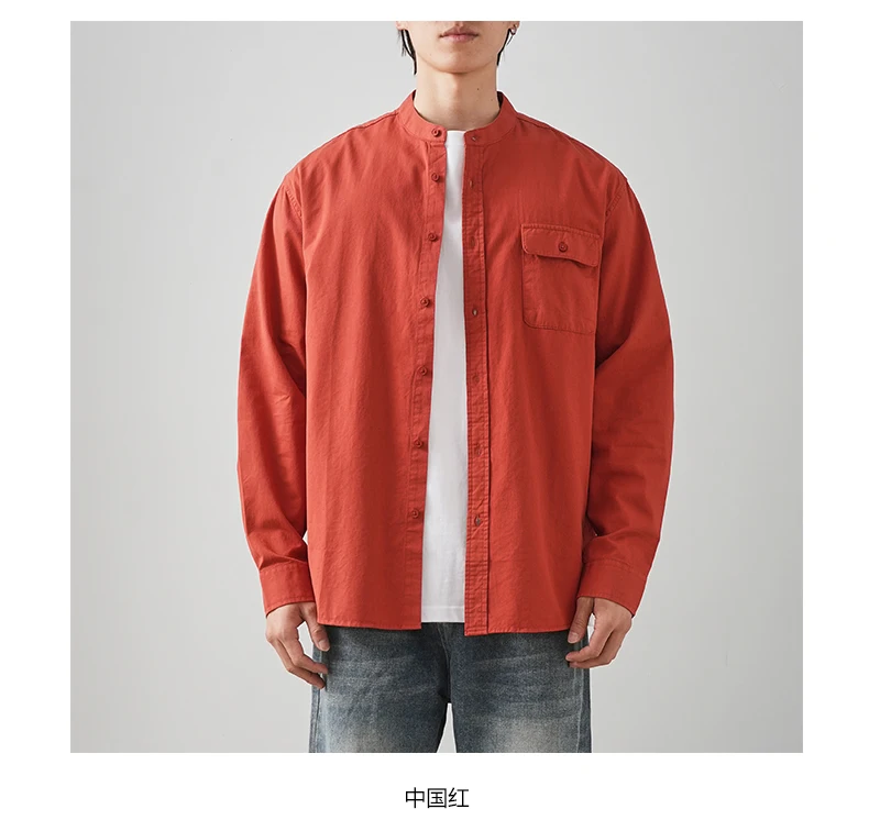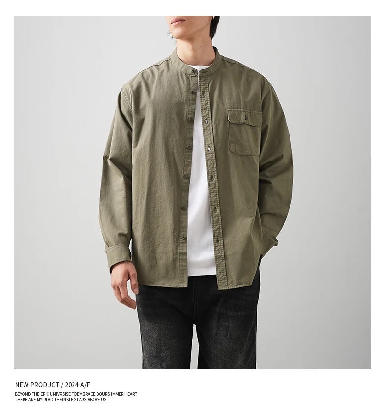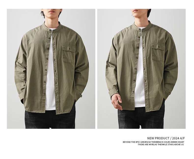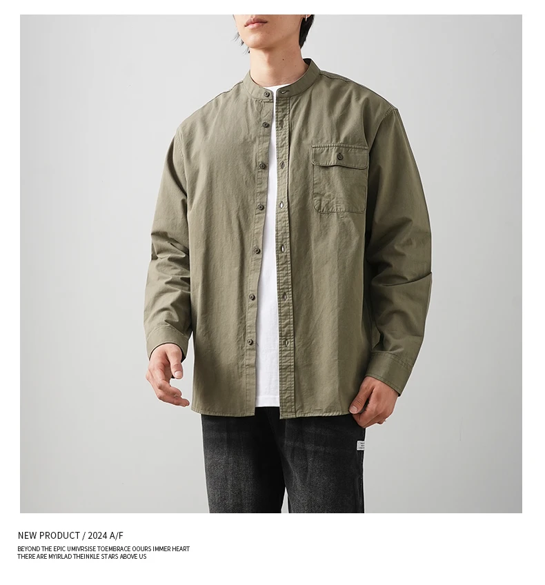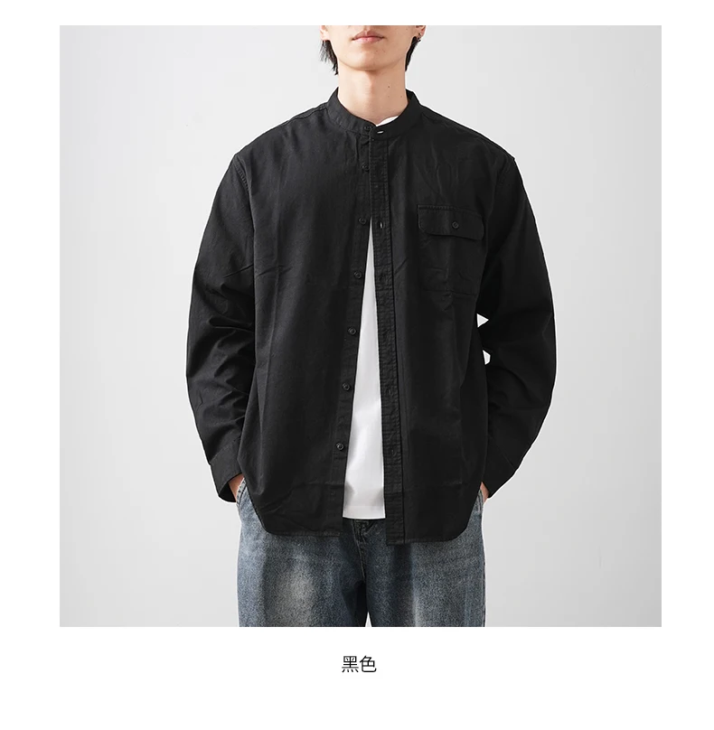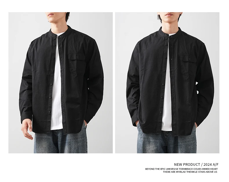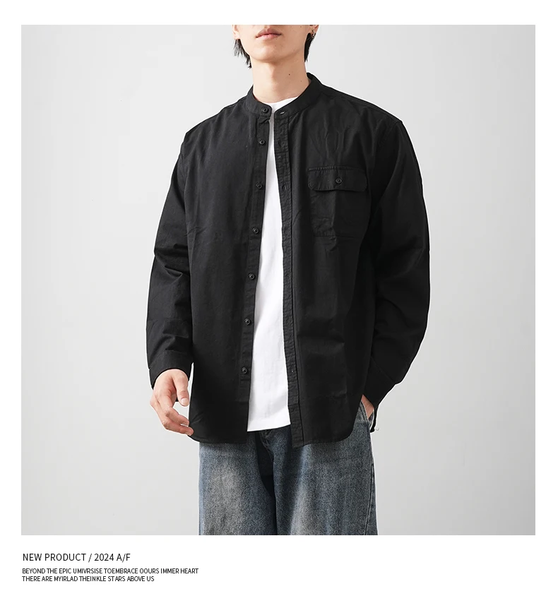 DUKEEN Camicia da uomo con colletto alla coreana 2025 Primavera e autunno 100% cotone Stile coreano Manica lunga Casual Top bianchi Abbigliamento uomo 1DUKEEN Camicia da uomo con colletto alla coreana 2025 Primavera e autunno 100% cotone Stile coreano Manica lunga Casual Top bianchi Abbigliamento uomo