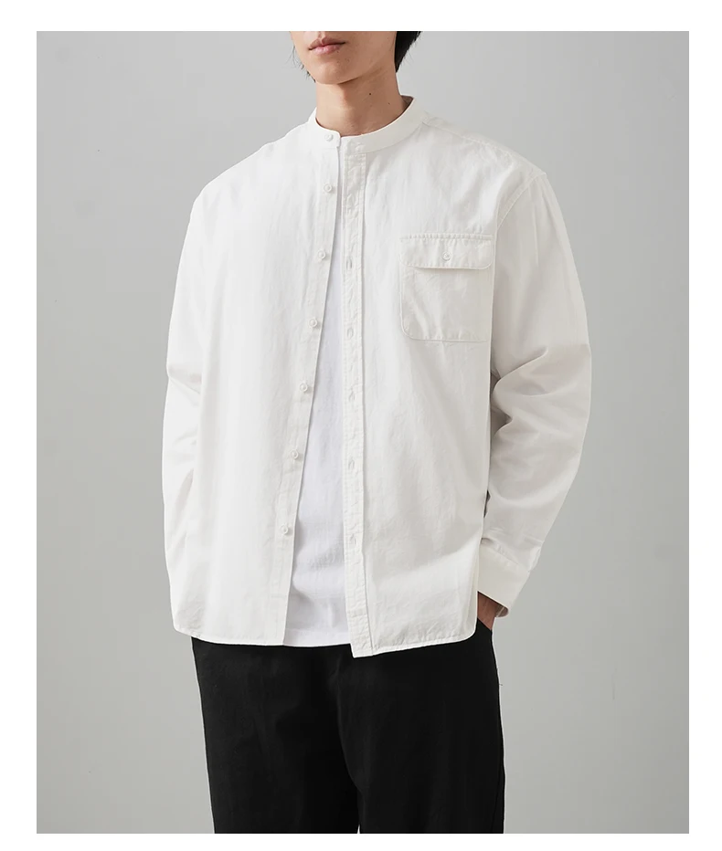 DUKEEN Camicia da uomo con colletto alla coreana 2025 Primavera e autunno 100% cotone Stile coreano Manica lunga Casual Top bianchi Abbigliamento uomo