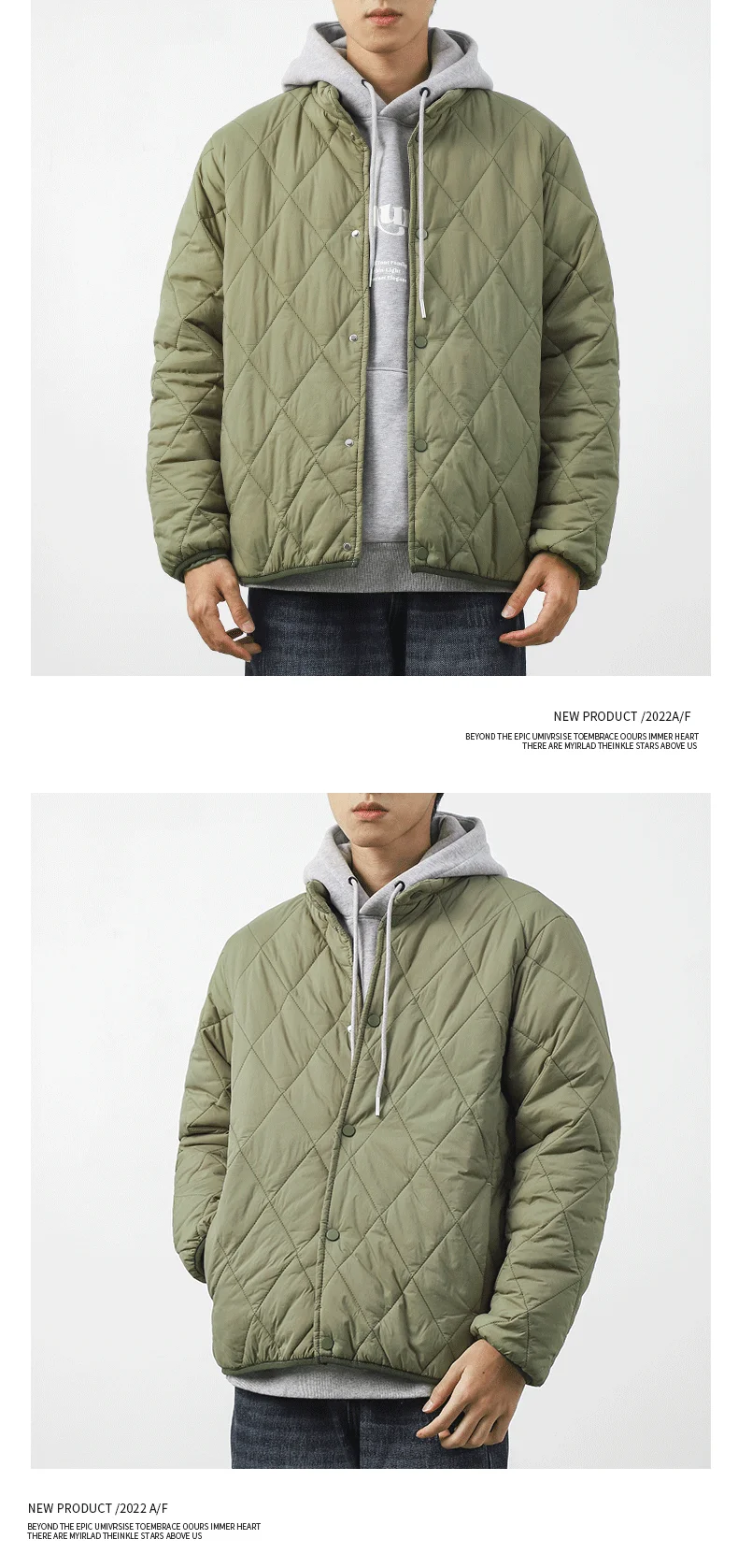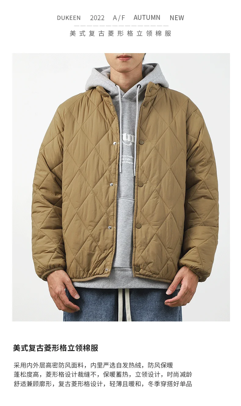 Dukeen Lingge Giacca in cotone cucito Giacca invernale da uomo vintage in tinta unita Giacca da baseball con colletto rialzato ispessito