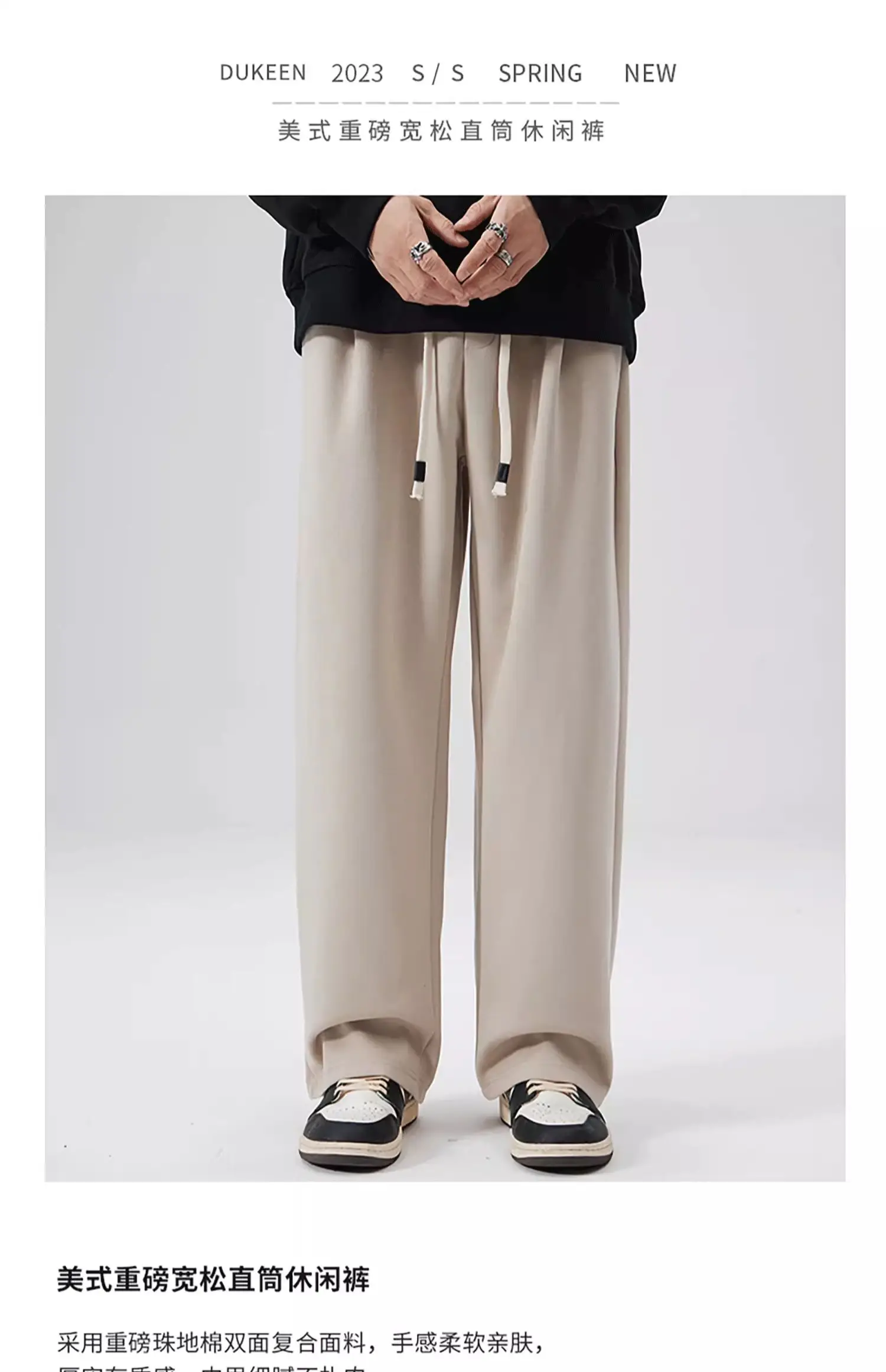 DUKEEN Pique Fabrics pantaloni della tuta per uomo pantaloni larghi causali a gamba dritta autunno e inverno tinta unita pantaloni sportivi in pile