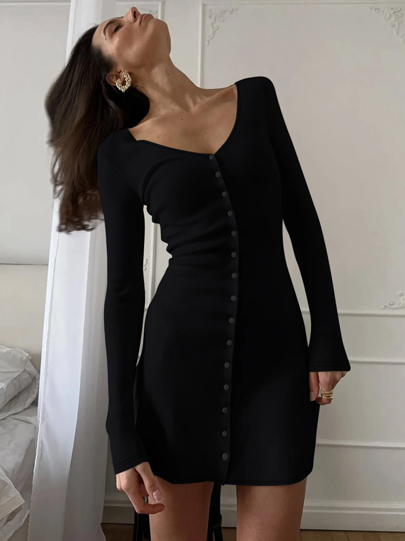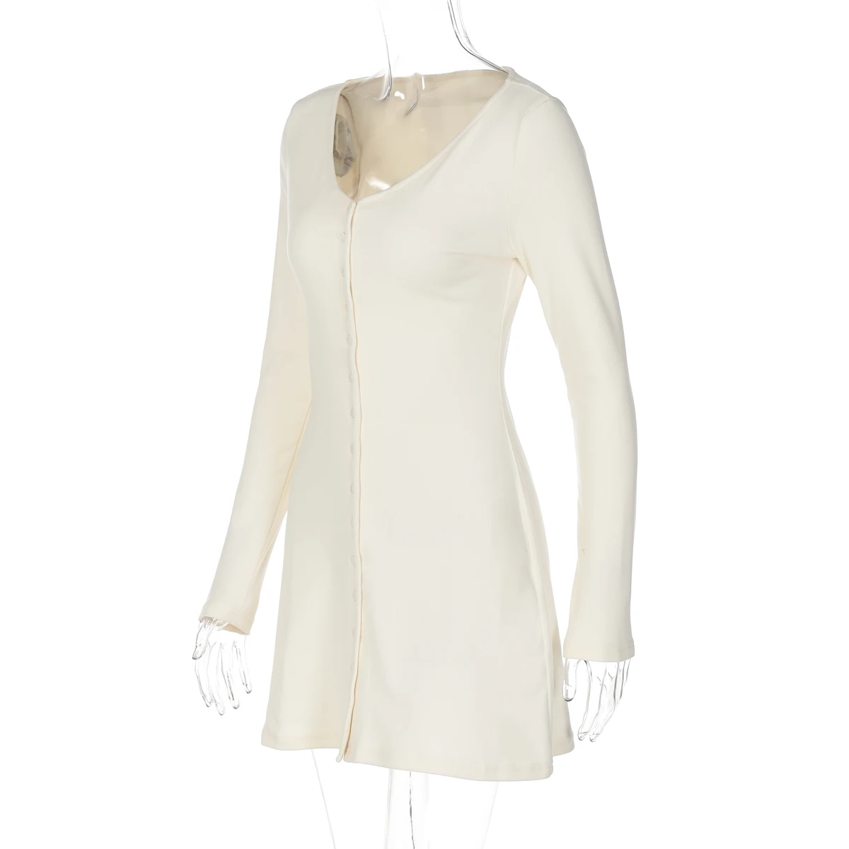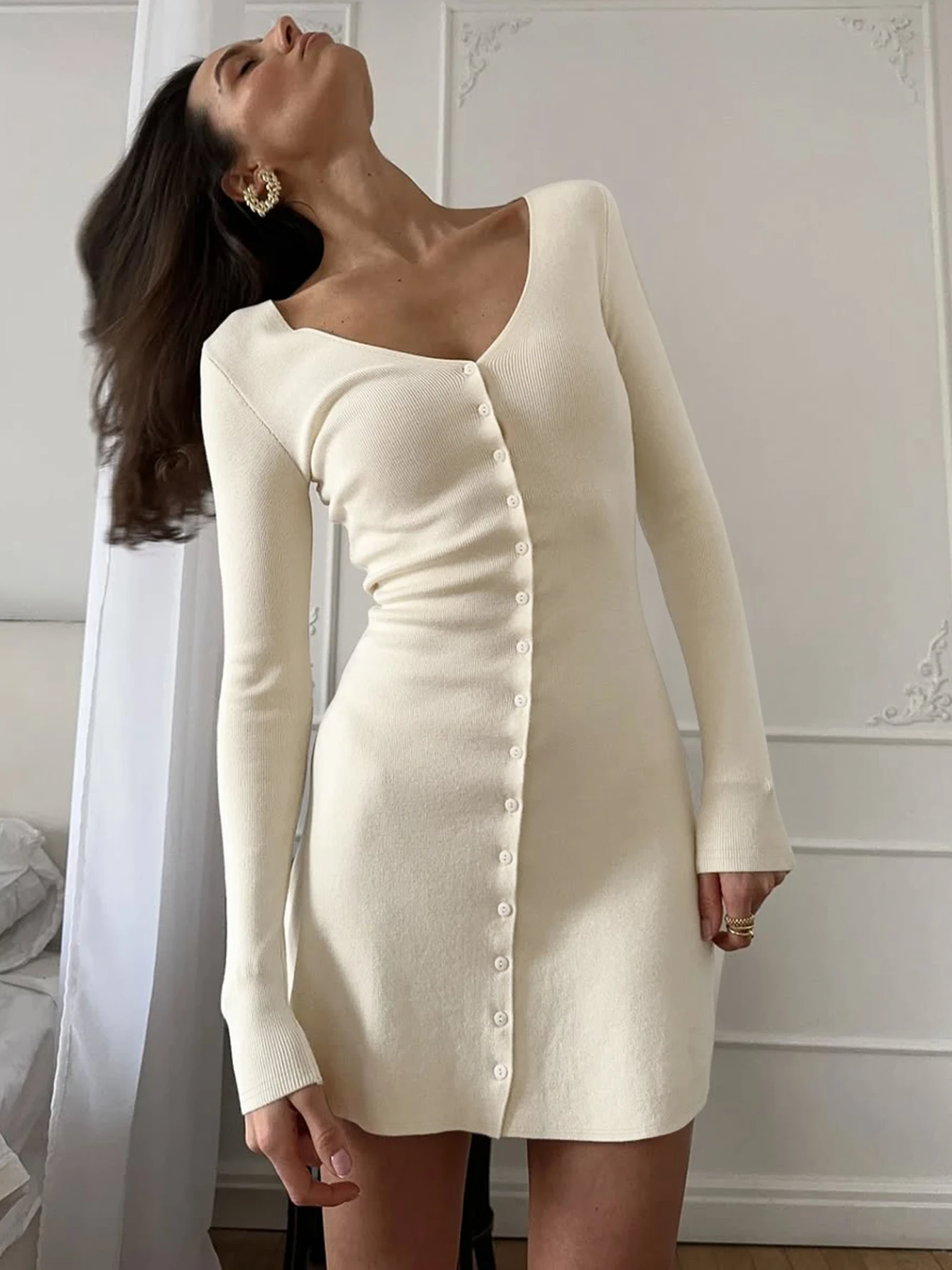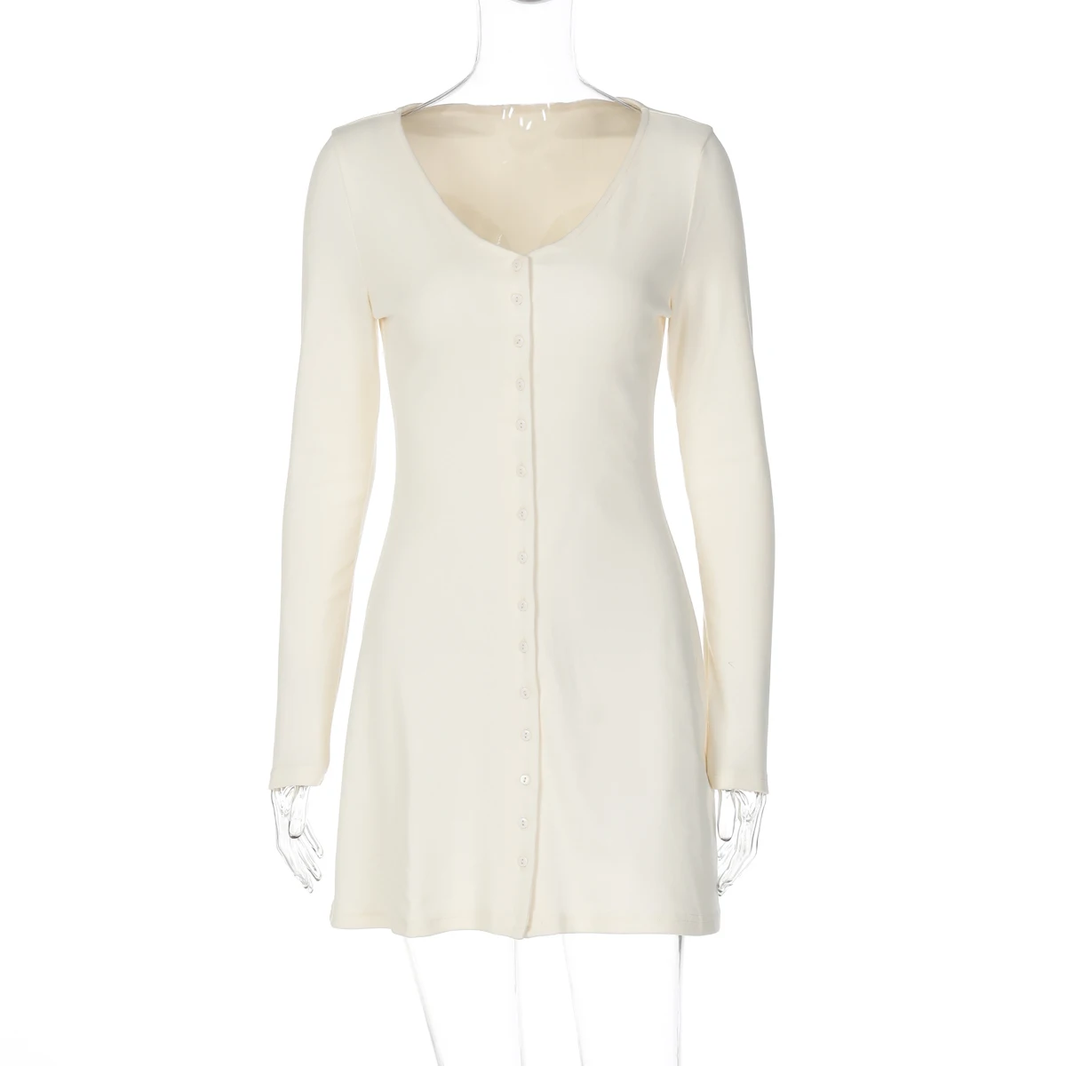 Dulzura 2025 Autunno Moda Sexy Con Scollo A V Manica Lunga Monopetto Sottile Mini Abito Solido Casual Vestito Delle Donne Del Partito Club Vestiti