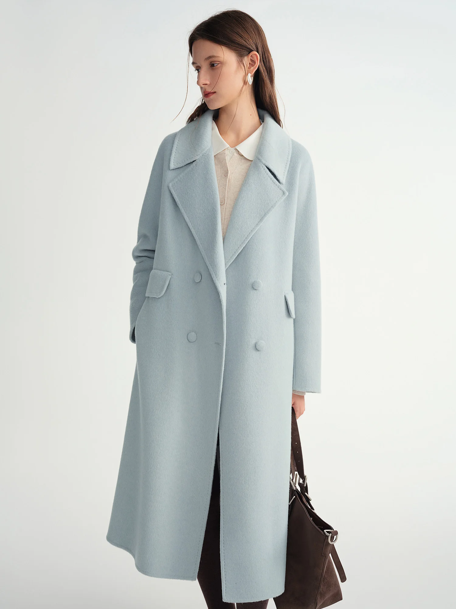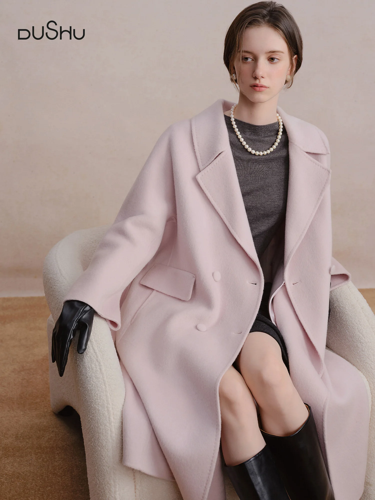 DUSHU Cappotto doppiopetto in lana di cashmere Elegante donna Pendolarismo Temperamento semplice Lunghezza a metà polpaccio Stile britannico