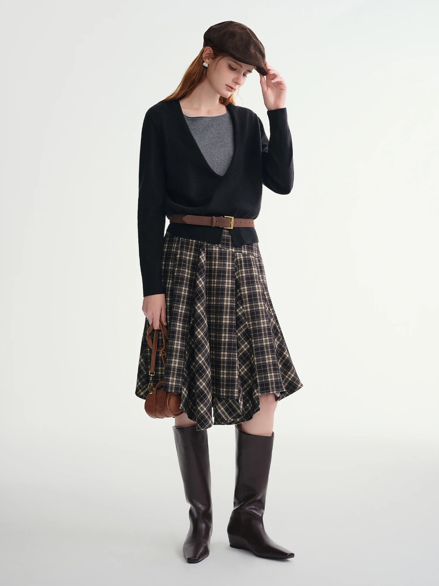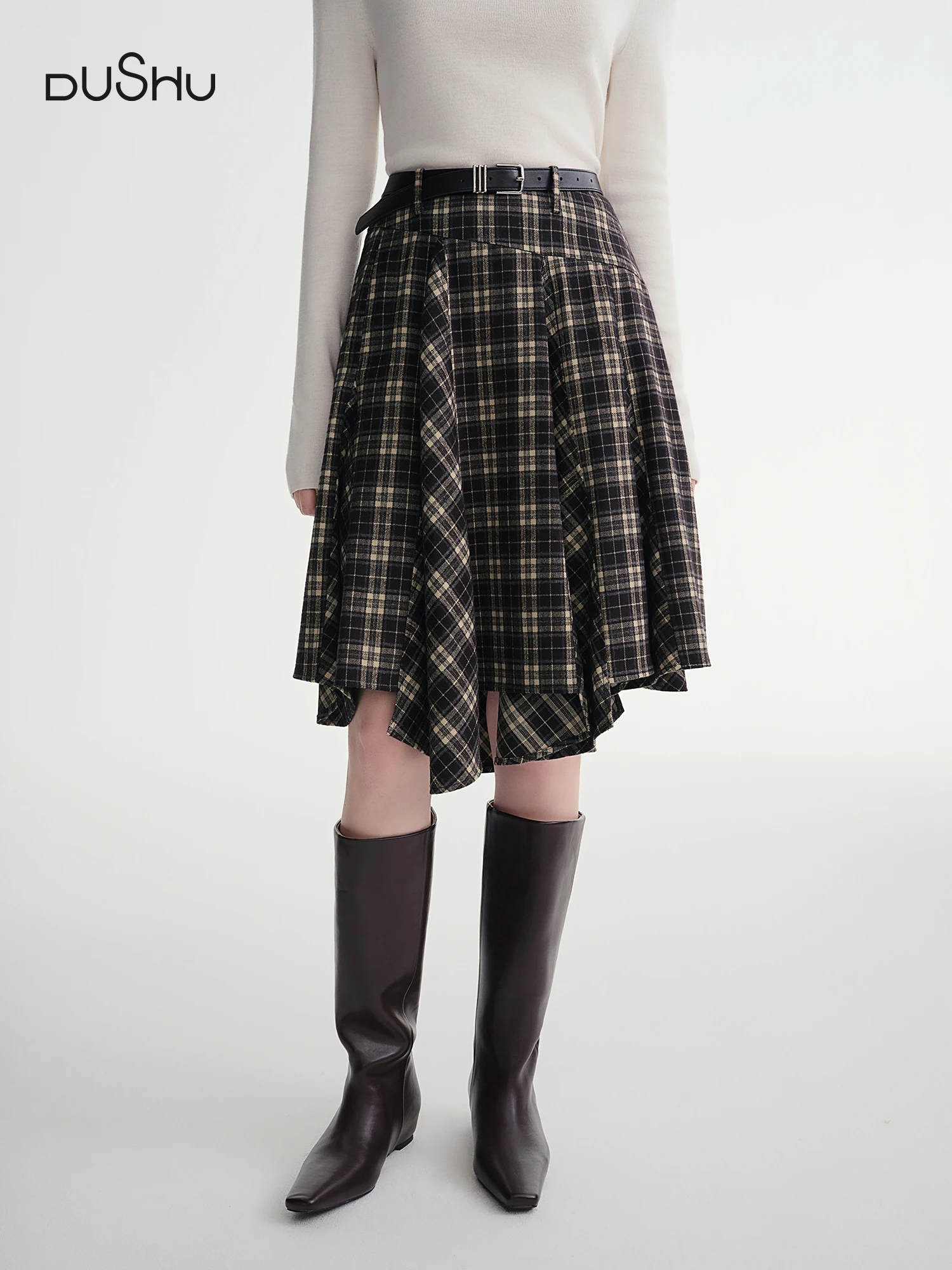 DUSHU Gonna a trapezio irregolare 2025 Gonna invernale Donna Vintage stile americano Plaid Streetwear Tempo libero di media lunghezza Y2k