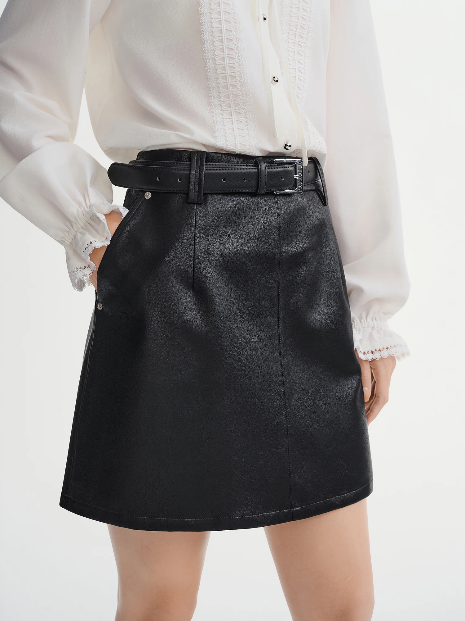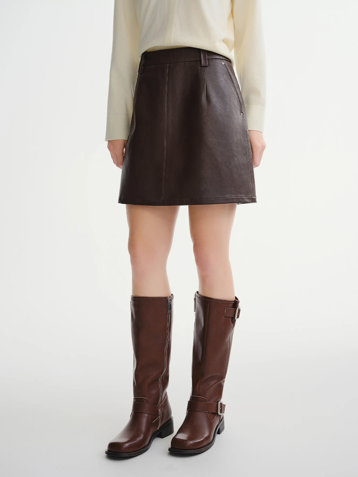 DUSHU Gonna in pelle a trapezio a vita alta da donna taglie forti Inverno 2025 Nuovo arrivo dalla mezza gonna della collezione marrone nero audace