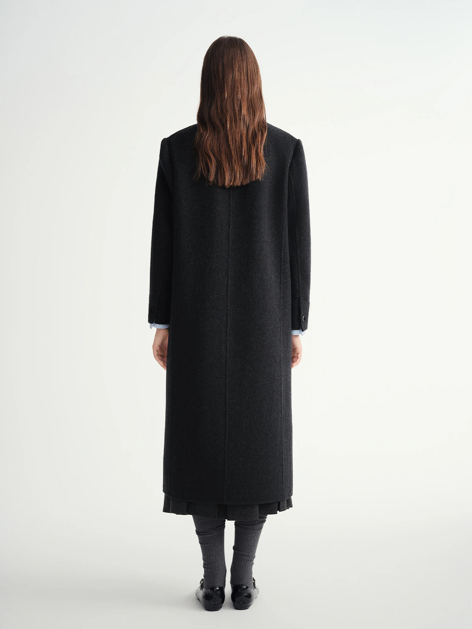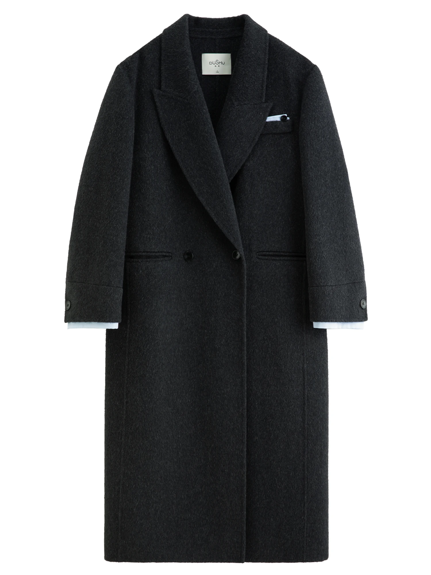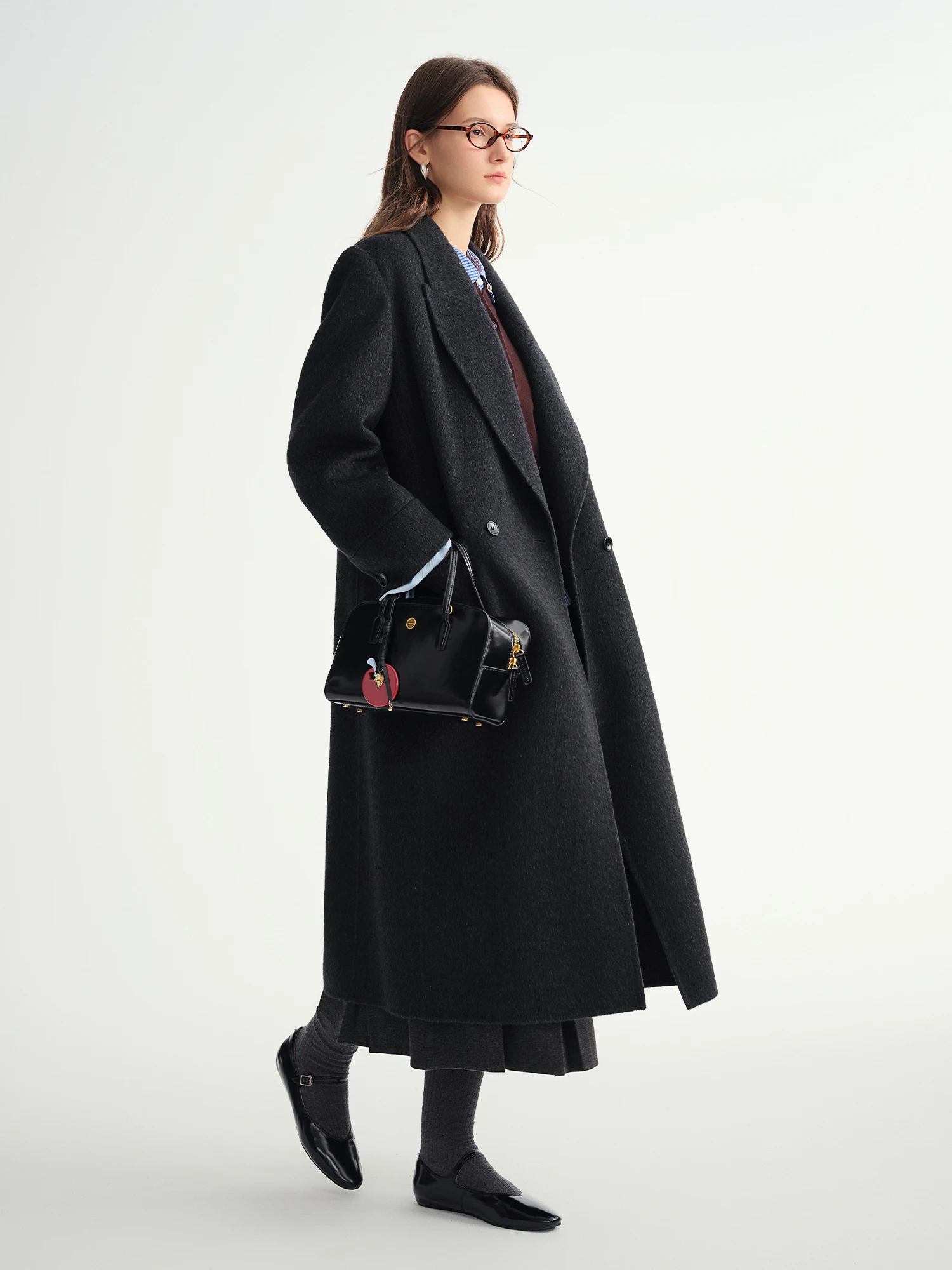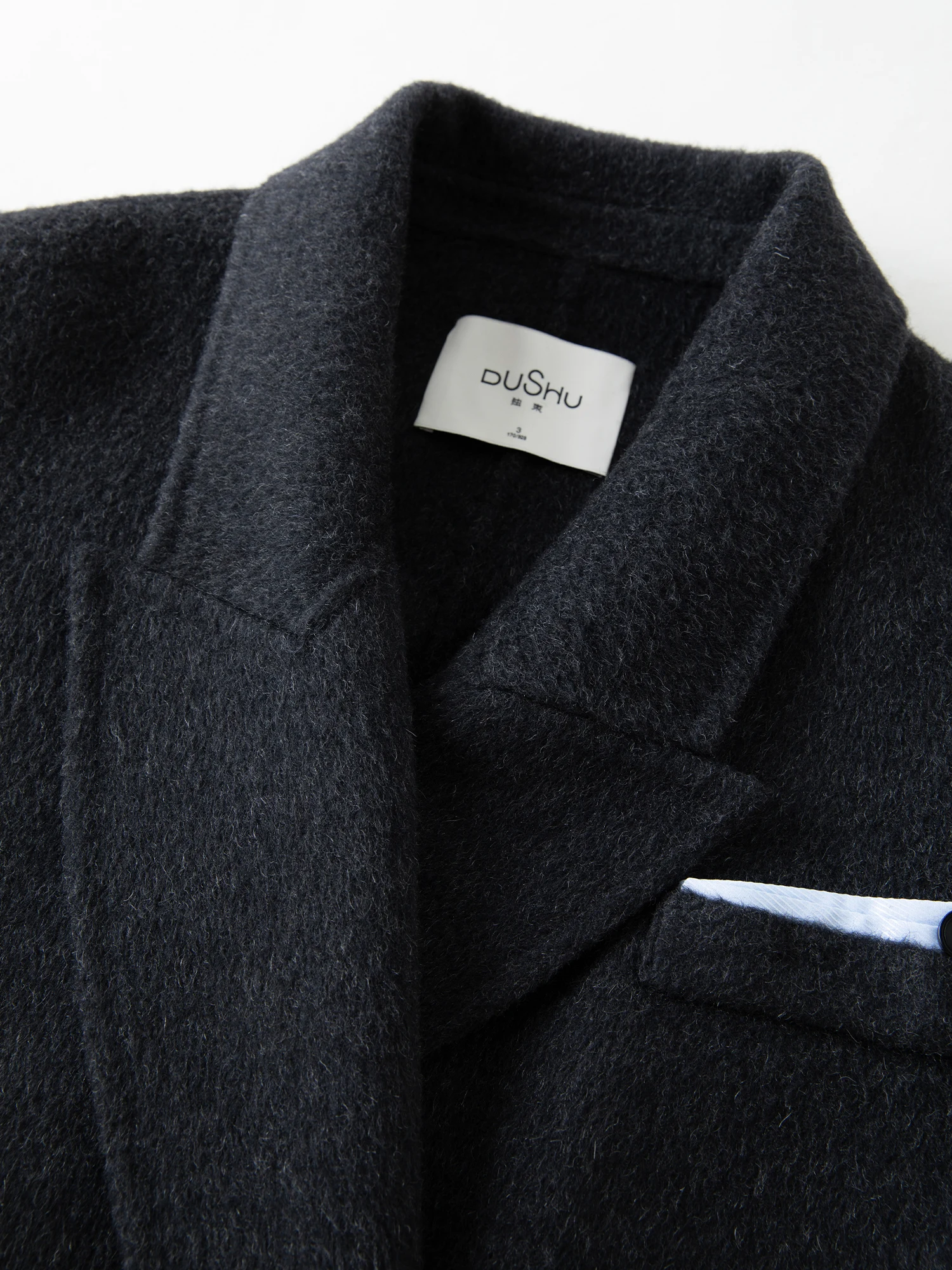 DUSHU Temperamento Colletto rovesciato Cappotto lungo di lana Spalla dritta Cappotto di pura lana Stile europeo Pendolarismo Elegante