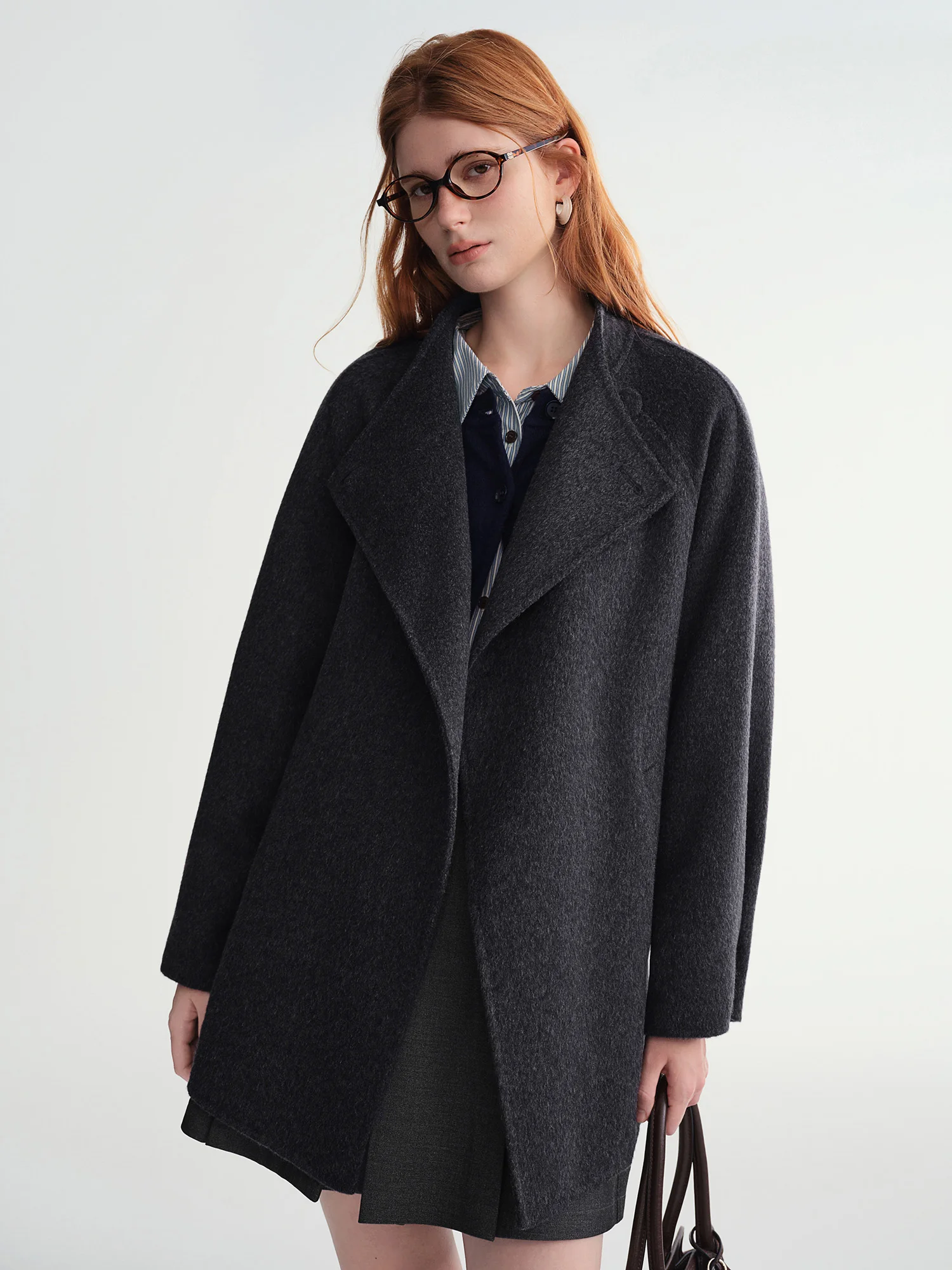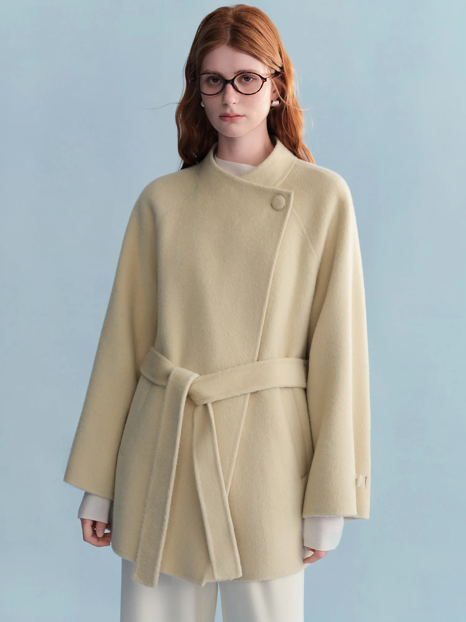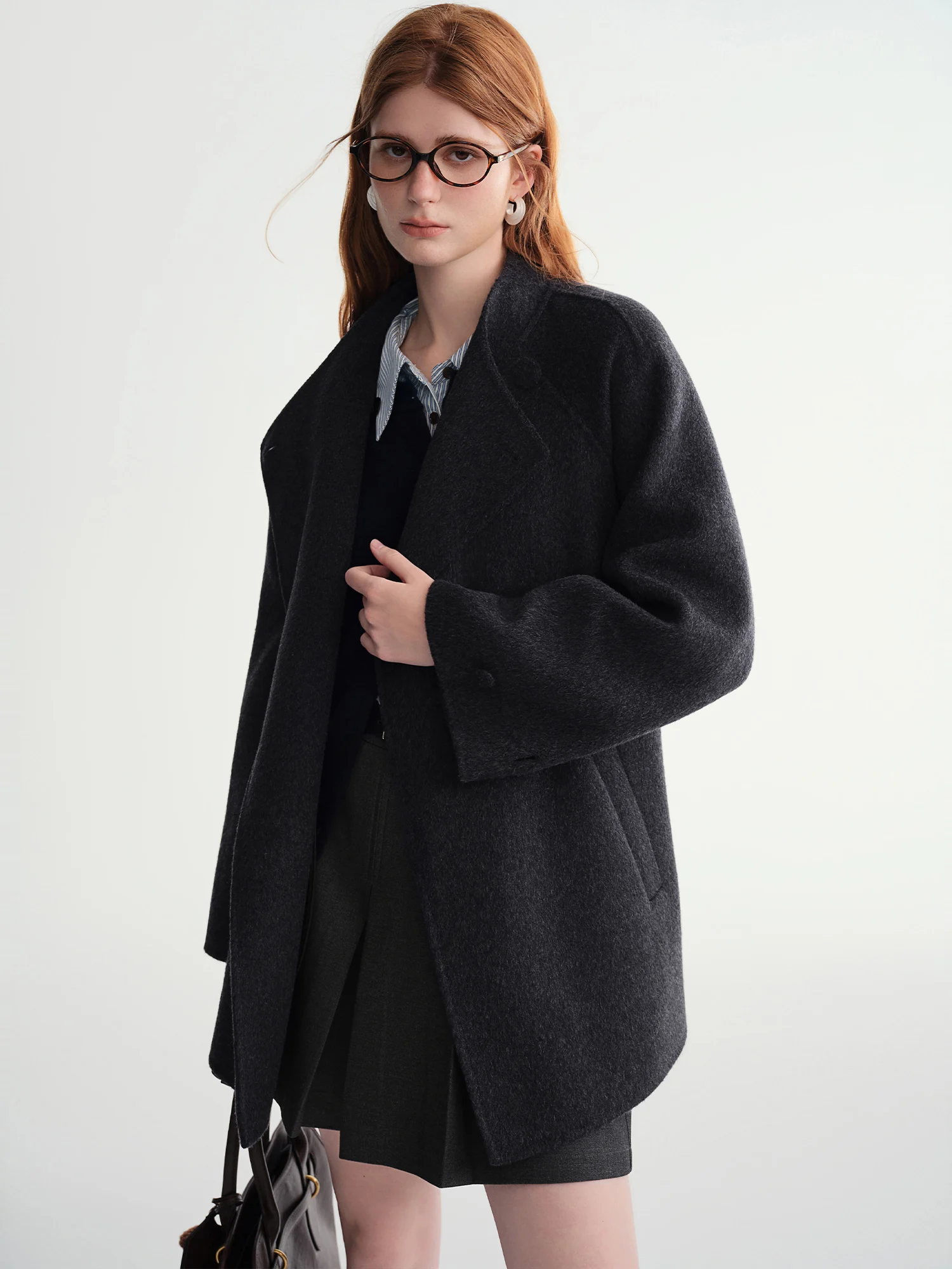 DUSHU Winter 2025 Cappotto corto da donna in misto alpaca – Giacca in tweed misto lana double face con colletto rialzato Eleganza casual