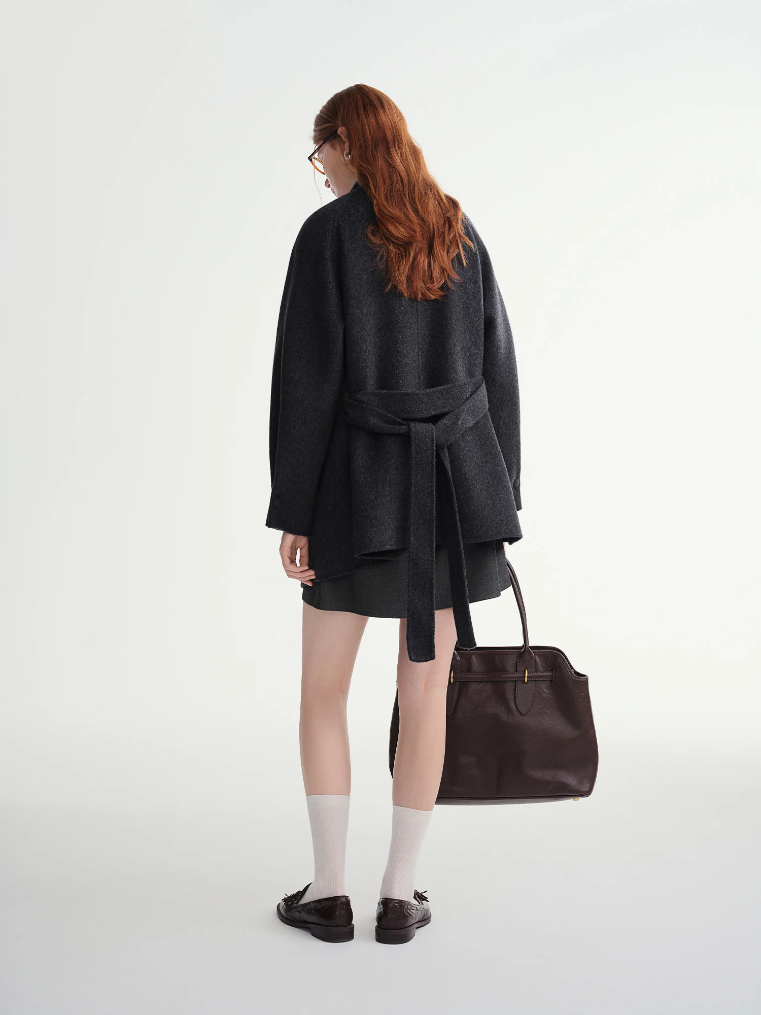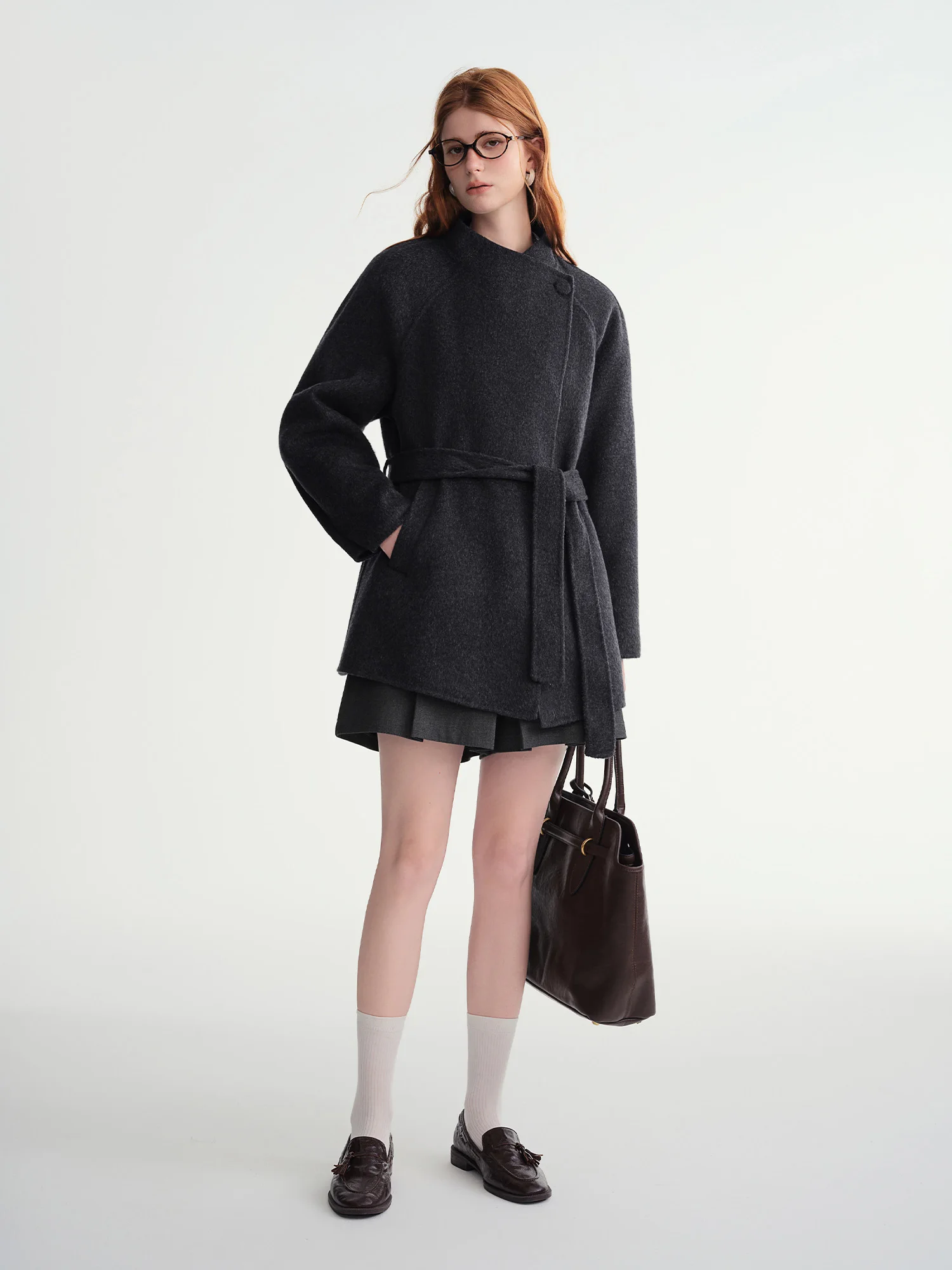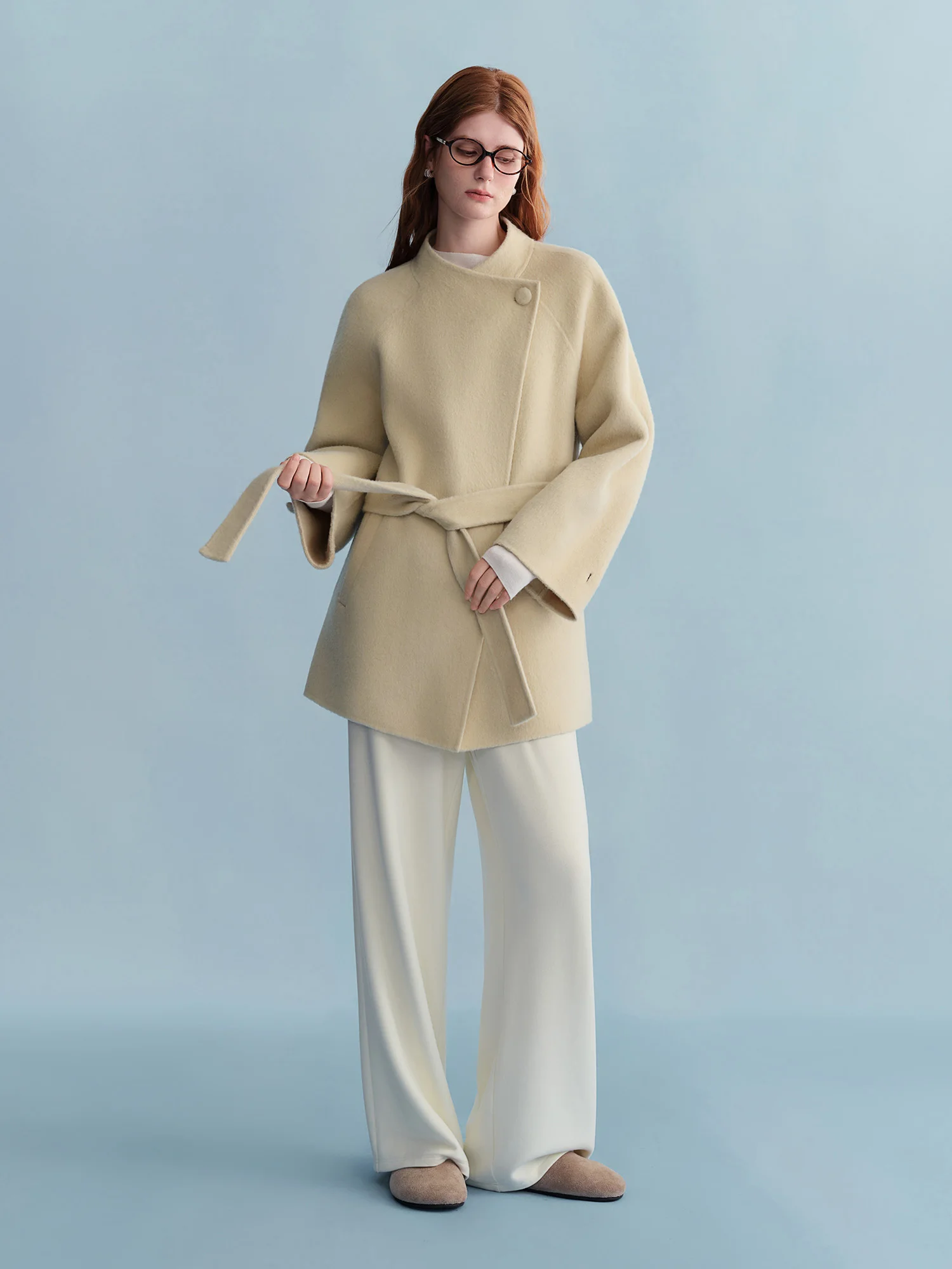 DUSHU Winter 2025 Cappotto corto da donna in misto alpaca – Giacca in tweed misto lana double face con colletto rialzato Eleganza casual