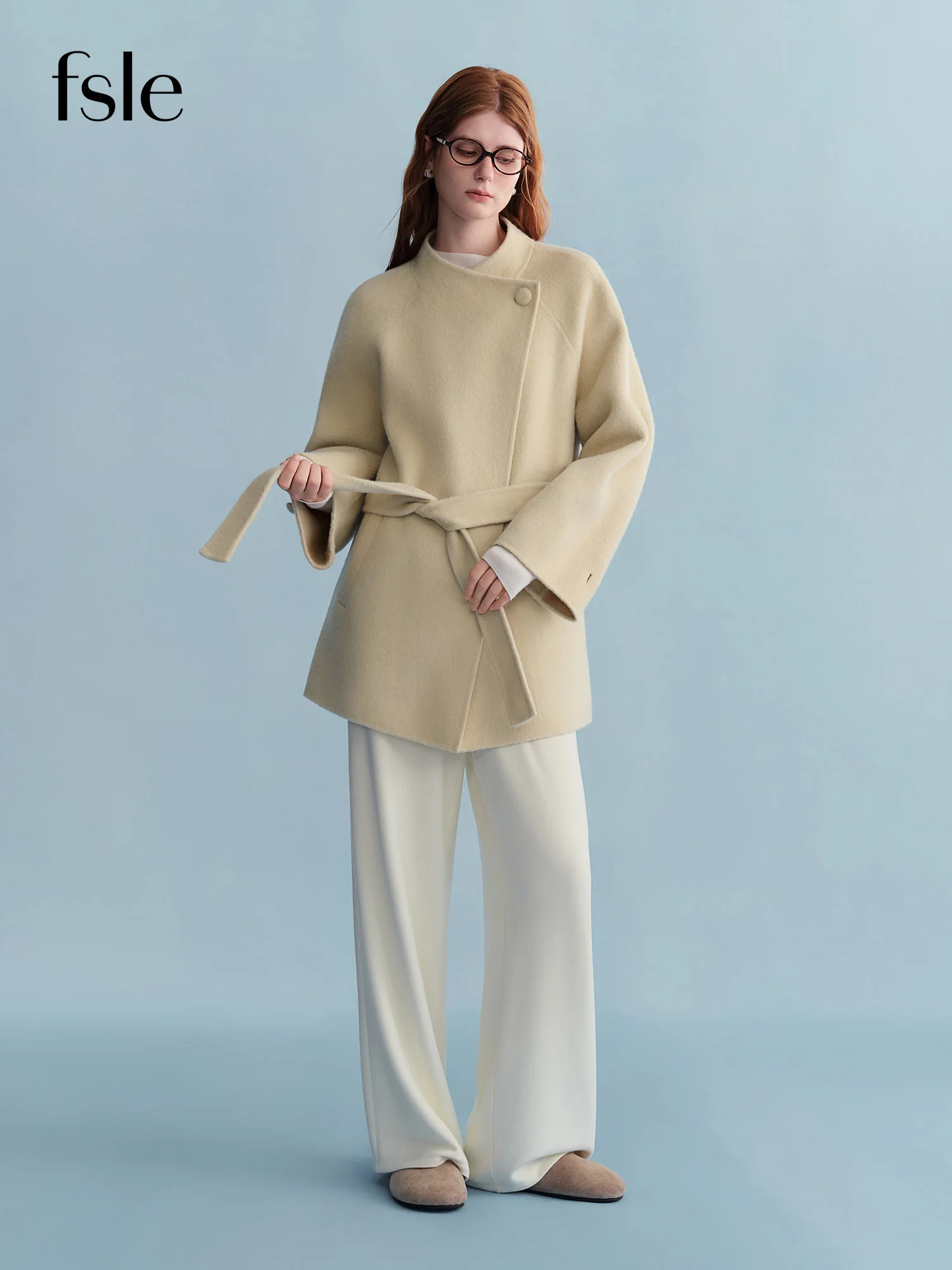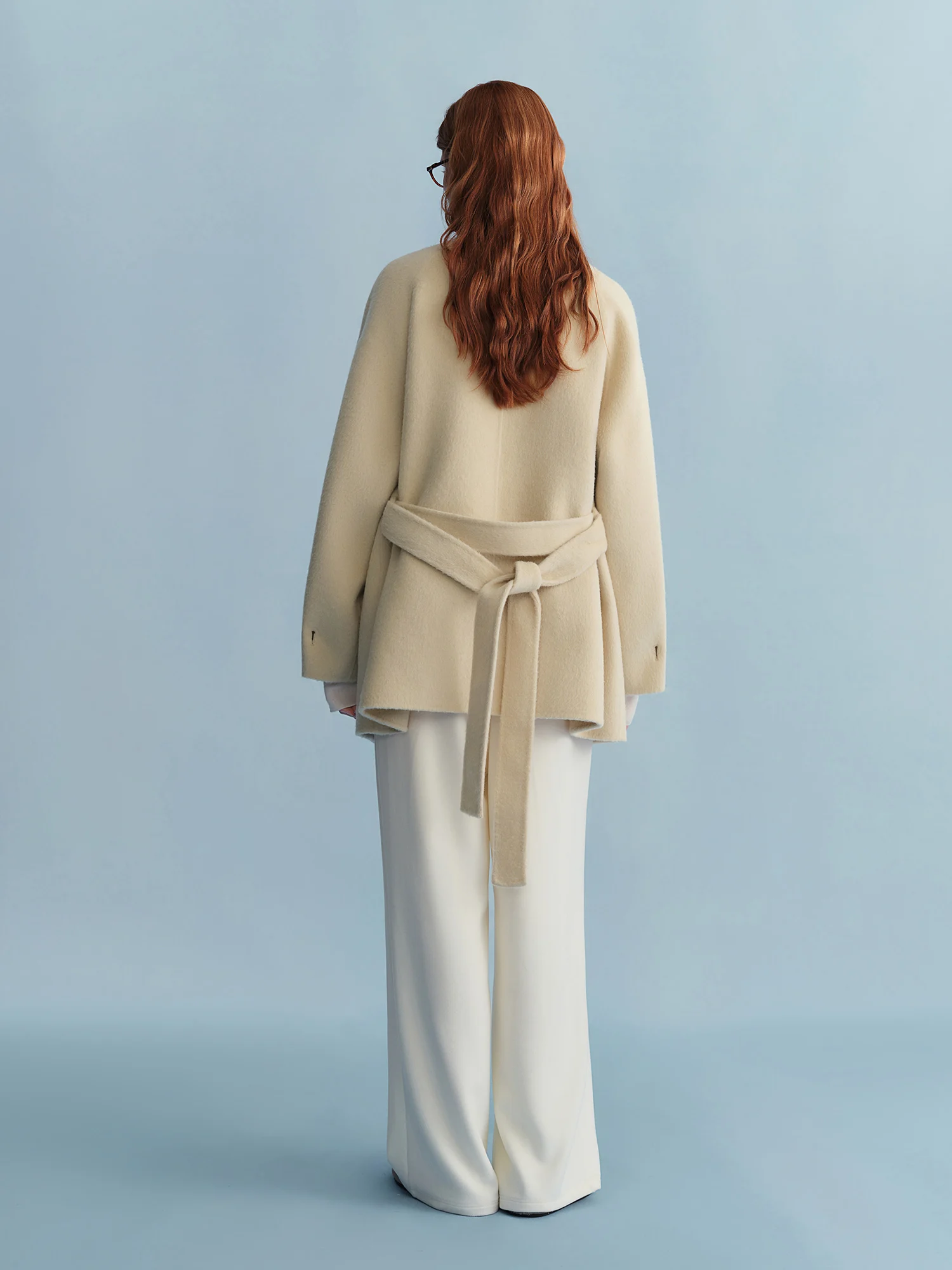 DUSHU Winter 2025 Cappotto corto da donna in misto alpaca – Giacca in tweed misto lana double face con colletto rialzato Eleganza casual