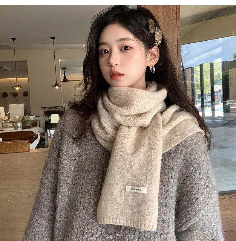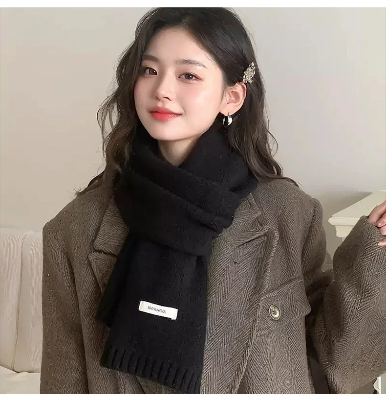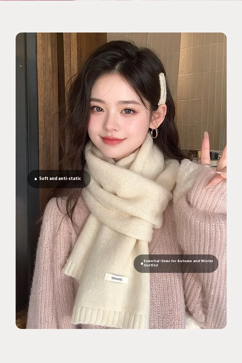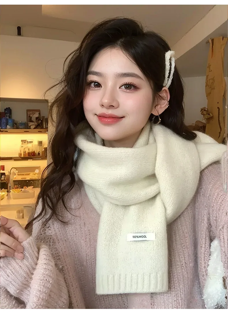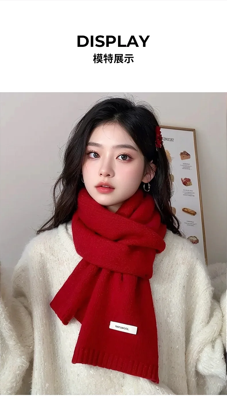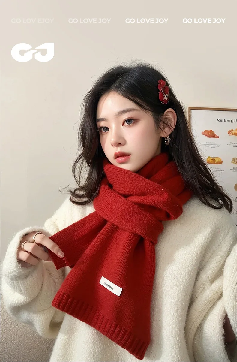 DWJ57 Sciarpa di lana di Capodanno Rosso Autunno Inverno Antivento Atmosfera calda Donna Versatile Scaldacollo lavorato a maglia in tinta unita