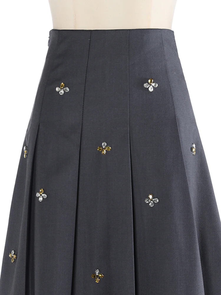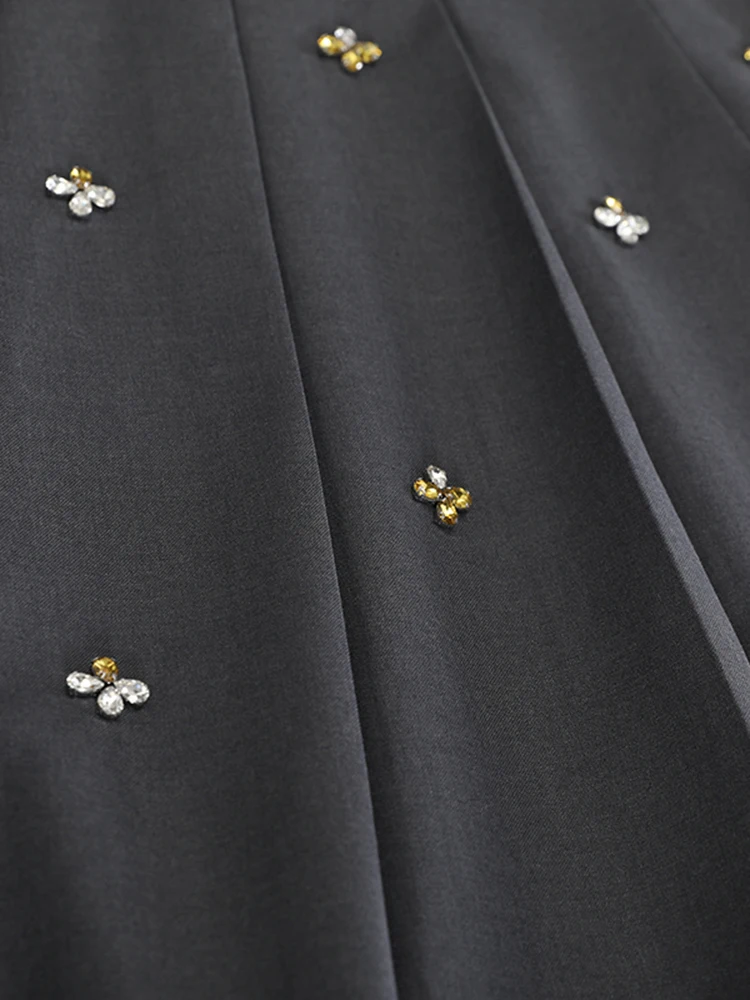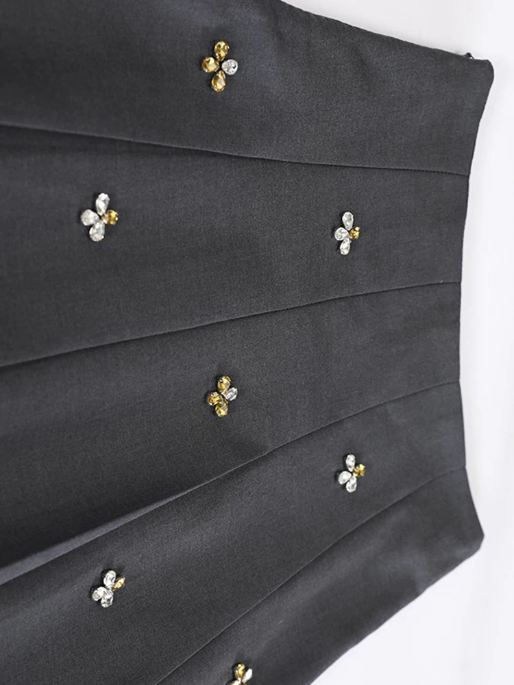 [EAM] Alta Elastico Nero Strass Pieghettato Elegante A-line Gonna a metà corpo Donna Moda Marea Nuova Primavera Autunno 2025 1DH2565 1[EAM] Alta Elastico Nero Strass Pieghettato Elegante A-line Gonna a metà corpo Donna Moda Marea Nuova Primavera Autunno 2025 1DH2565