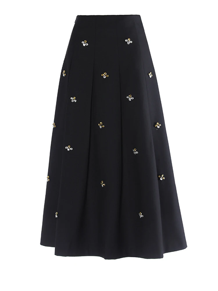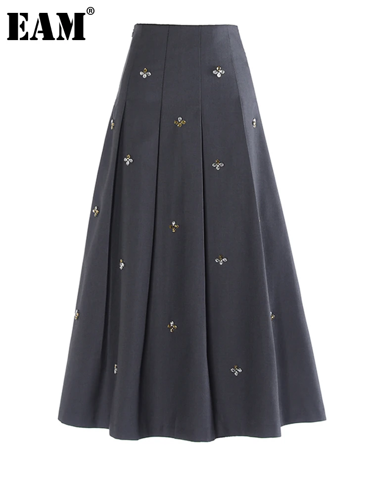 [EAM] Alta Elastico Nero Strass Pieghettato Elegante A-line Gonna a metà corpo Donna Moda Marea Nuova Primavera Autunno 2025 1DH2565 1[EAM] Alta Elastico Nero Strass Pieghettato Elegante A-line Gonna a metà corpo Donna Moda Marea Nuova Primavera Autunno 2025 1DH2565