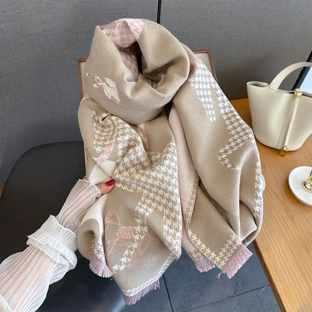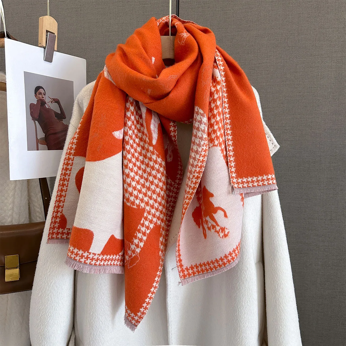 Echarpe New Retro Horse Sciarpa stampata per le donne Design di lusso Capispalla Autunno Inverno 2025 Spessore caldo collo-protezione Scialle avvolgente