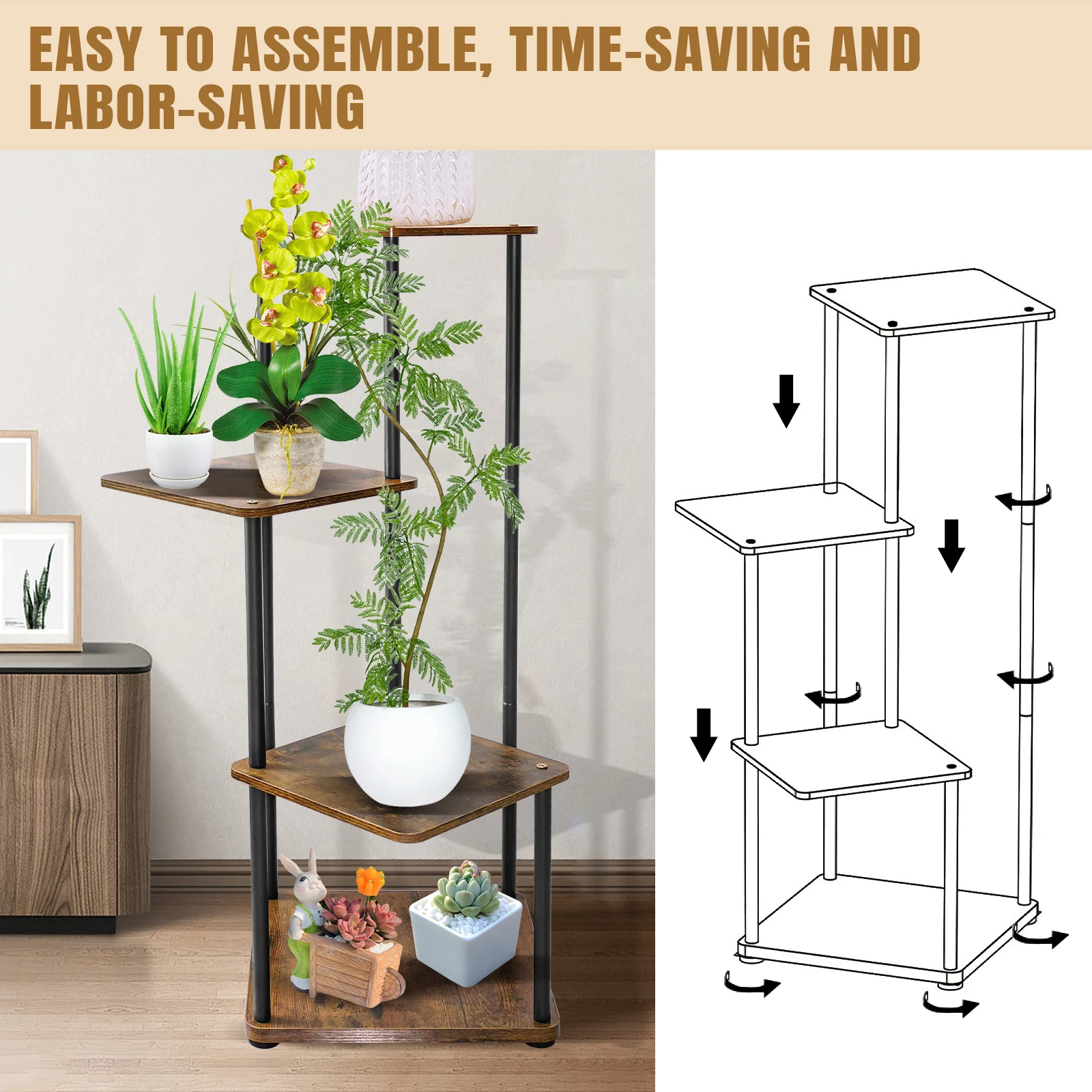 【Assemblaggio senza sforzo】Dai addio al assemblare problemi con il nostro scaffale per piante facile da montare con un design a tubi preinstallato.La configurazione rapida e facile significa che puoi godersi i vantaggi del nostro supporto per piante premium immediato.