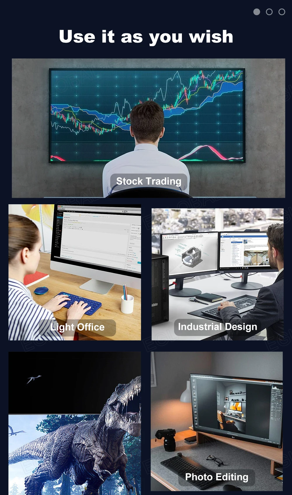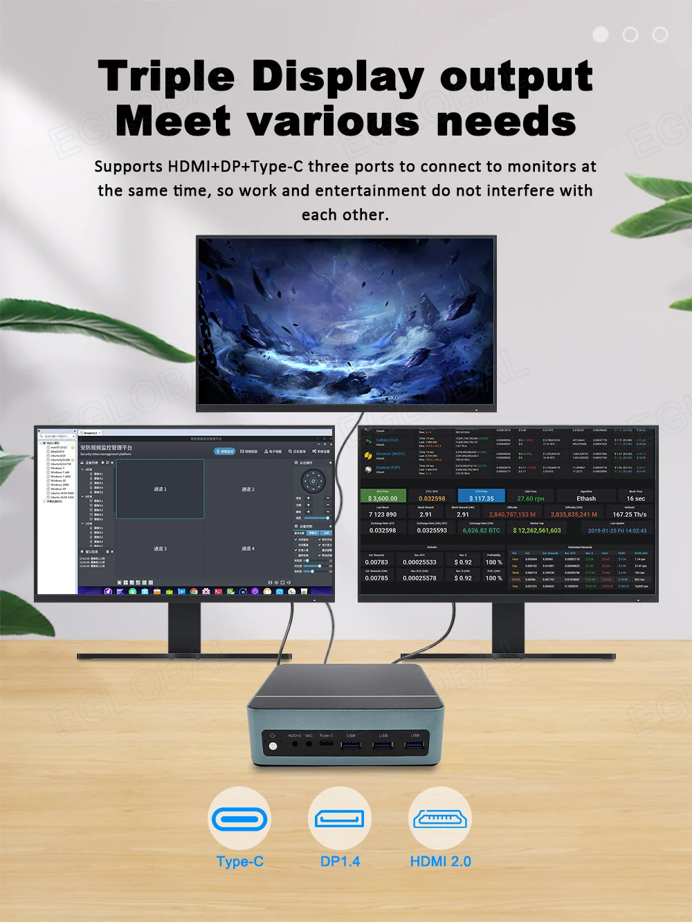 – Supporta tre Display: HDMI2.0 + DP 1.4 + USB Type-C.