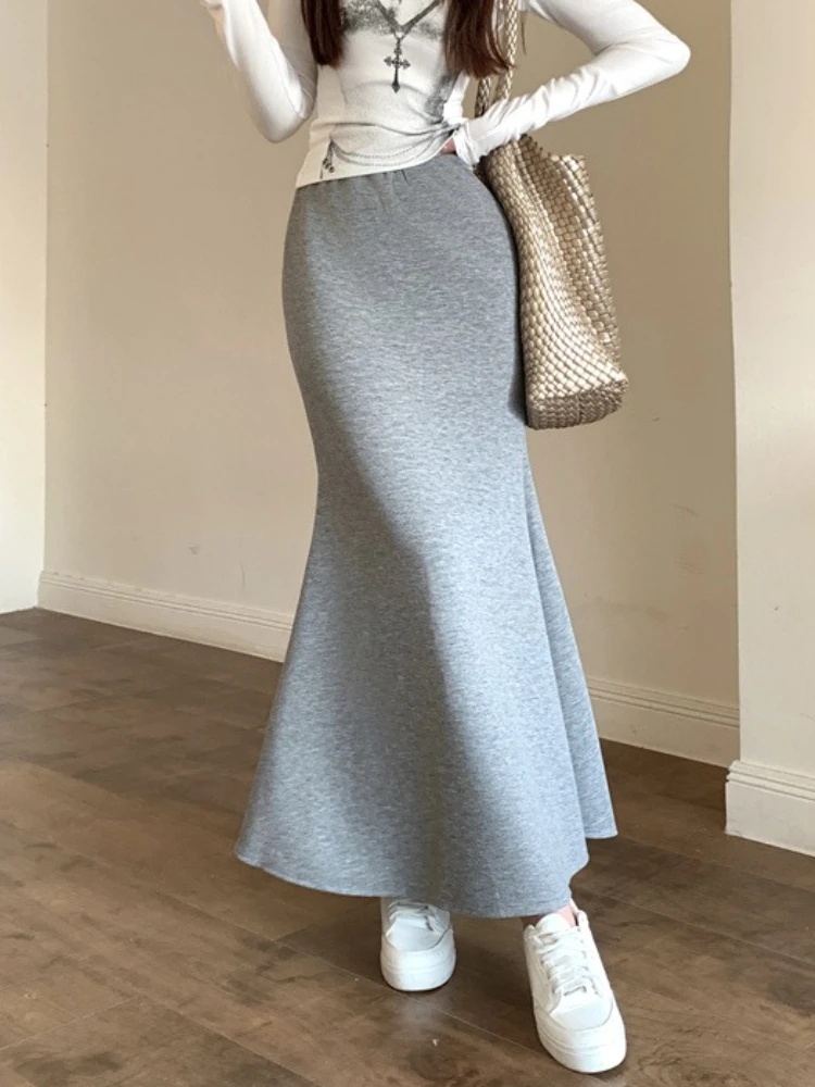 Elastico a vita alta semplice primavera autunno 2025 gonna a coda di pesce gonna lunga sottile casual gonne all'anca con pacchetto temperamento vintage solido 1Elastico a vita alta semplice primavera autunno 2025 gonna a coda di pesce gonna lunga sottile casual gonne all’anca con pacchetto temperamento vintage solido