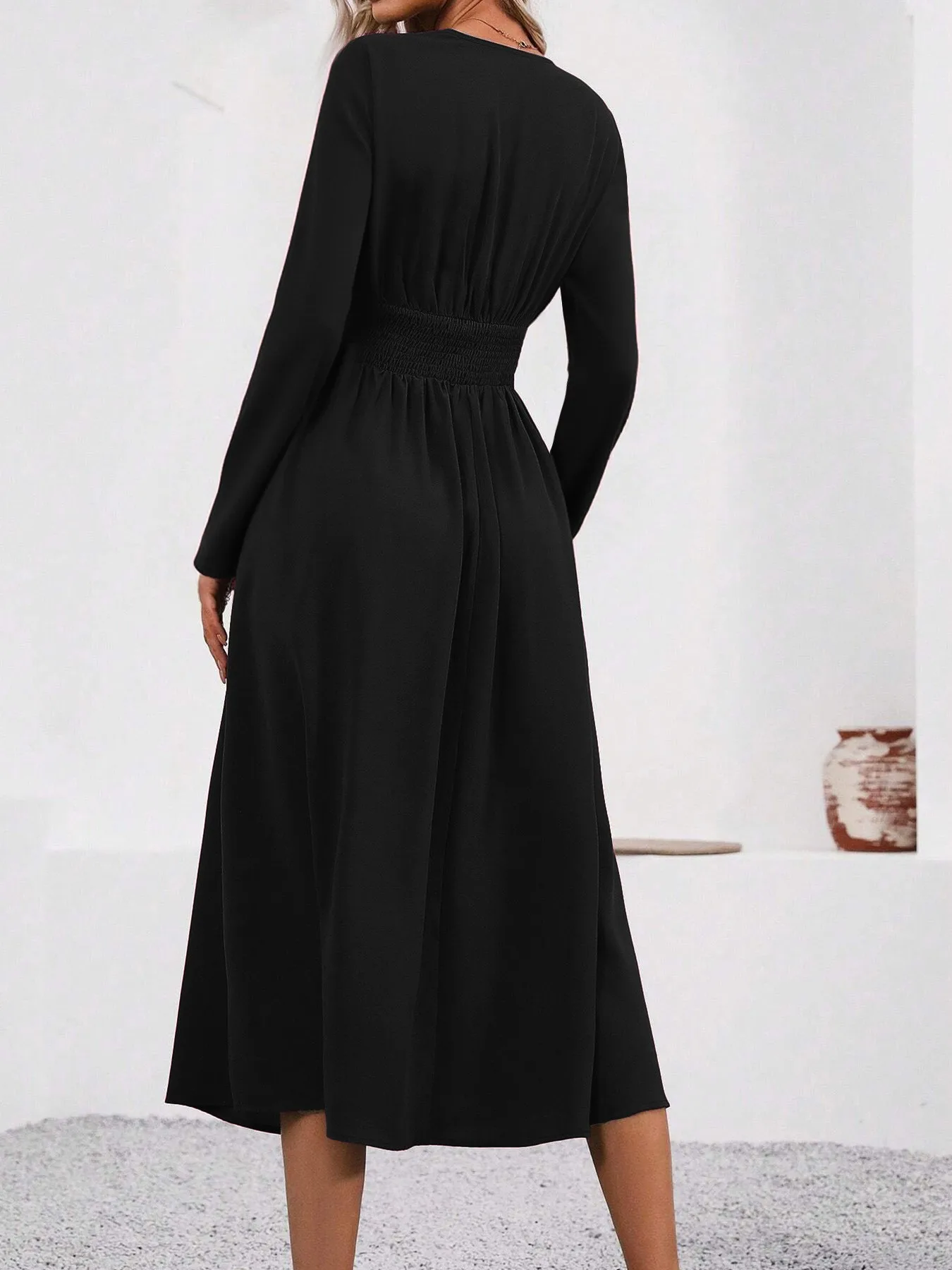 Abito sexy da donna nuovo da discoteca con scollo a V abito regalo tinta unita abito lungo con spacco grande autunno/inverno manica lunga