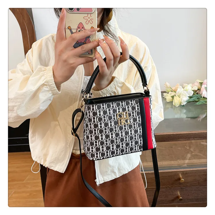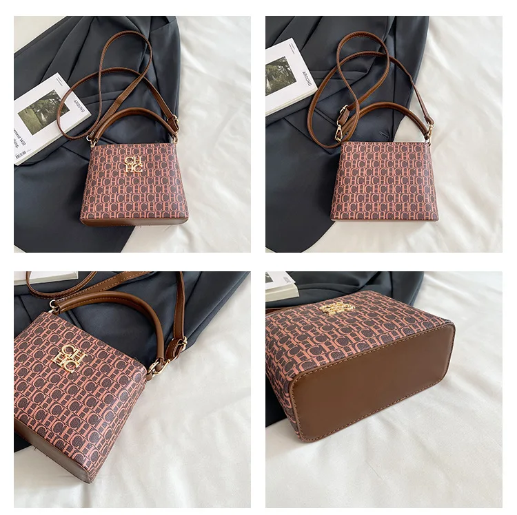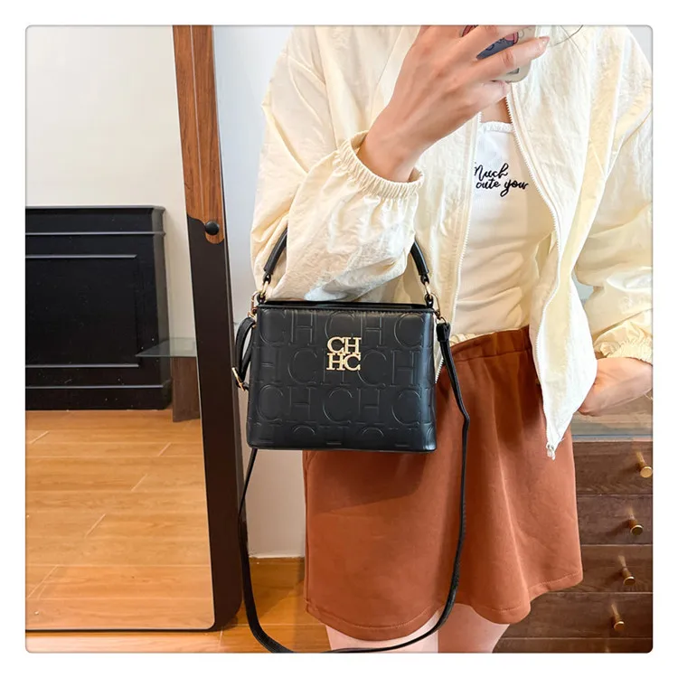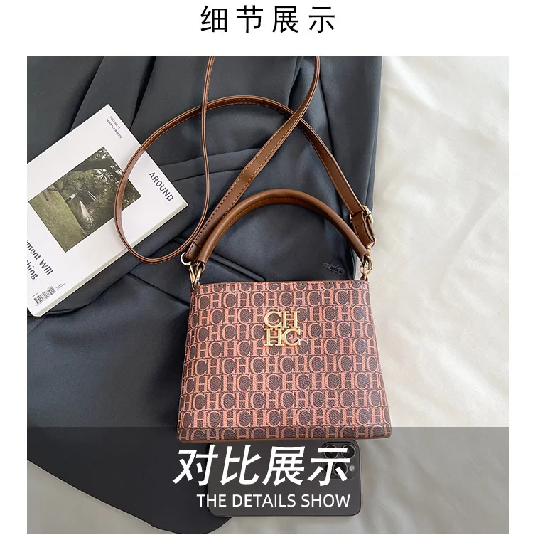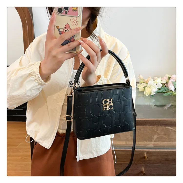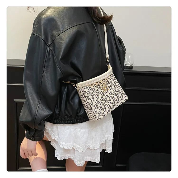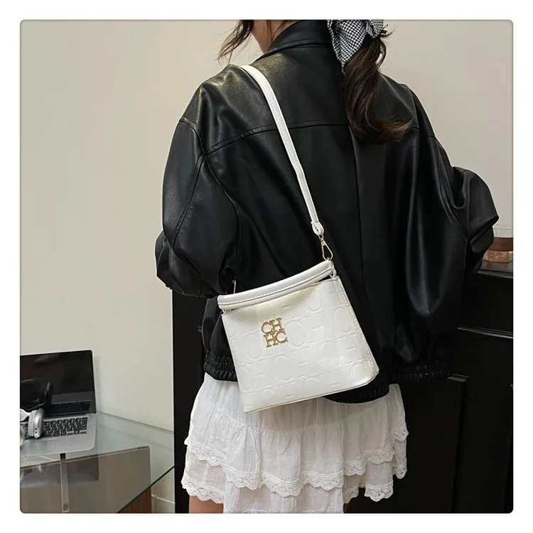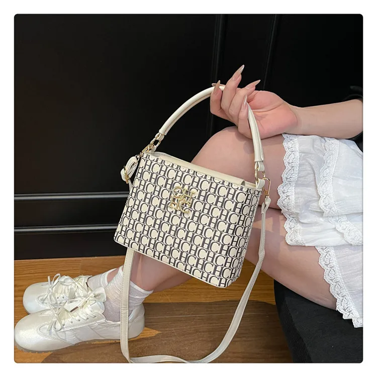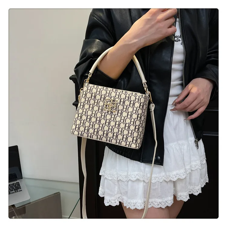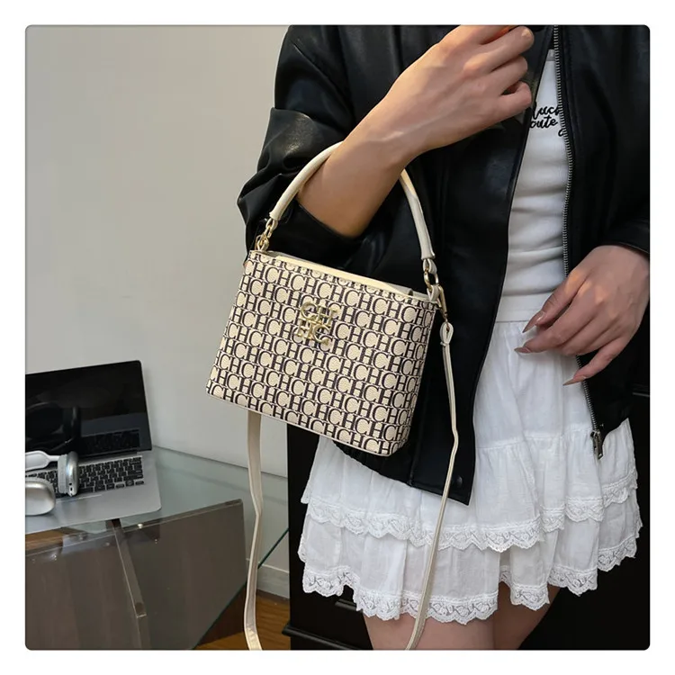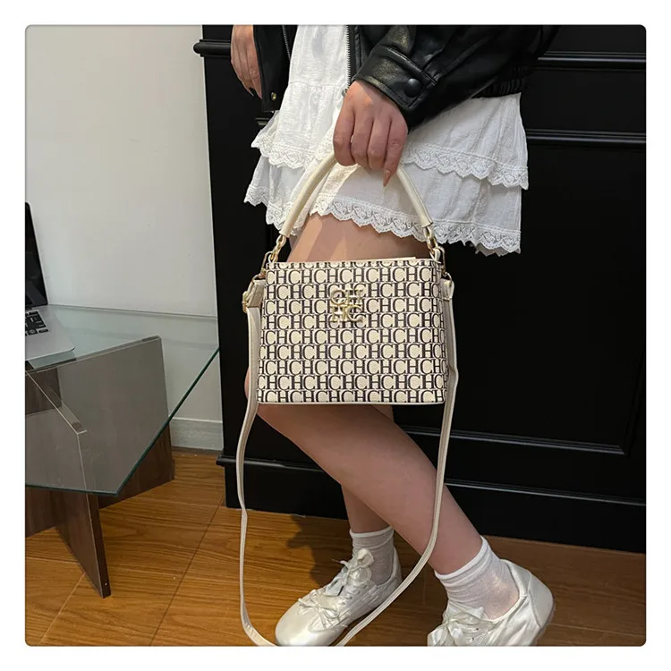 Elegante borsa a secchiello 2025 – Borsa a tracolla/a tracolla, grande capacità con tasca interna, borsa dal design con lettere alla moda