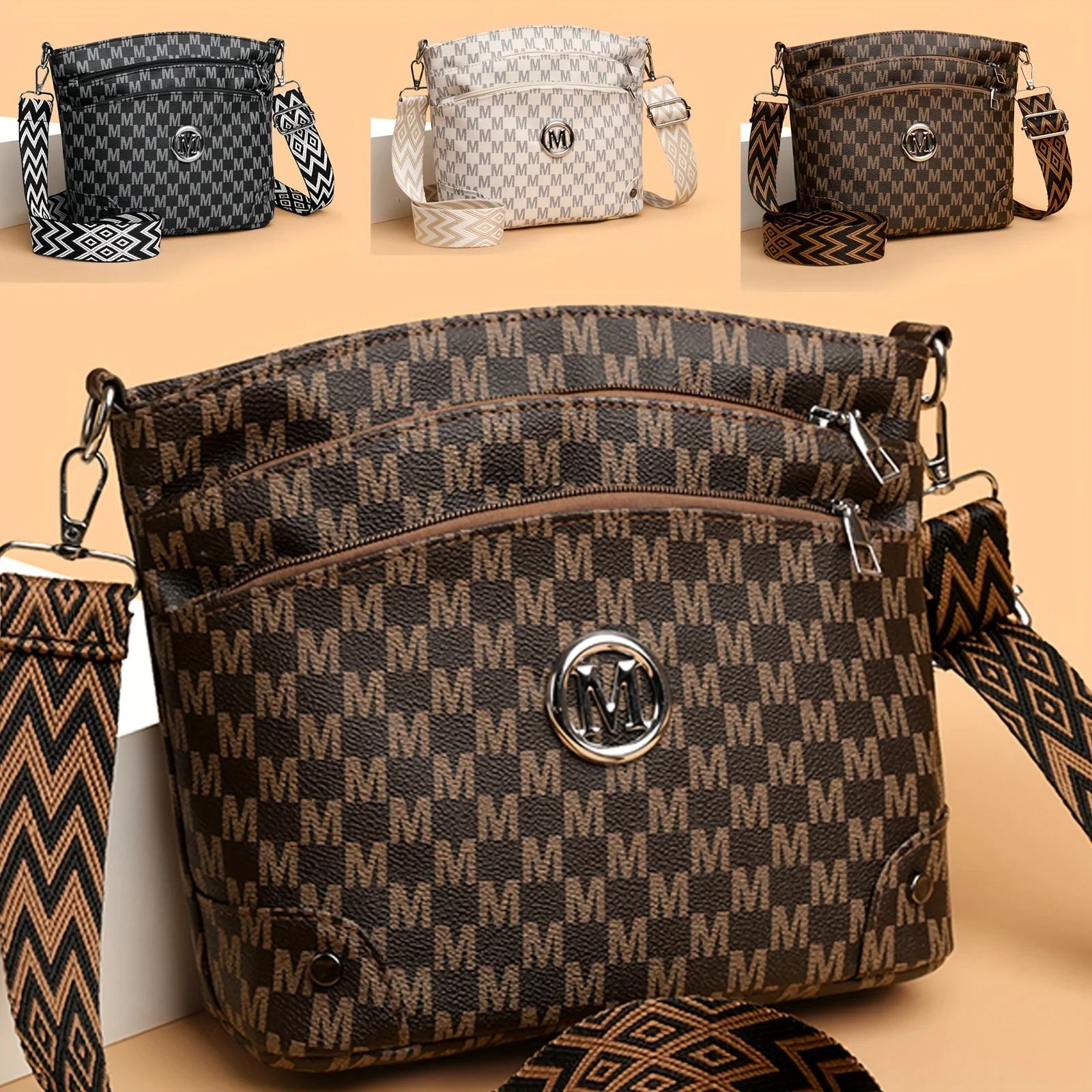 Elegante borsa a tracolla da donna con stemma “M”, multitasche, tracolla regolabile, borsa a tracolla da donna, perfetta come regalo