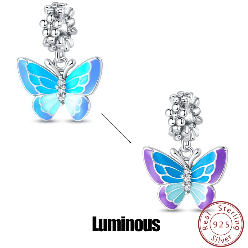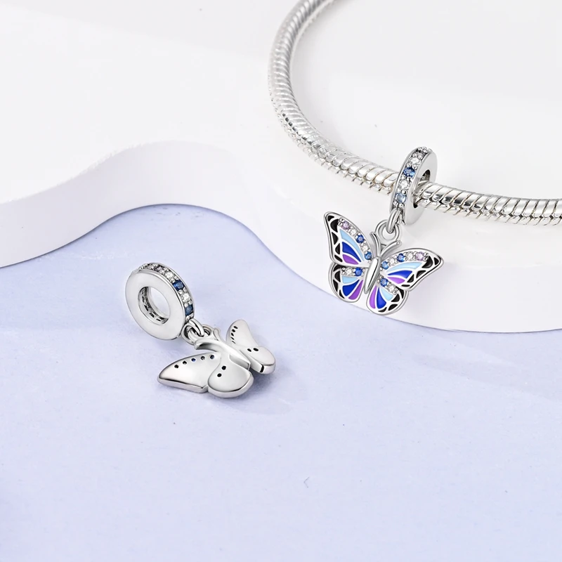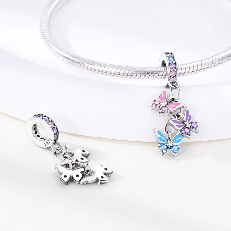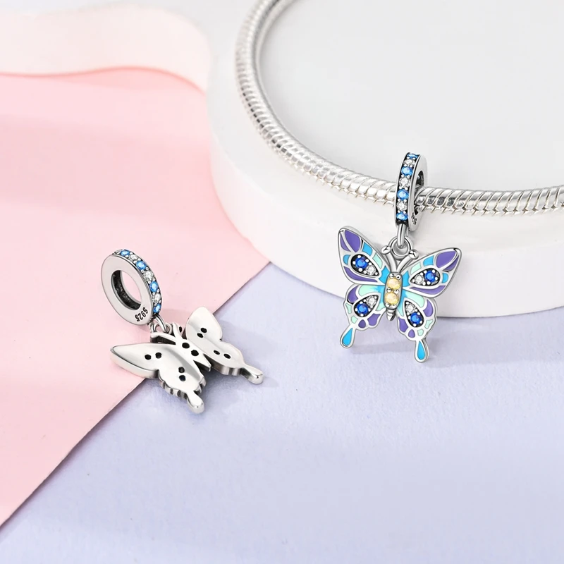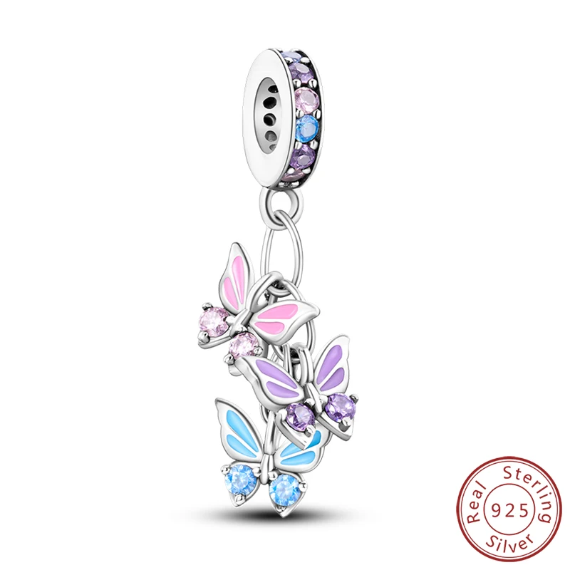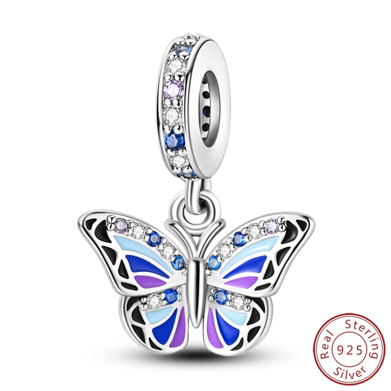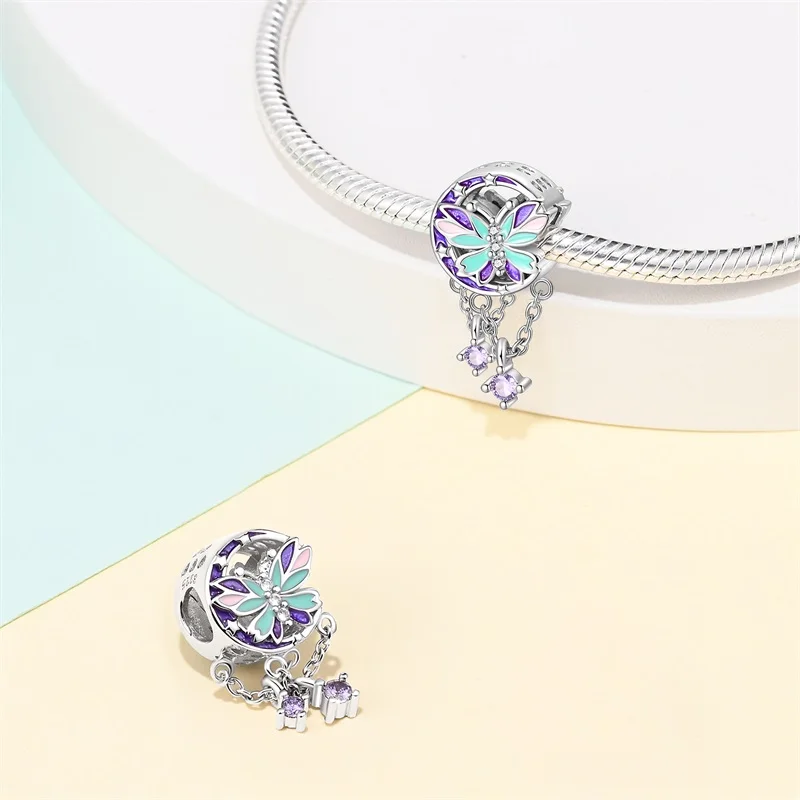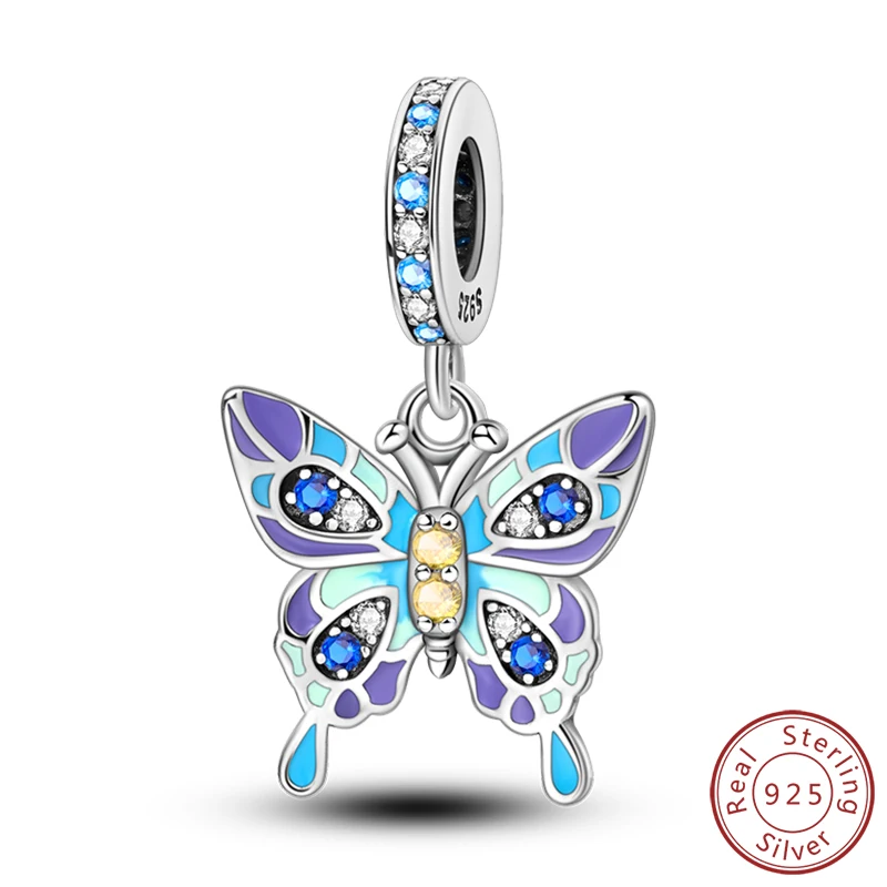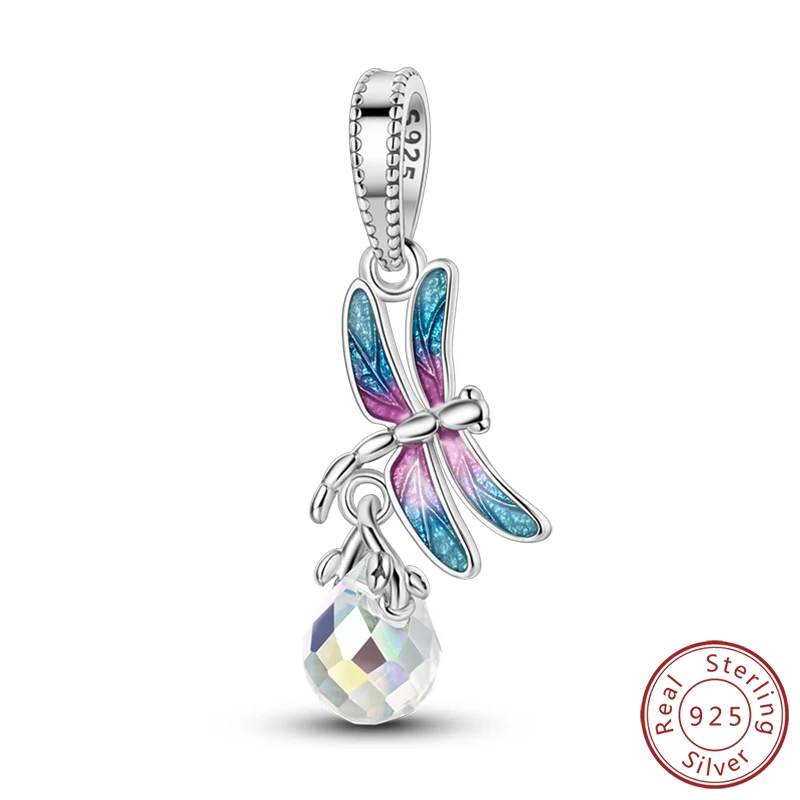 Elegante ciondolo in argento S925 con farfalla e libellula, ciondoli multicolori, perline, 3 mm, fai da te, creazione di gioielli pregiati, accessori, regali