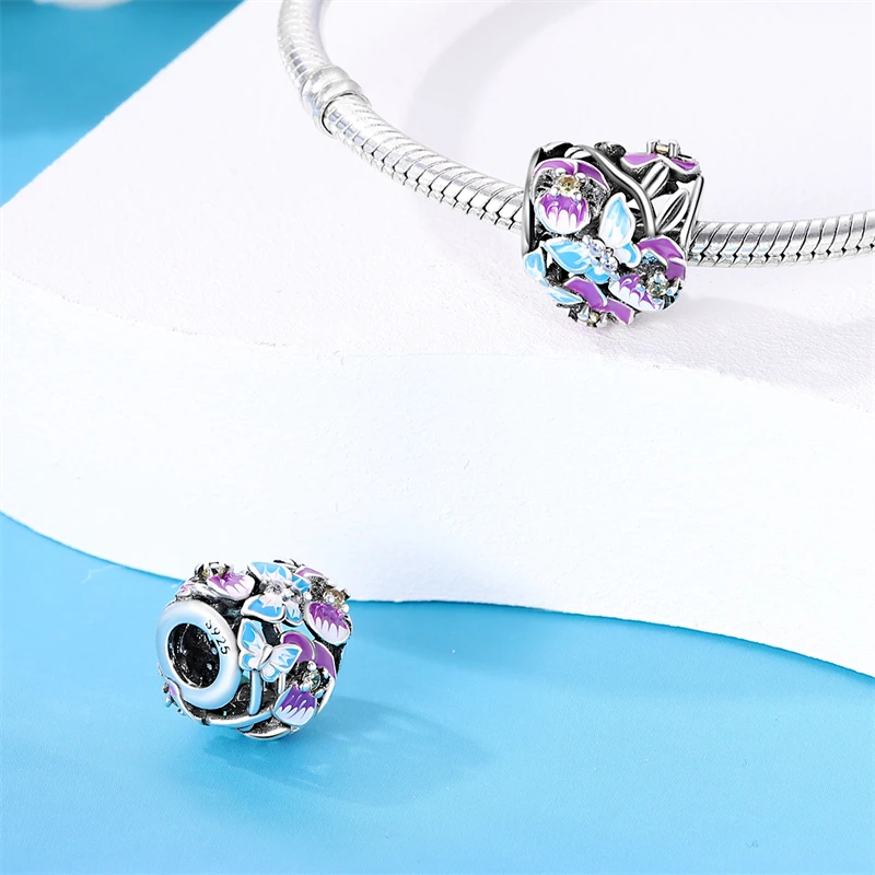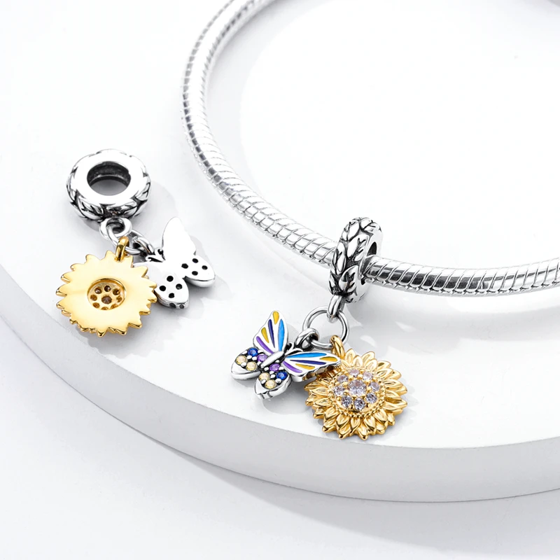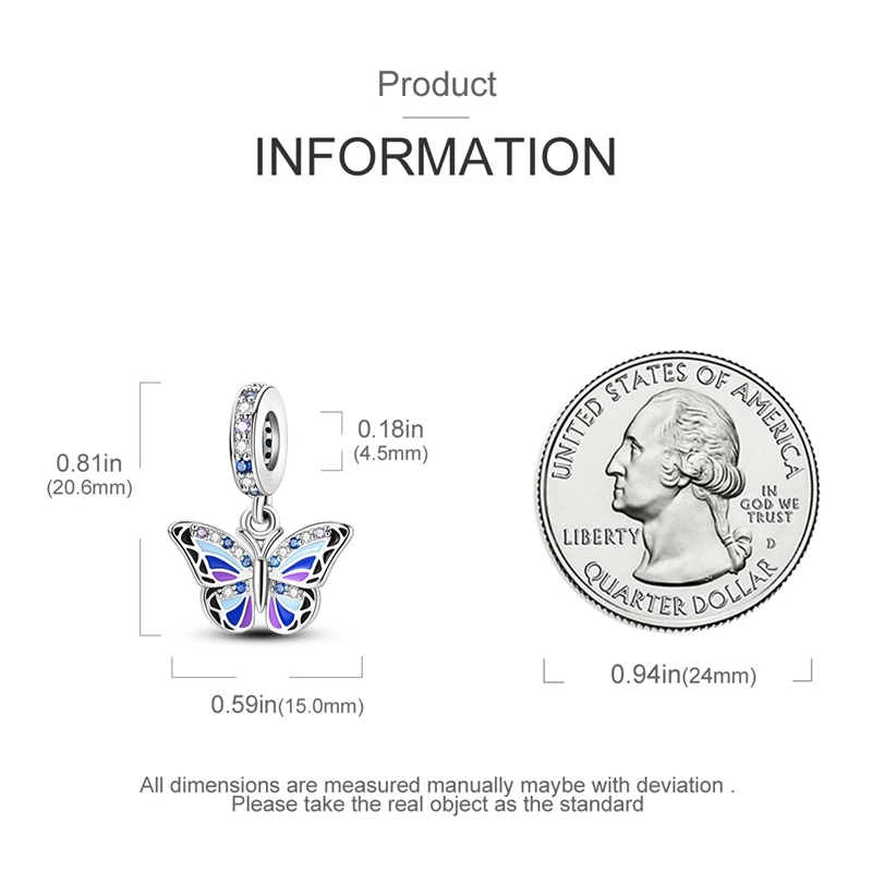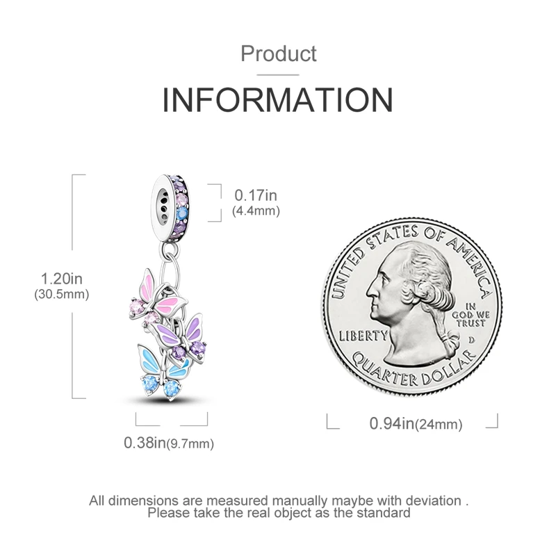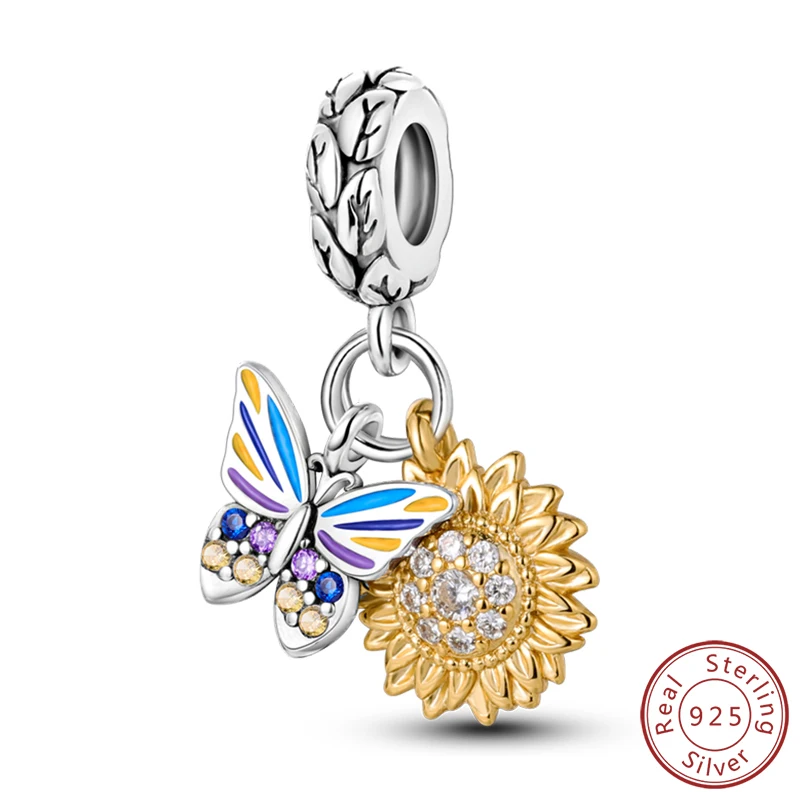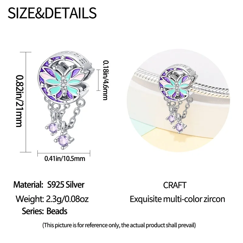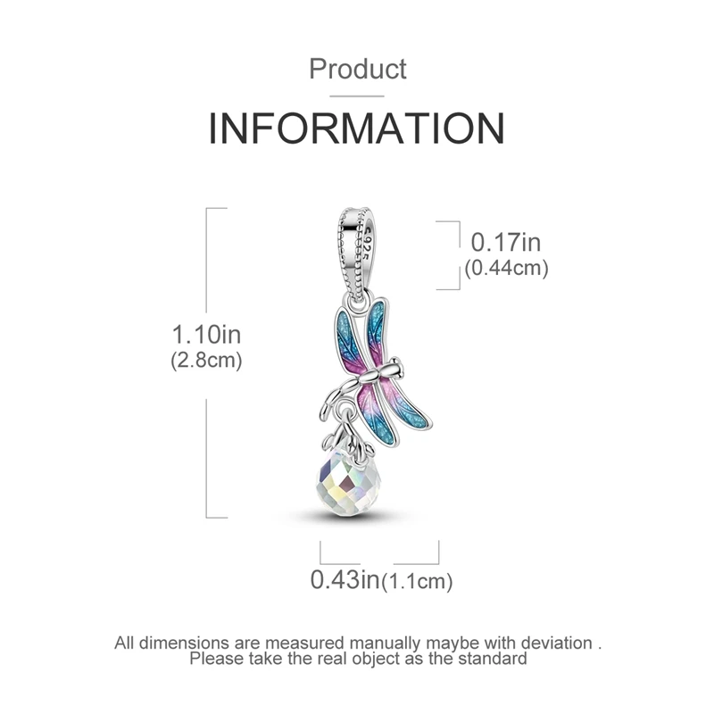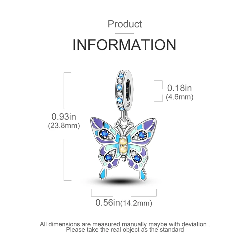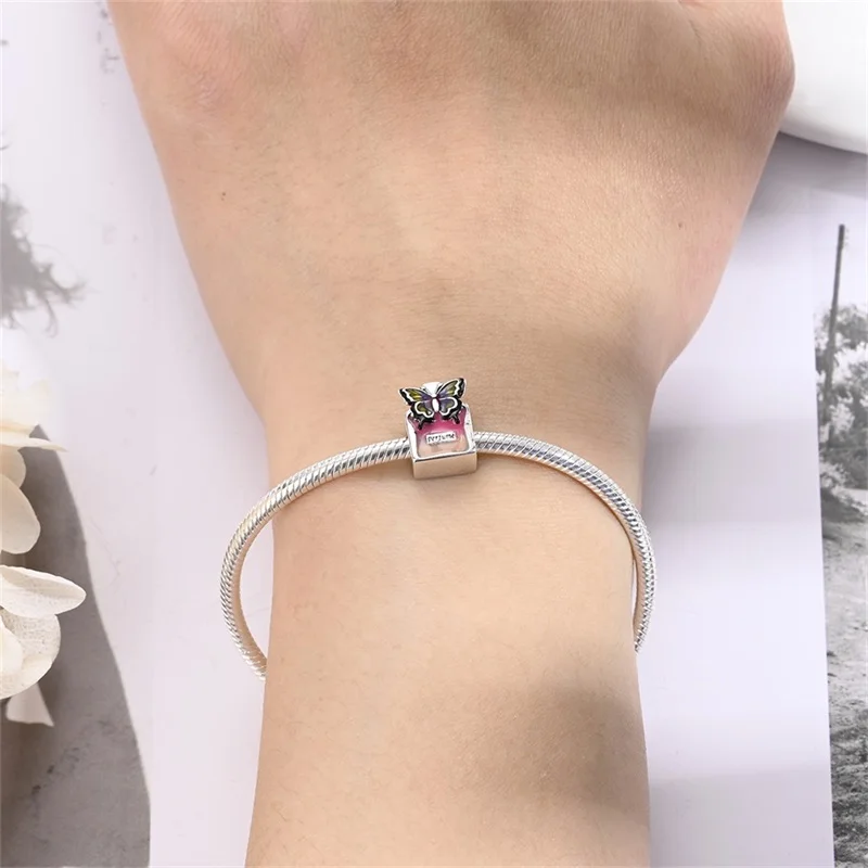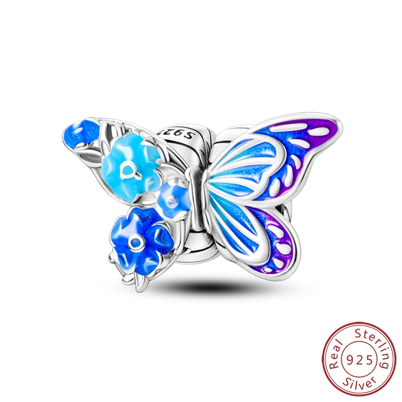 Elegante ciondolo in argento S925 con farfalla e libellula, ciondoli multicolori, perline, 3 mm, fai da te, creazione di gioielli pregiati, accessori, regali