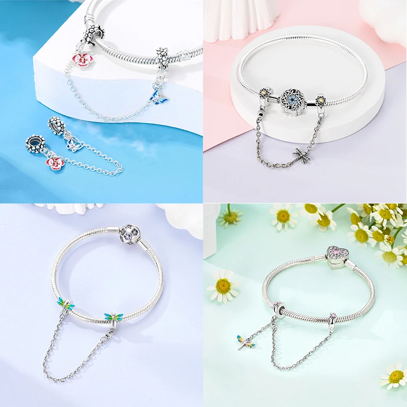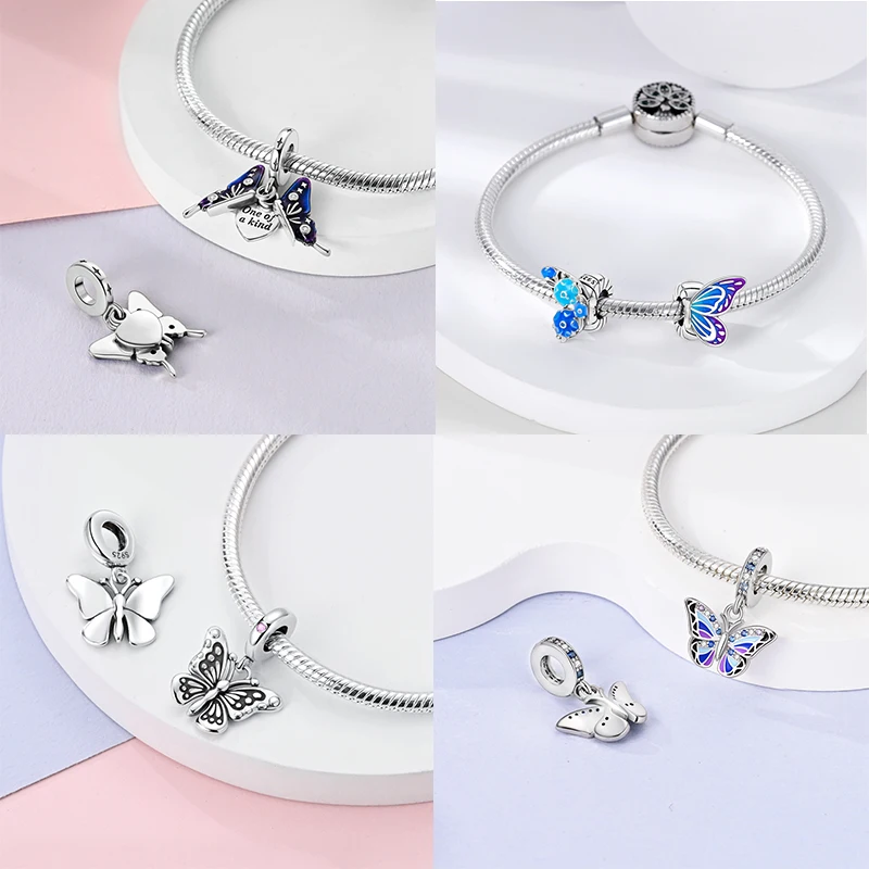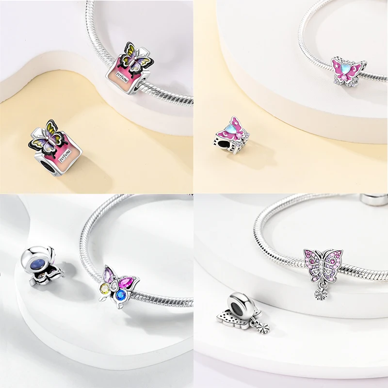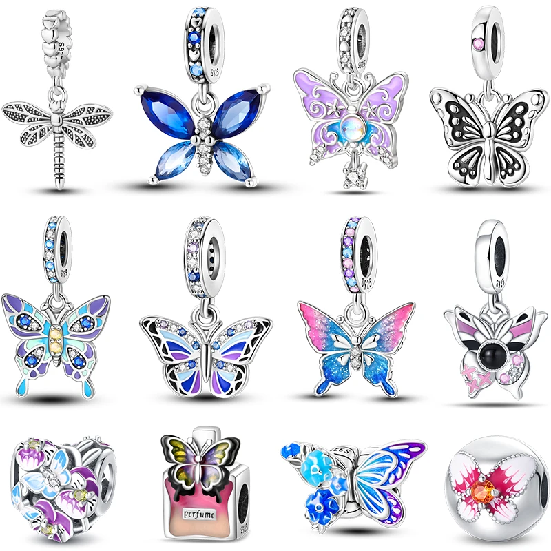 Elegante ciondolo in argento S925 con farfalla e libellula, ciondoli multicolori, perline, 3 mm, fai da te, creazione di gioielli pregiati, accessori, regali
