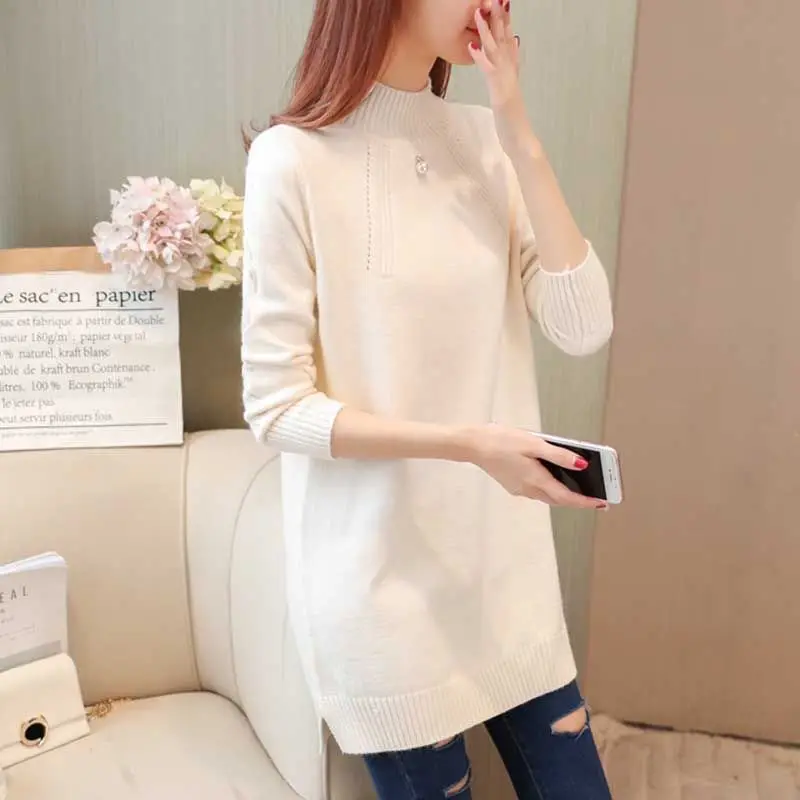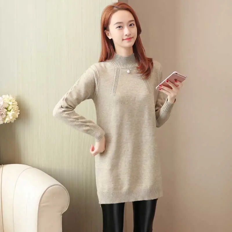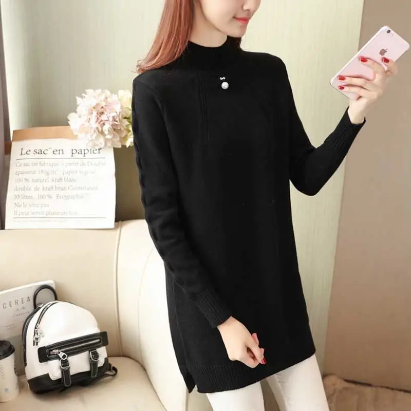 Elegante colletto alla coreana tinta unita pieghe perline maglioni abbigliamento donna 2023 autunno inverno pullover Casual larghi top coreani