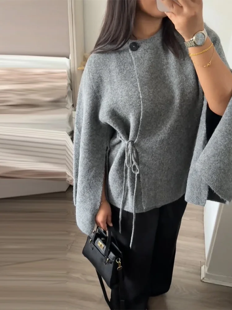 Elegante giacca a mantella lavorata a maglia di lana per donna manica lunga allentata casual scialle scialle cappotto 2025 nuova signora autunno inverno capispalla solido
