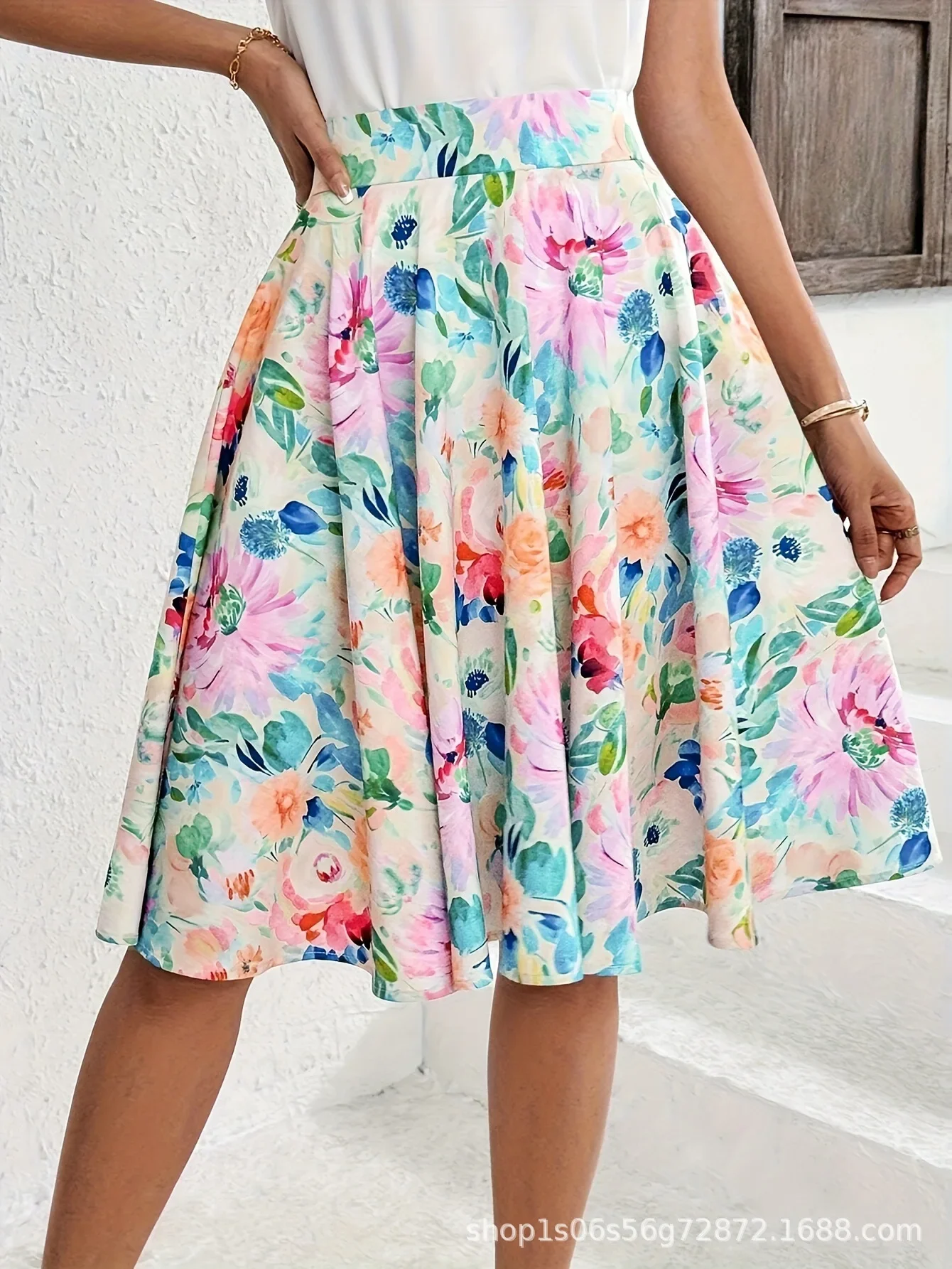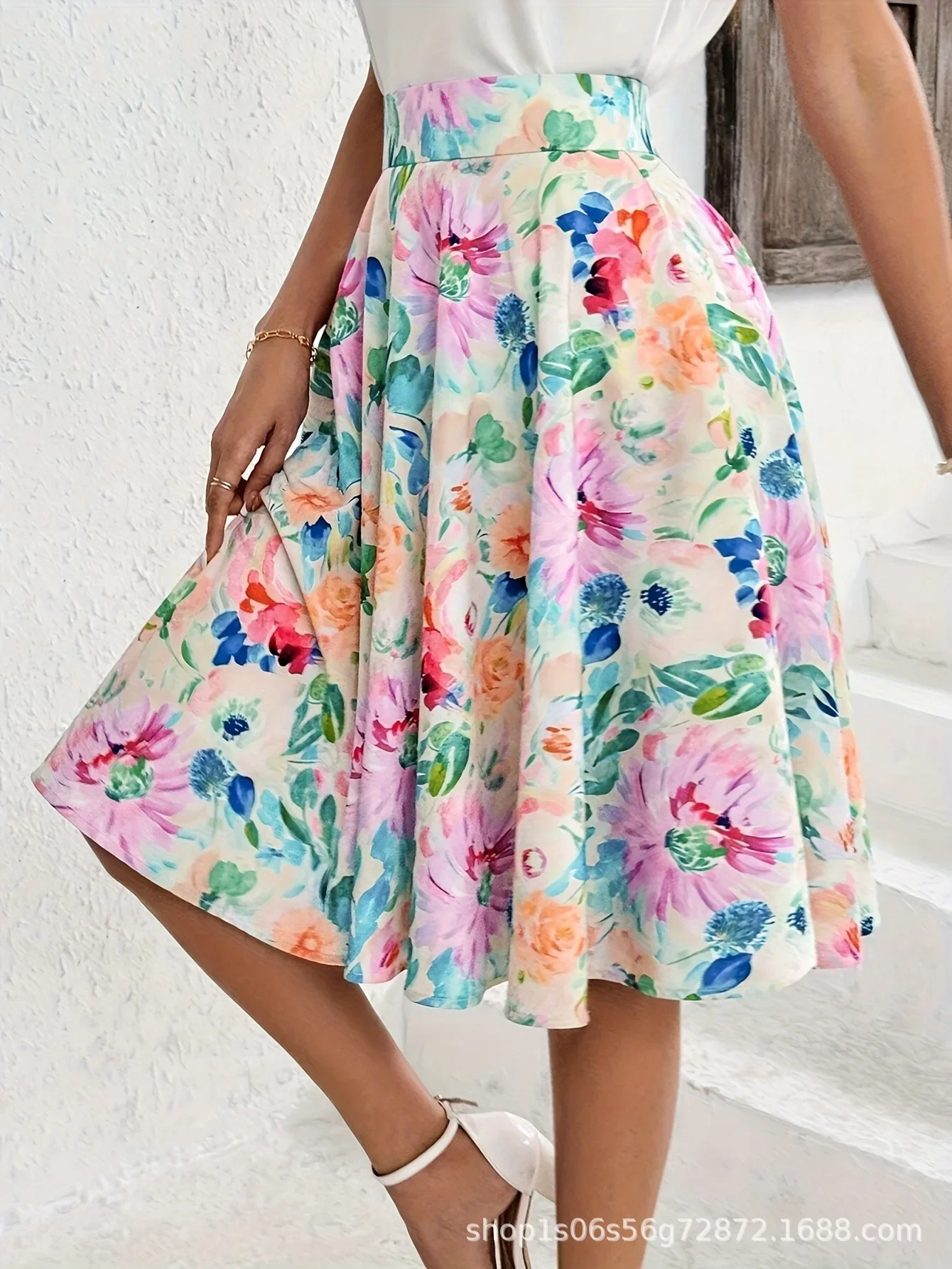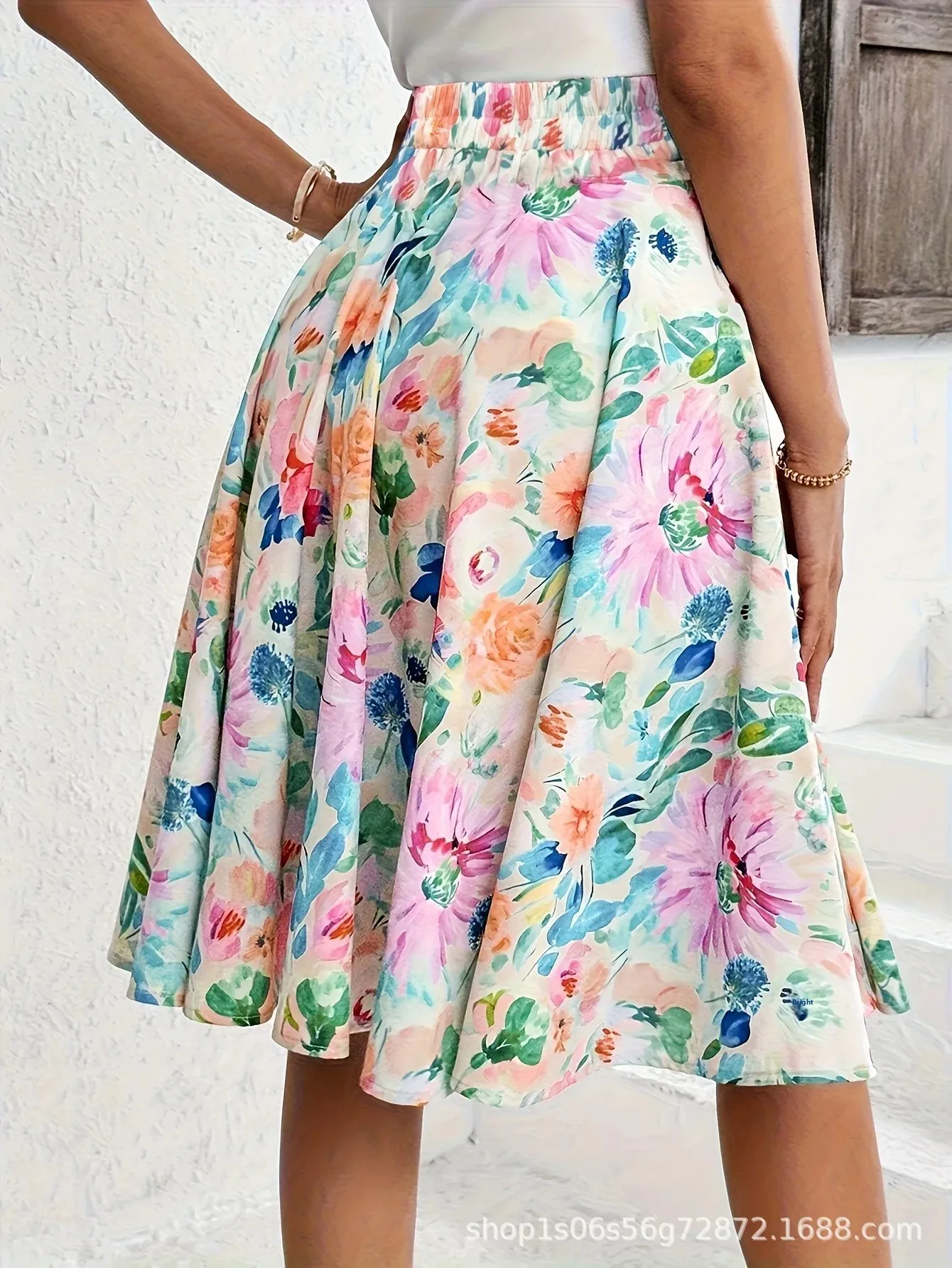 • Elegante stampa floreale:La gonna presenta un’elegante stampa floreale, che aggiunge un tocco di raffinatezza e femminilità al tuo guardaroba estivo.