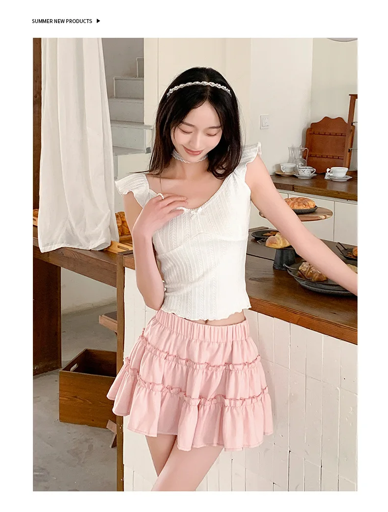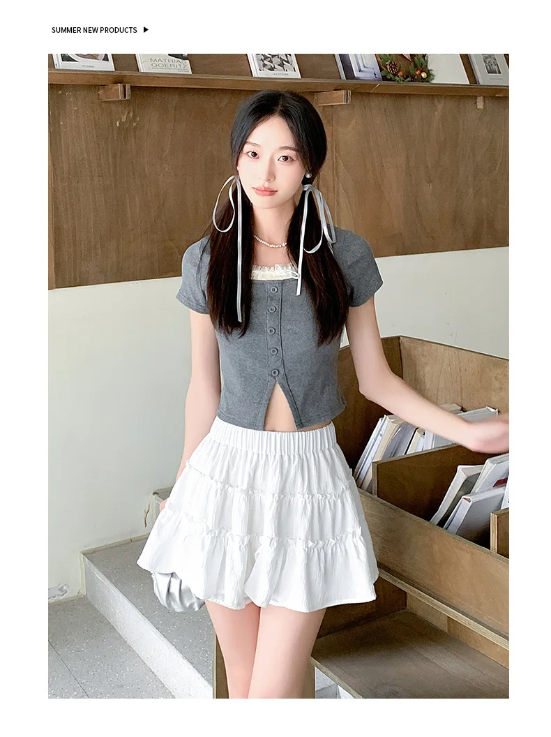 Caratterizzata da un delicato design con volant ispirato al balletto, questa gonna aggiunge un tocco aggraziato al tuo guardaroba estivo.