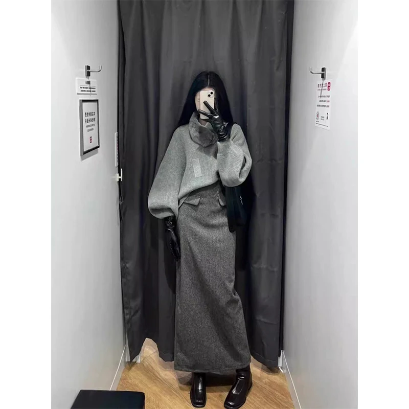 Elegante gonna longuette di lana Donna Vintage Sexy Split Hip Wrap Gonne Inverno Donna Coreana Design a vita alta con spacco A Line Faldas Nuovo