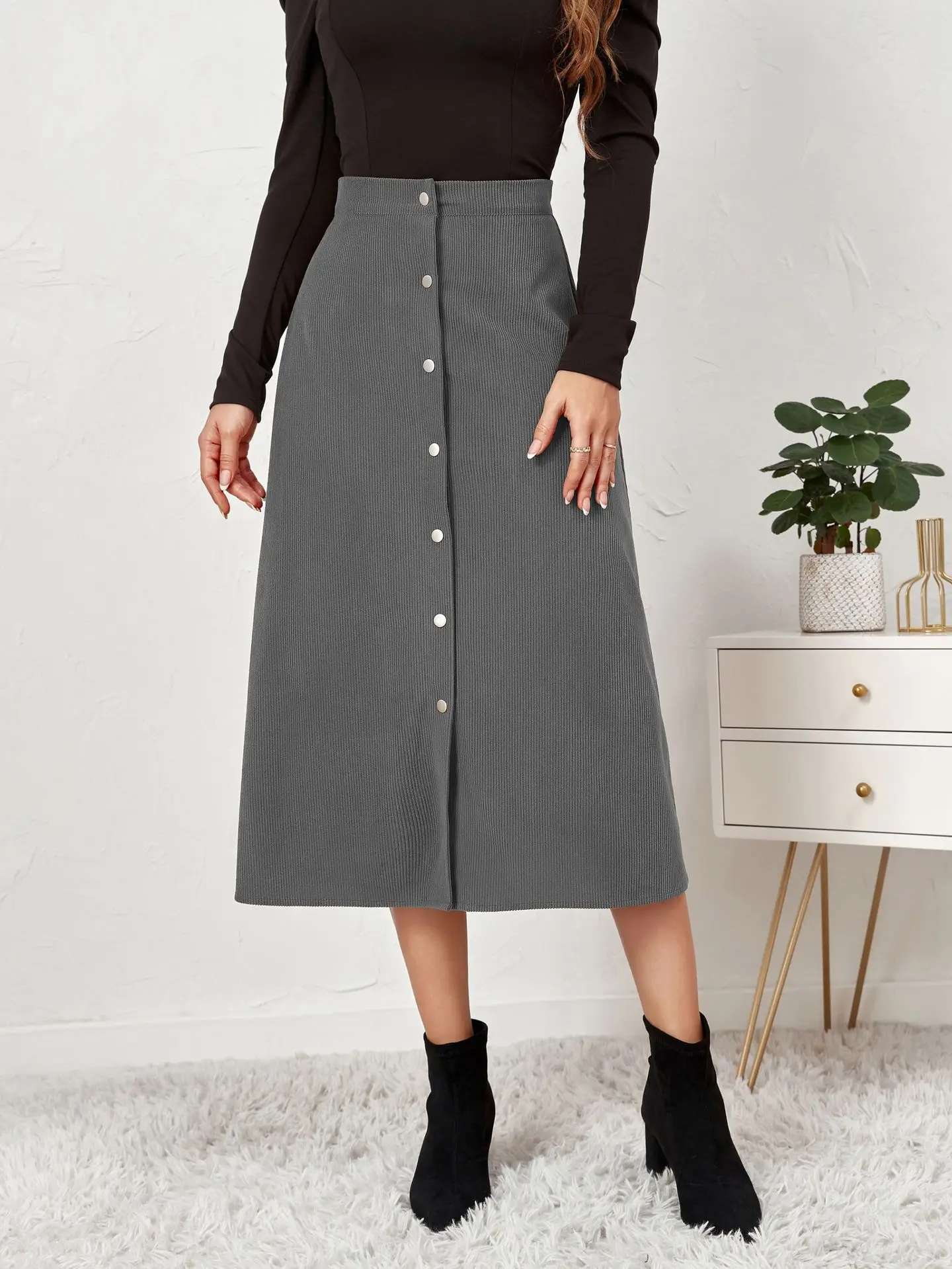 Elegante gonna lunga in velluto a coste Moda donna Abiti autunnali e invernali Faldas Gonne maxi a vita alta vintage Casual Streetwear