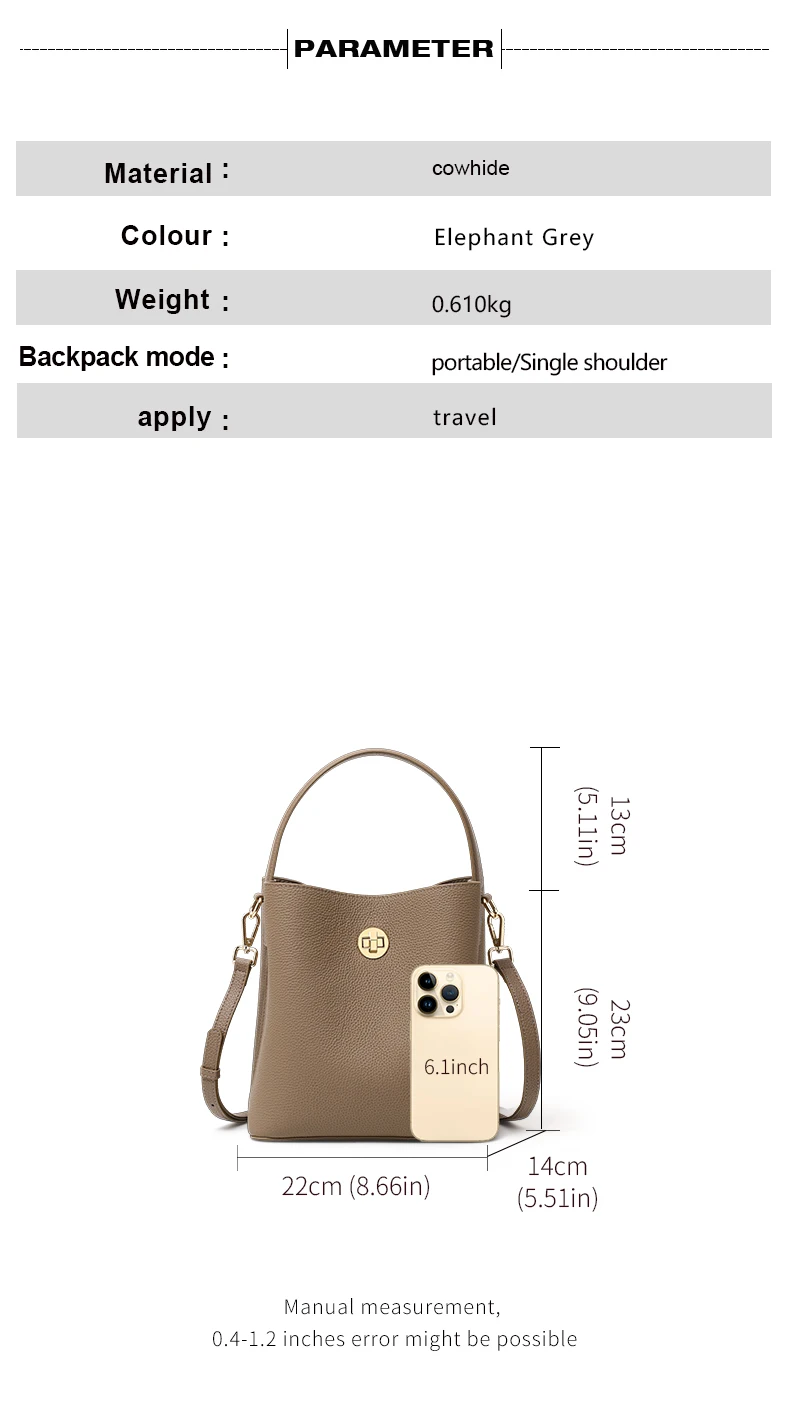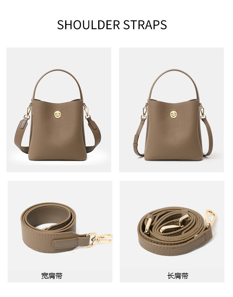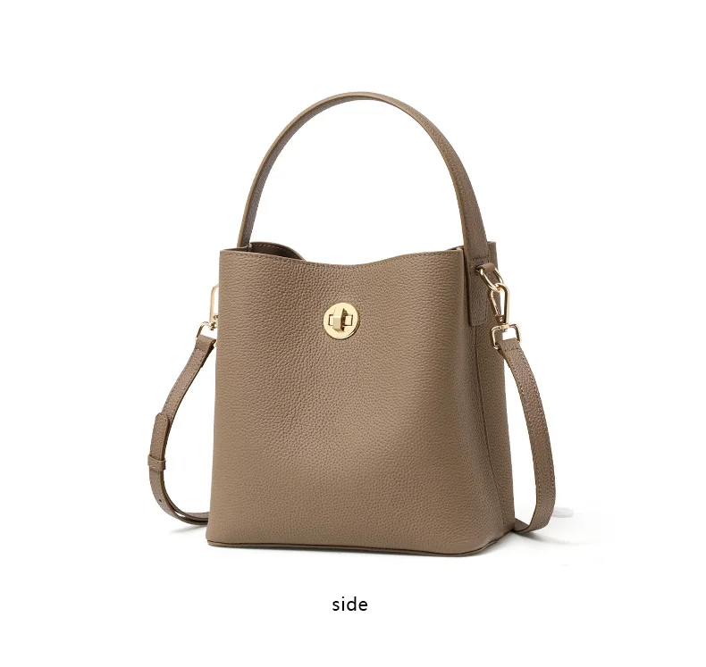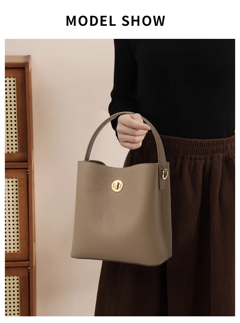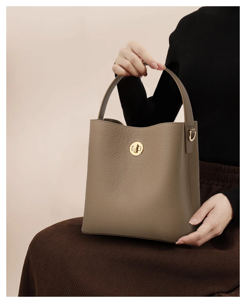 Elegante secchiello per l’acqua retrò portato a mano con strato superiore in pelle bovina, tracolla multistrato con chiusura a tracolla, borsa a tracolla singola