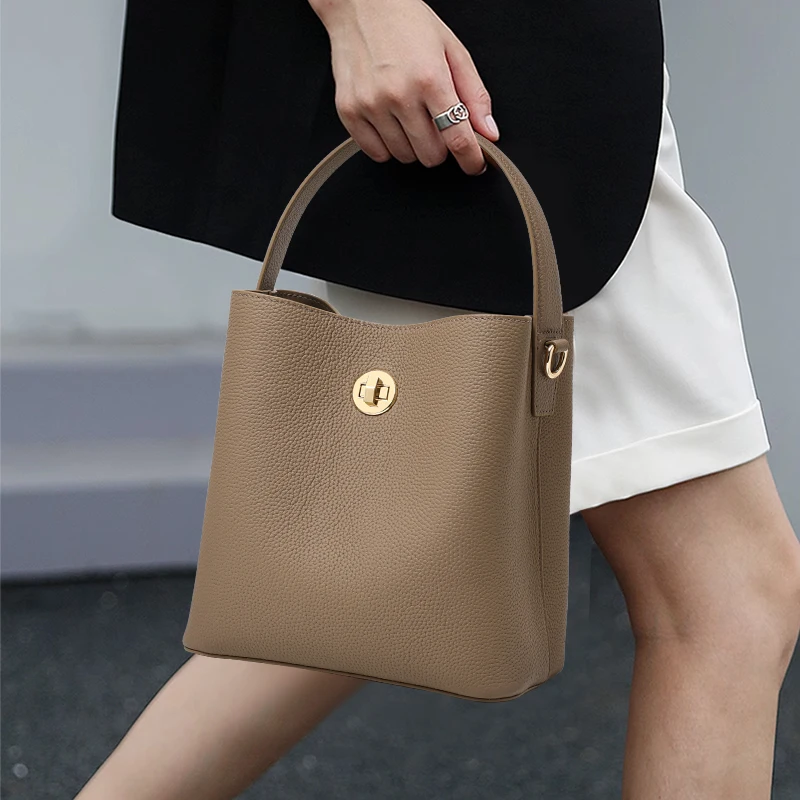 Elegante secchiello per l’acqua retrò portato a mano con strato superiore in pelle bovina, tracolla multistrato con chiusura a tracolla, borsa a tracolla singola