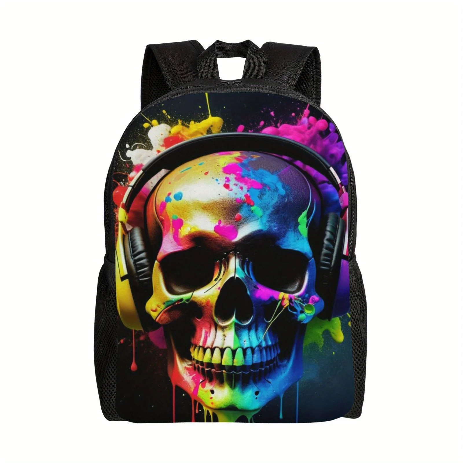 Elegante zaino a tema teschio: spaziosa scomparto per laptop da 17″, leggero e resistente per la scuola, i viaggi di lavoro