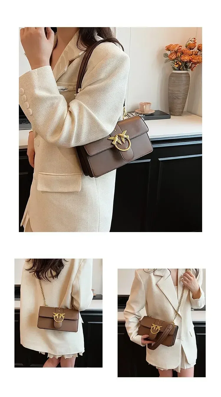 Eleganti borse sotto le ascelle di nicchia casual dal design doppio rondine – Forma quadrata compatta, tracolla – con catena di alta qualità