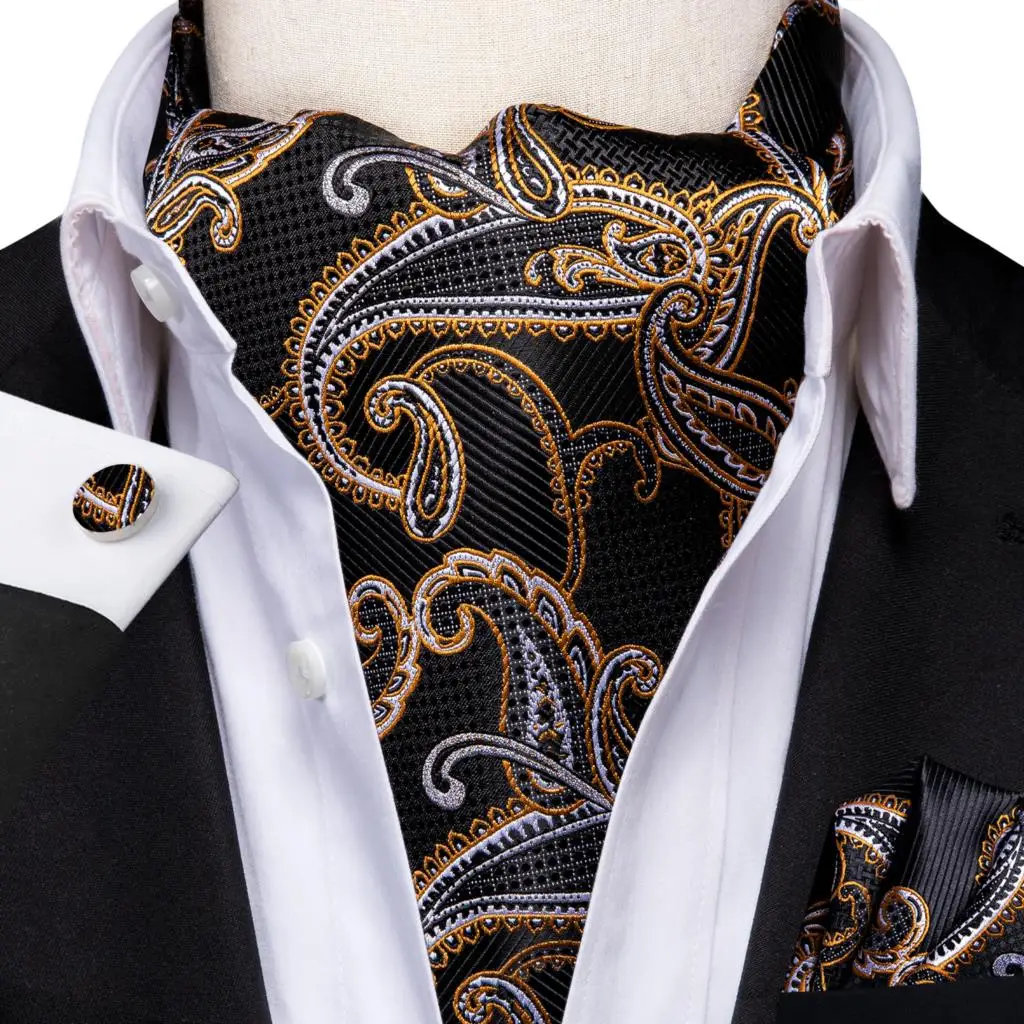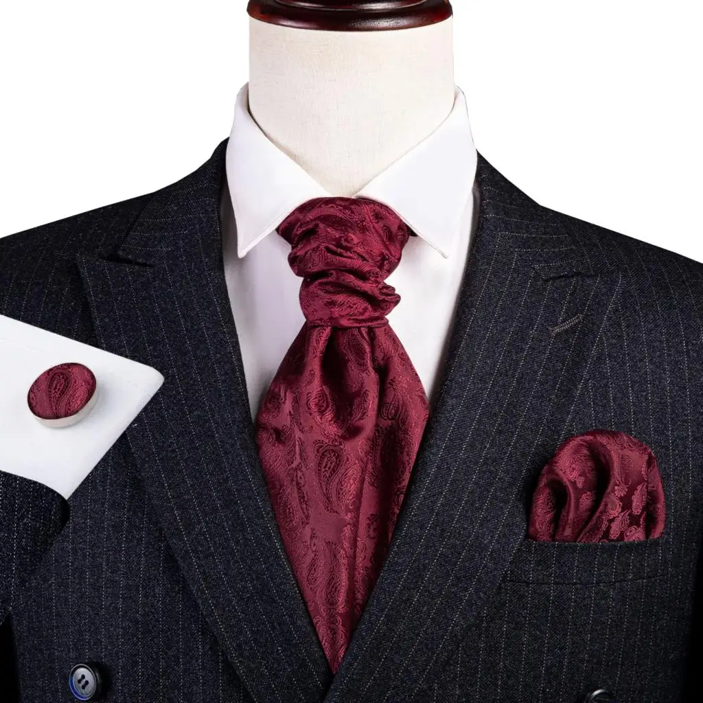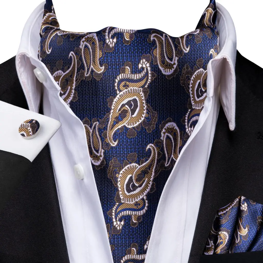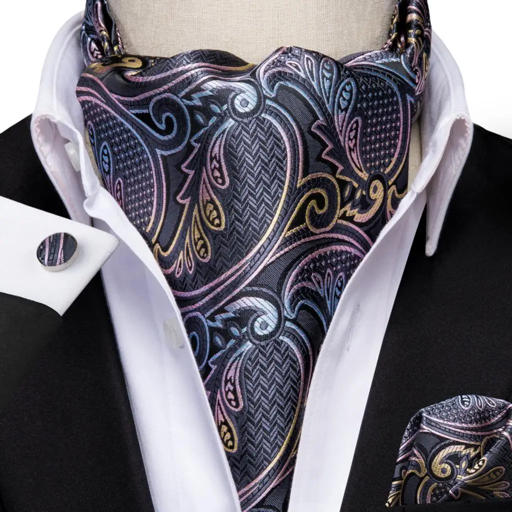 Elegent Silk Mens Ascot Tie Hanky gemelli Set Jacquard Floral Paisley 60 colori cravatta per uomo Wedding Business Prom Hi-Tie
