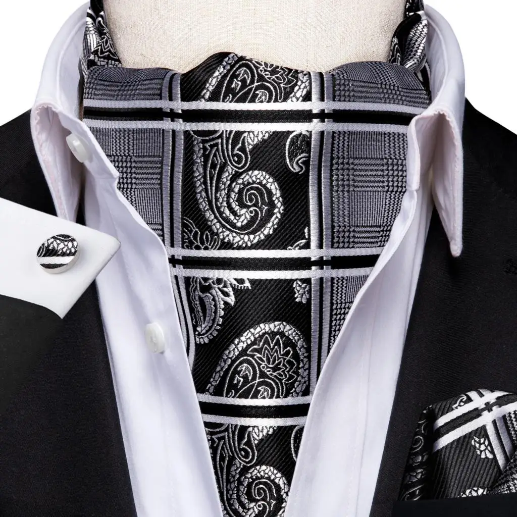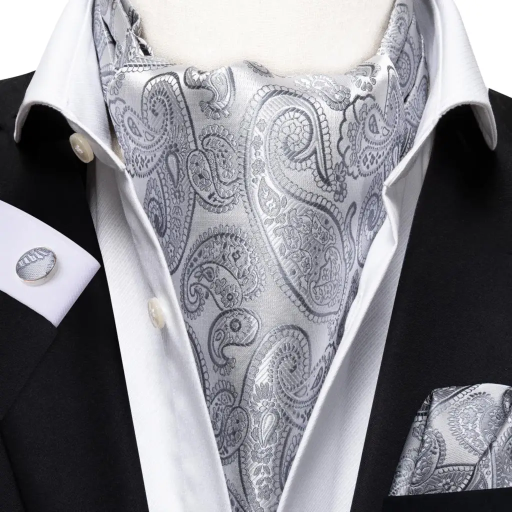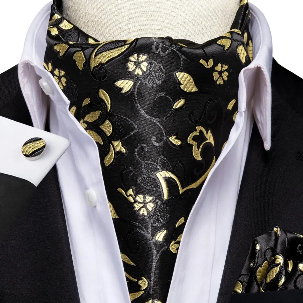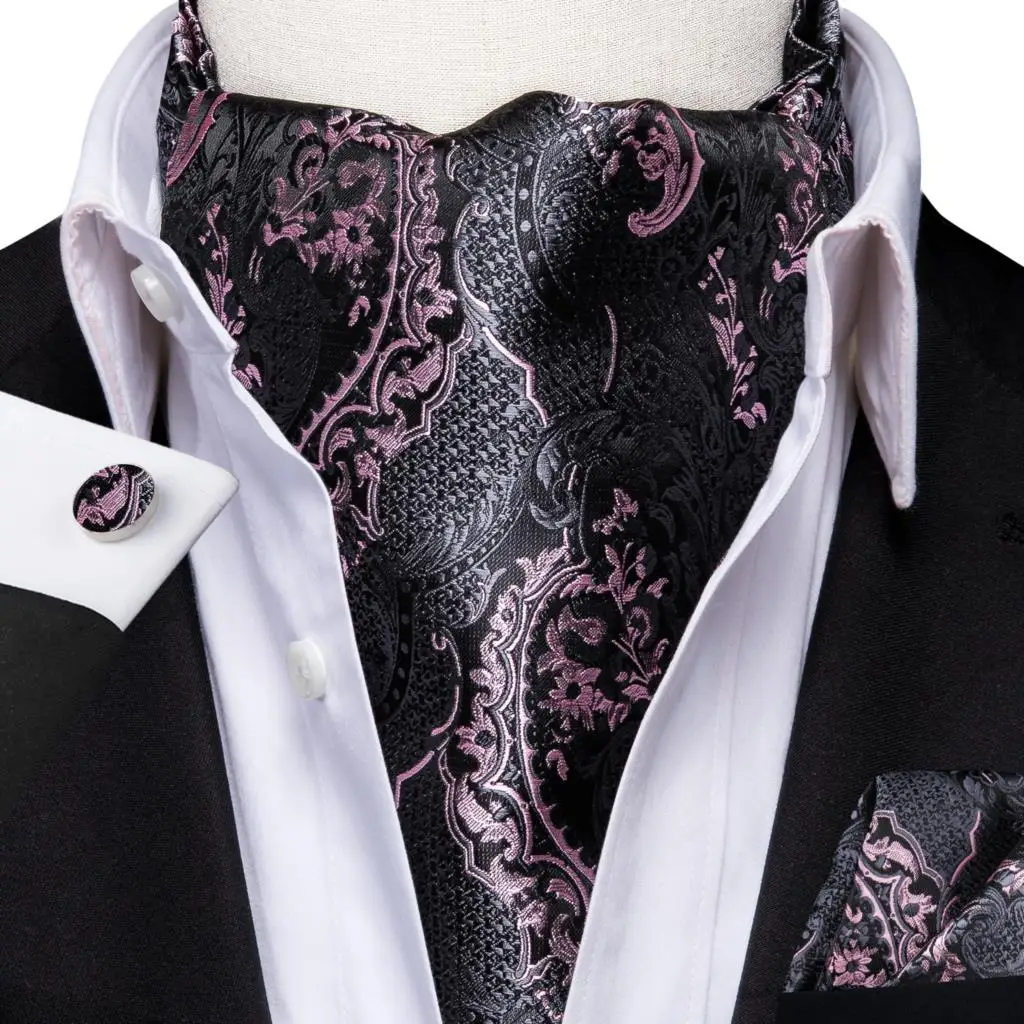 Elegent Silk Mens Ascot Tie Hanky gemelli Set Jacquard Floral Paisley 60 colori cravatta per uomo Wedding Business Prom Hi-Tie