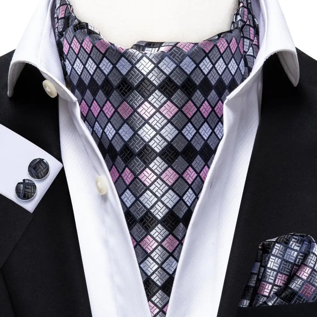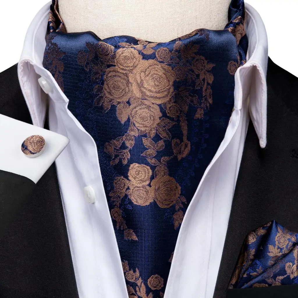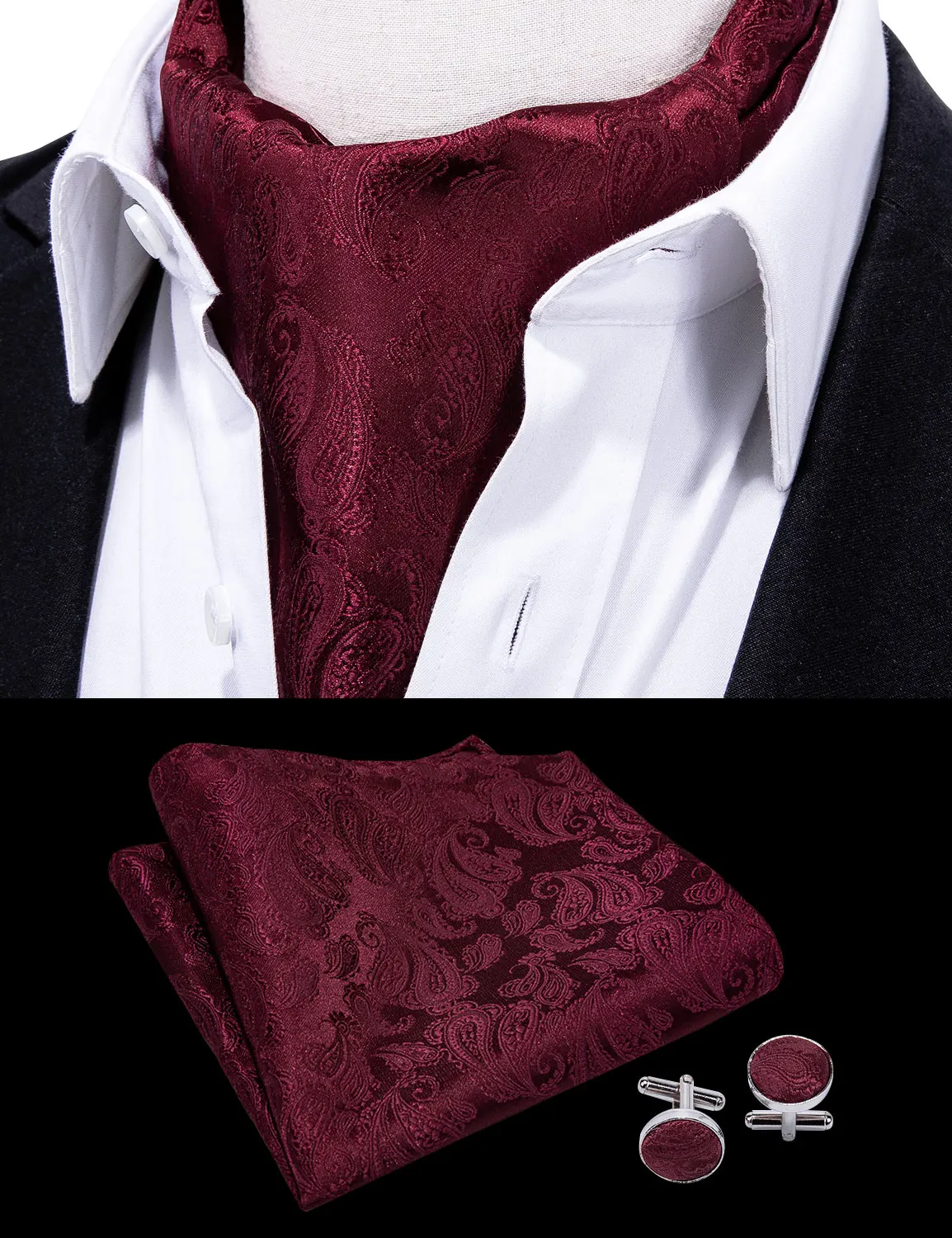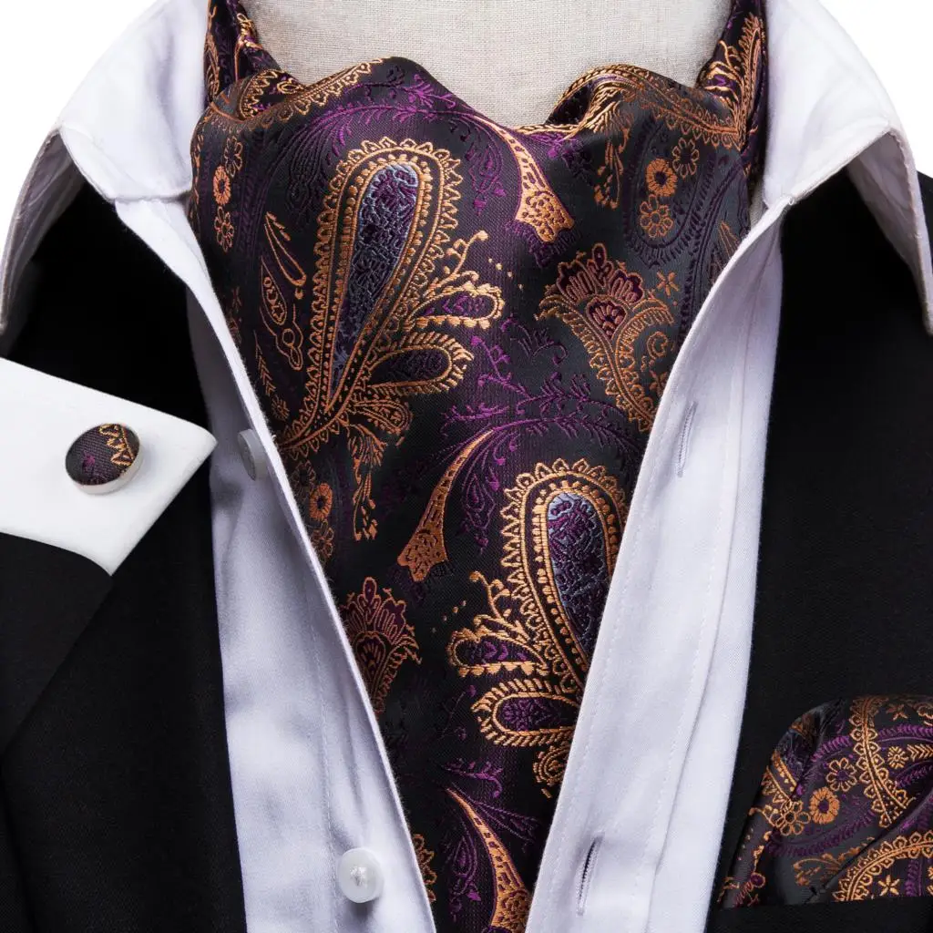 Elegent Silk Mens Ascot Tie Hanky gemelli Set Jacquard Floral Paisley 60 colori cravatta per uomo Wedding Business Prom Hi-Tie