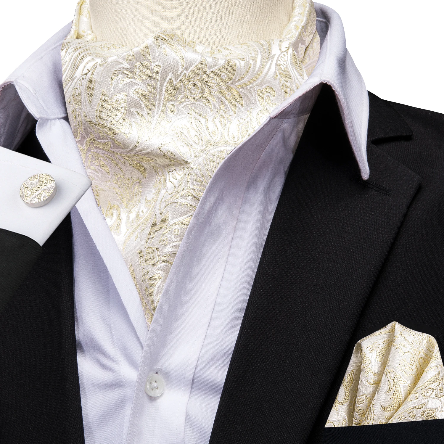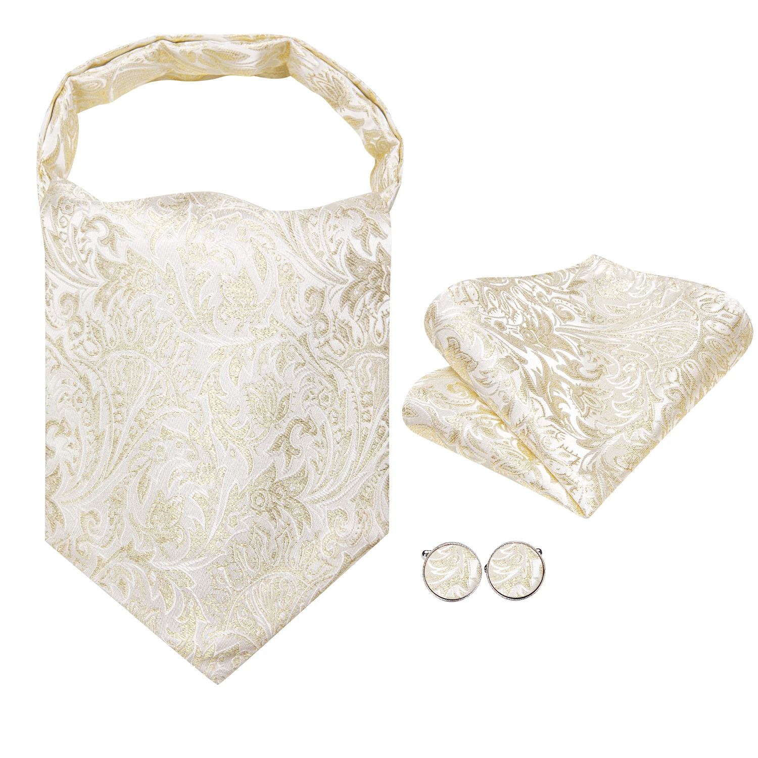 Elegent Silk Mens Ascot Tie Hanky gemelli Set Jacquard Floral Paisley 60 colori cravatta per uomo Wedding Business Prom Hi-Tie