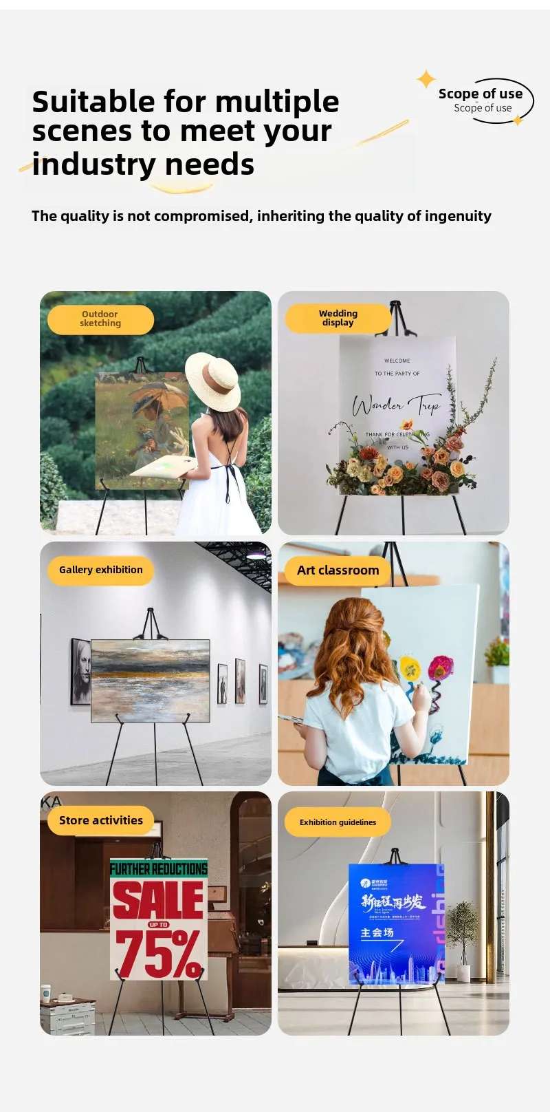 Altezza del poster regolabile: attraverso 4 fibbie scorrevoli su o giù, quindi fissalo all’altezza necessaria, posiziona un poster o un cartello. Puoi regolare l’altezza del cavalletto regolando la distanza tra tre gambe.