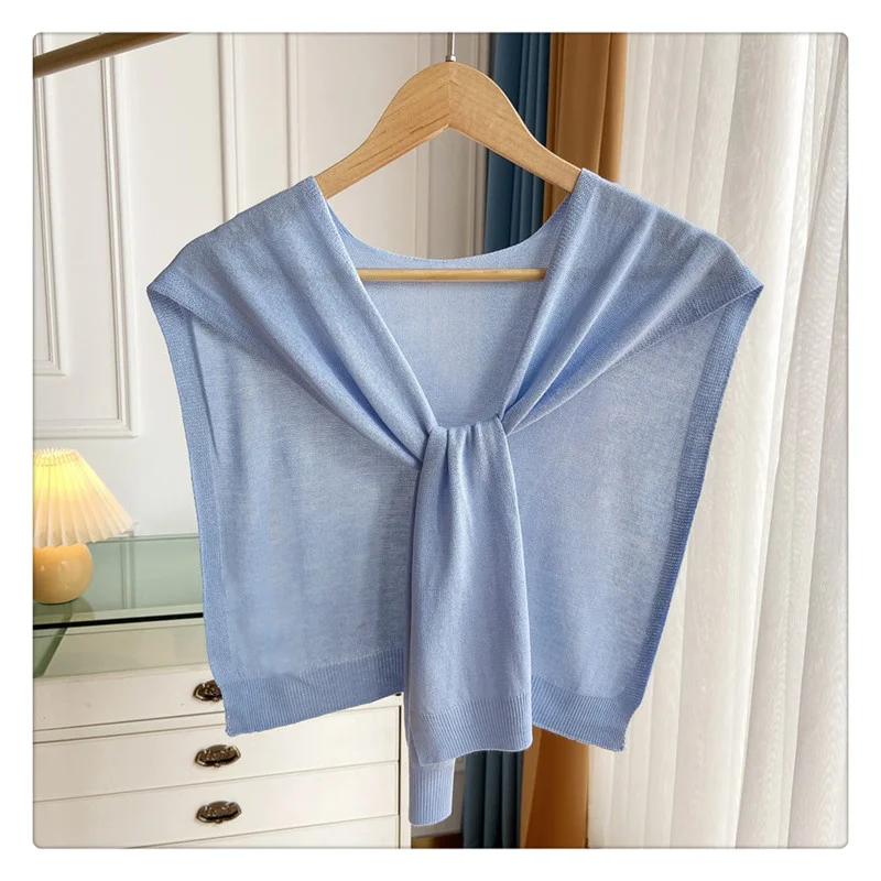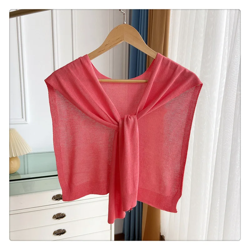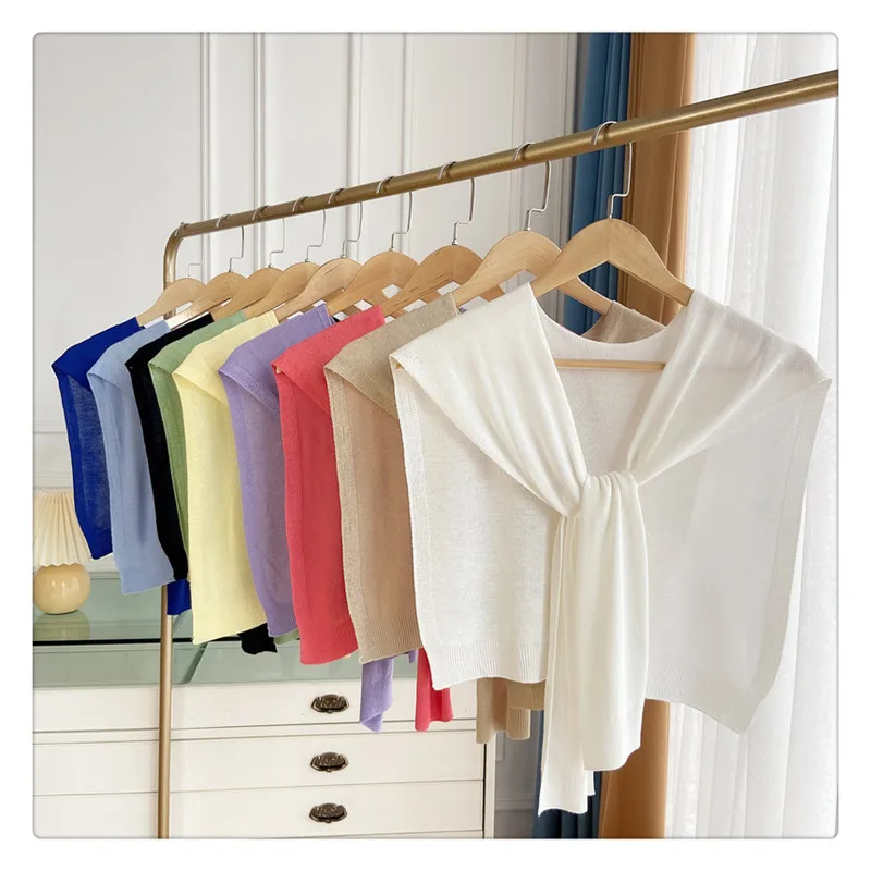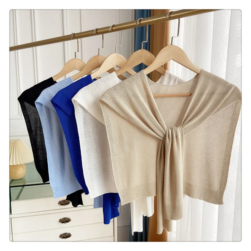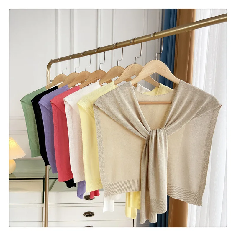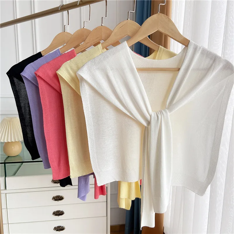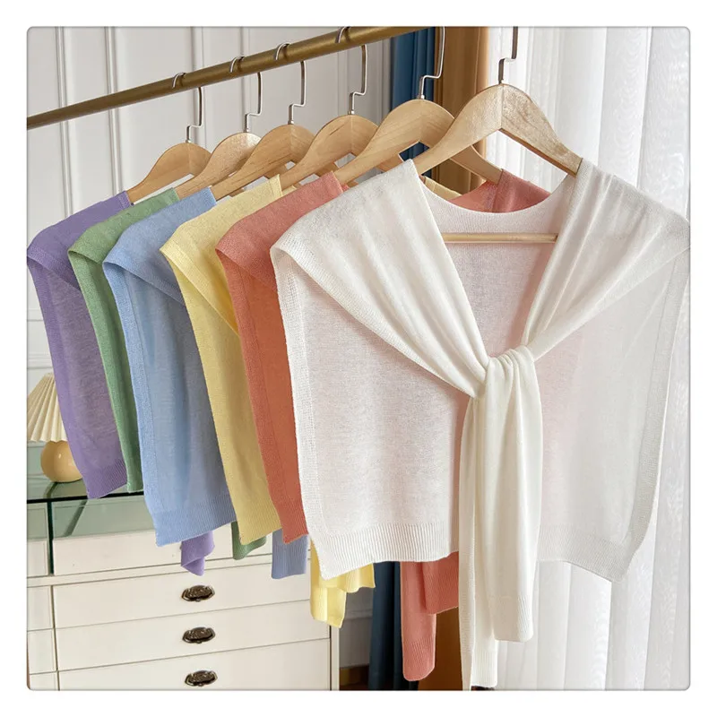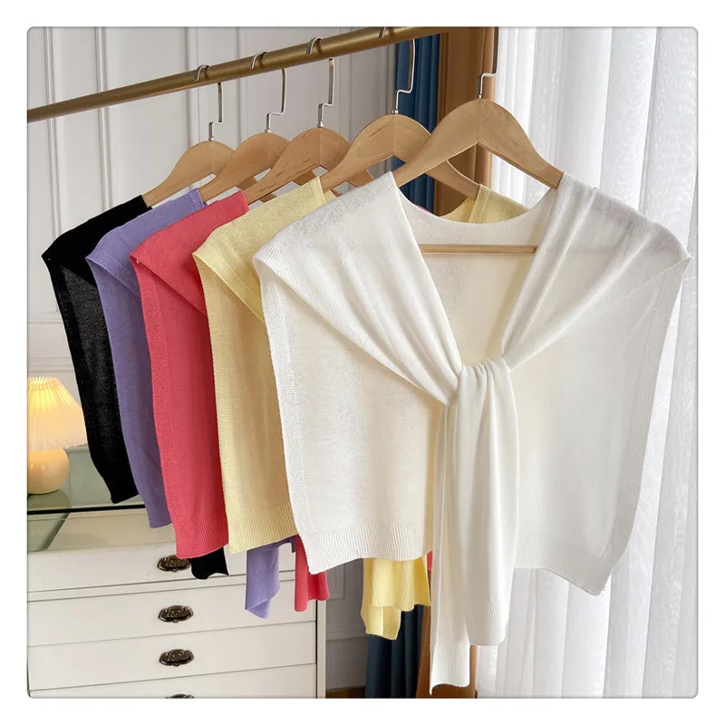 Estate donna maglia spalla protezione solare scialle solido mantello sudcoreano aria condizionata camera femminile protezione del collo mantello di seta ghiaccio