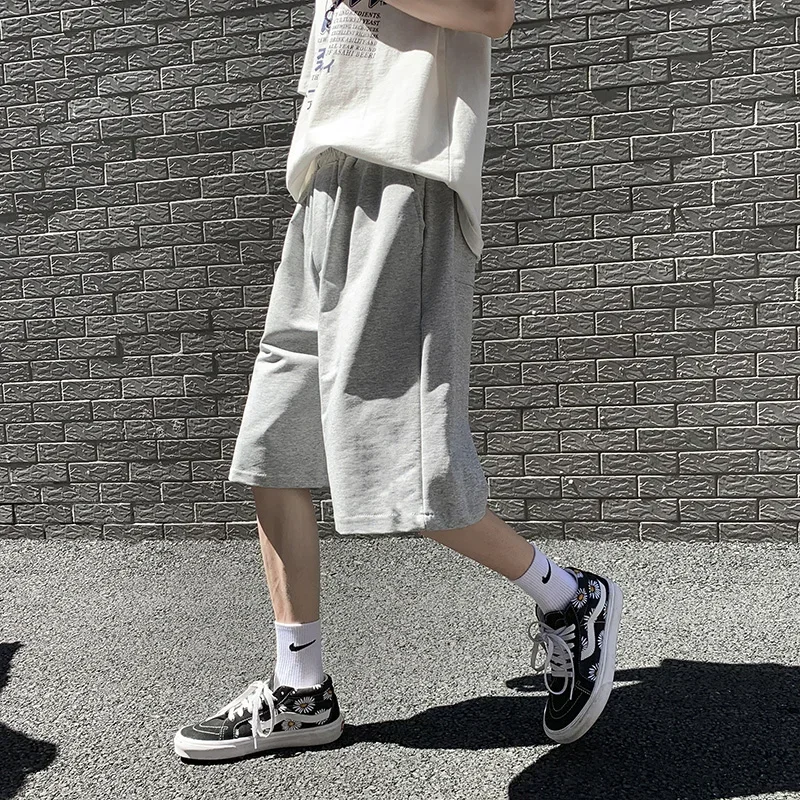Estate nuovi Y2K pantaloni sportivi da uomo larghi in cotone tinta unita pantaloncini Street Wear pantaloncini casual dritti con coulisse semplice uomo
