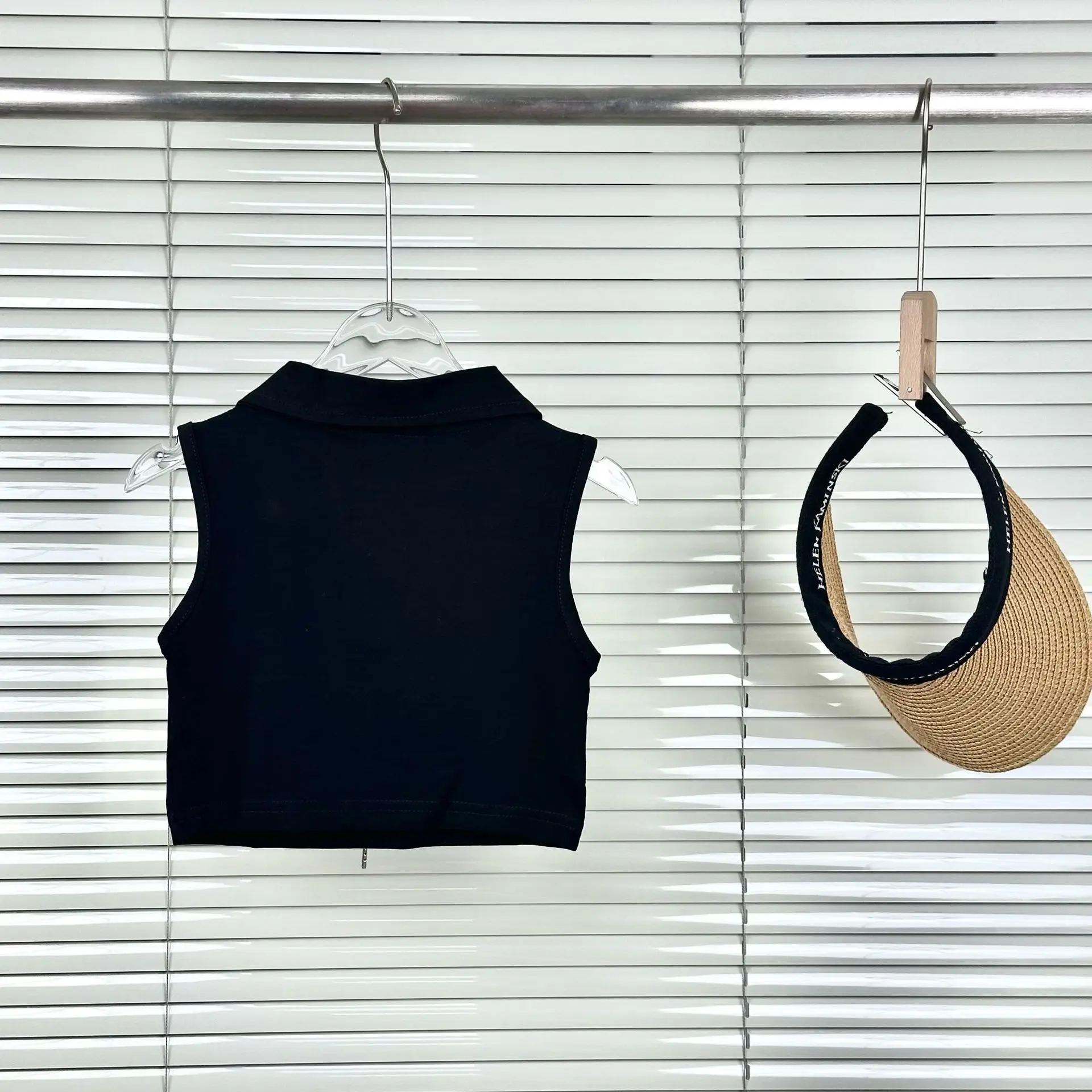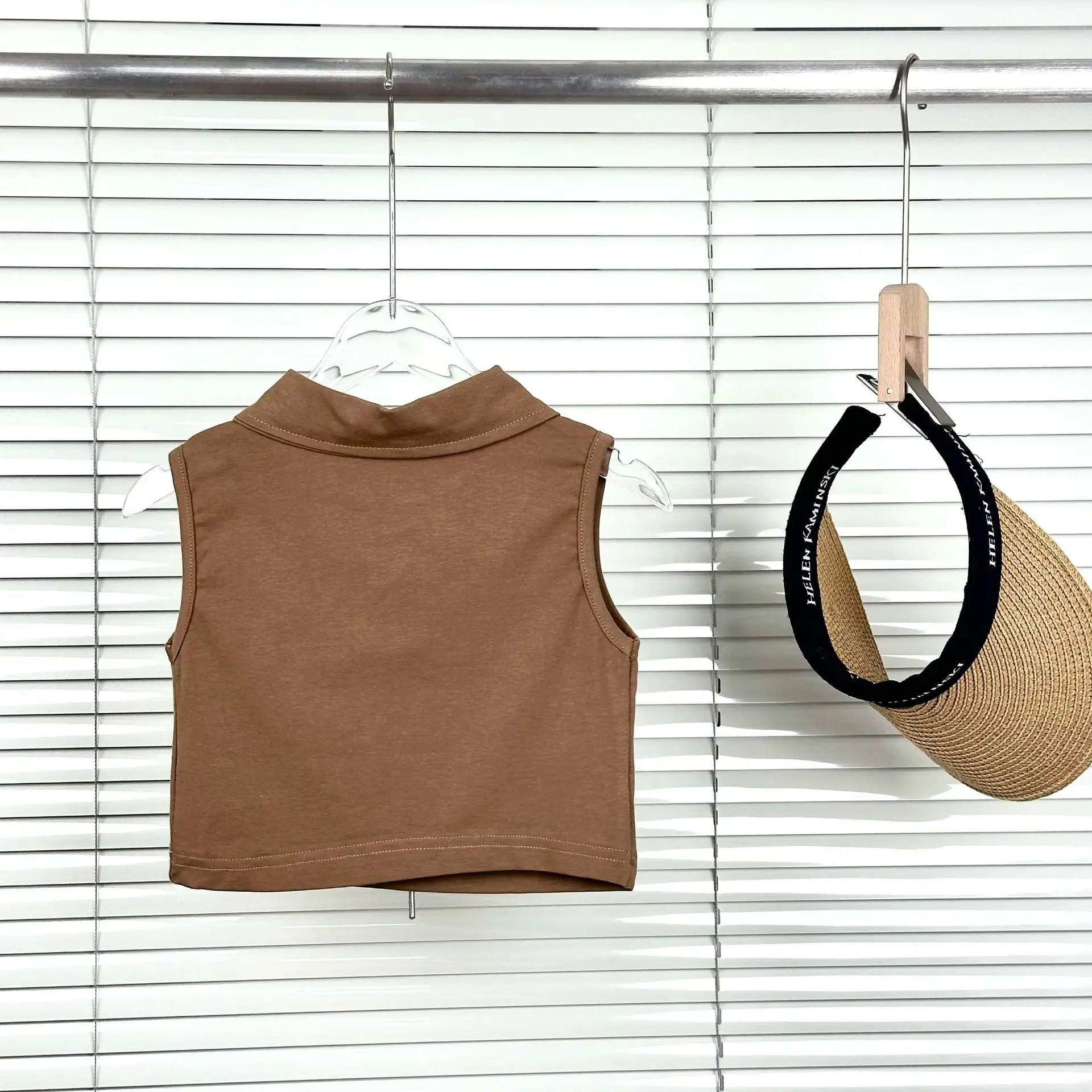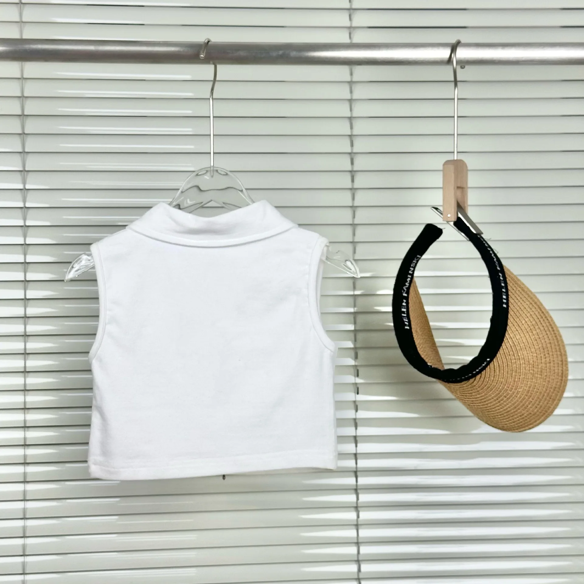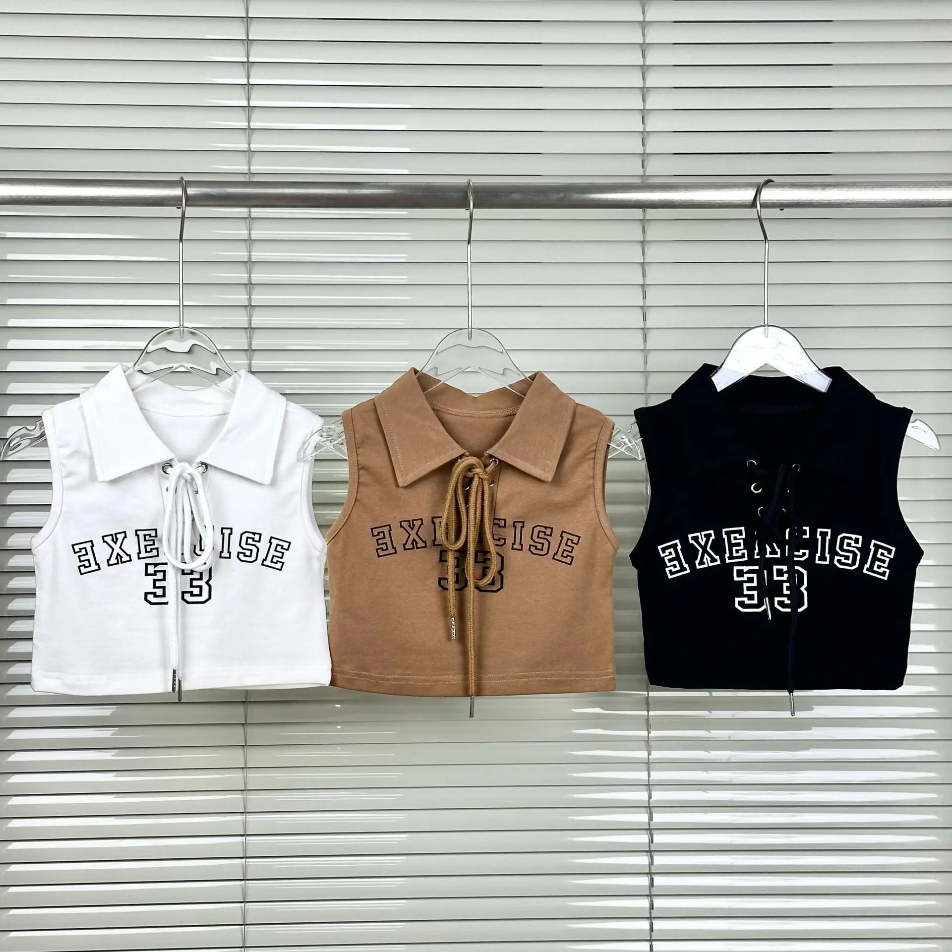 Estate per ragazze nuovo gilet con lacci versione coreana lettere per bambini medi e grandi bavero polo corto moda top senza maniche