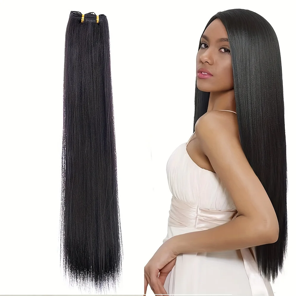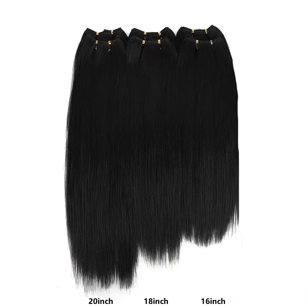 Estensioni del tessuto dei capelli sintetici lisci per le donne 60g clip facile nera naturale in fasci di capelli lunghi resistenti al calore non remy