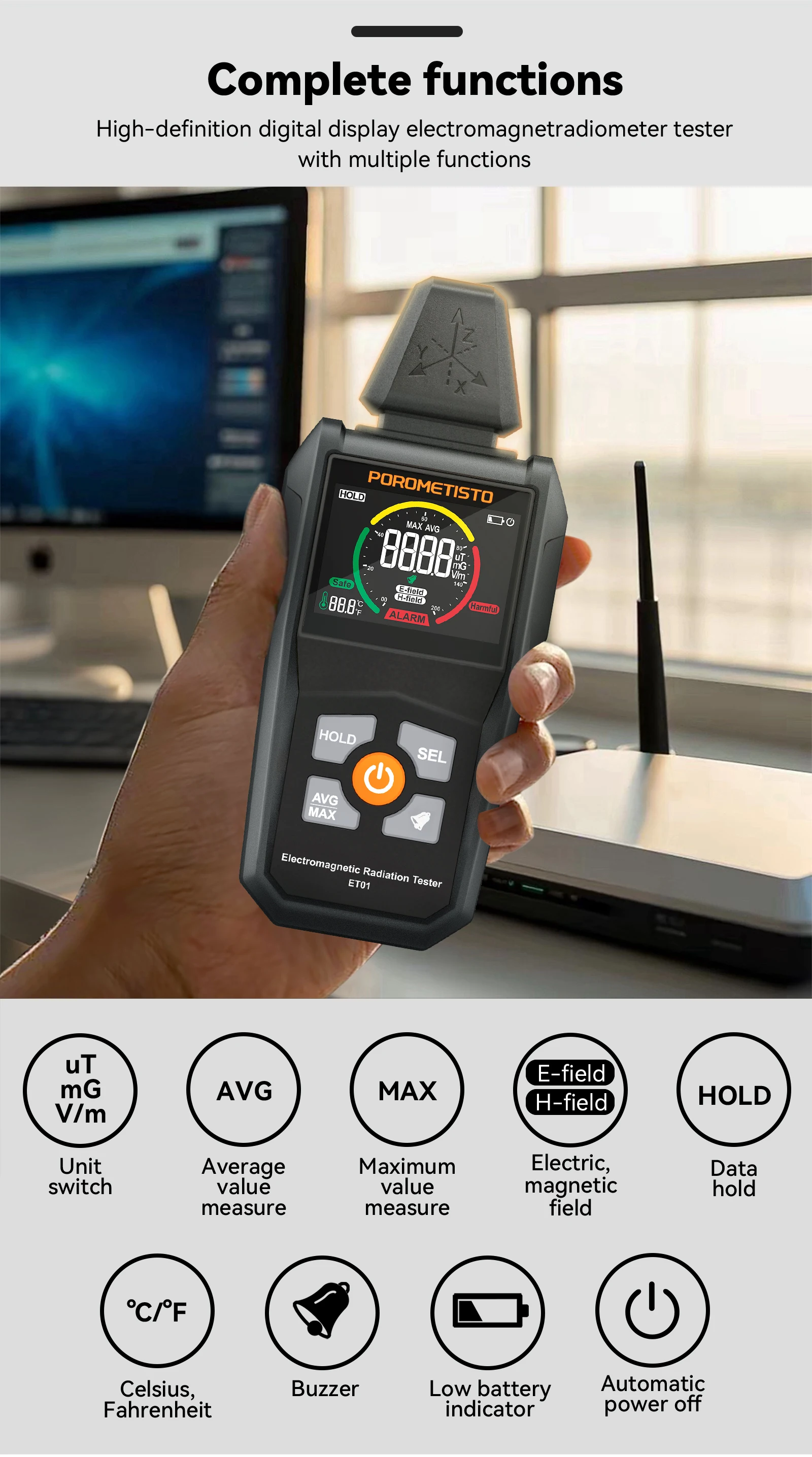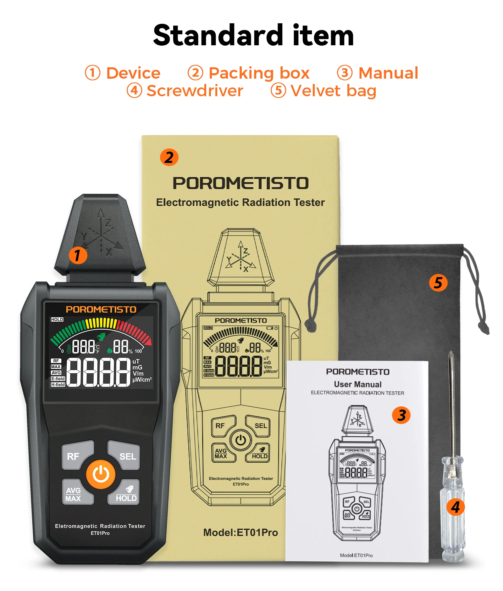 ET01/ET01Pro Tester di radiazioni elettromagnetiche Misuratore EMF digitale Rilevatore di radiazioni di campo elettromagnetico Analizzatori a tre assi