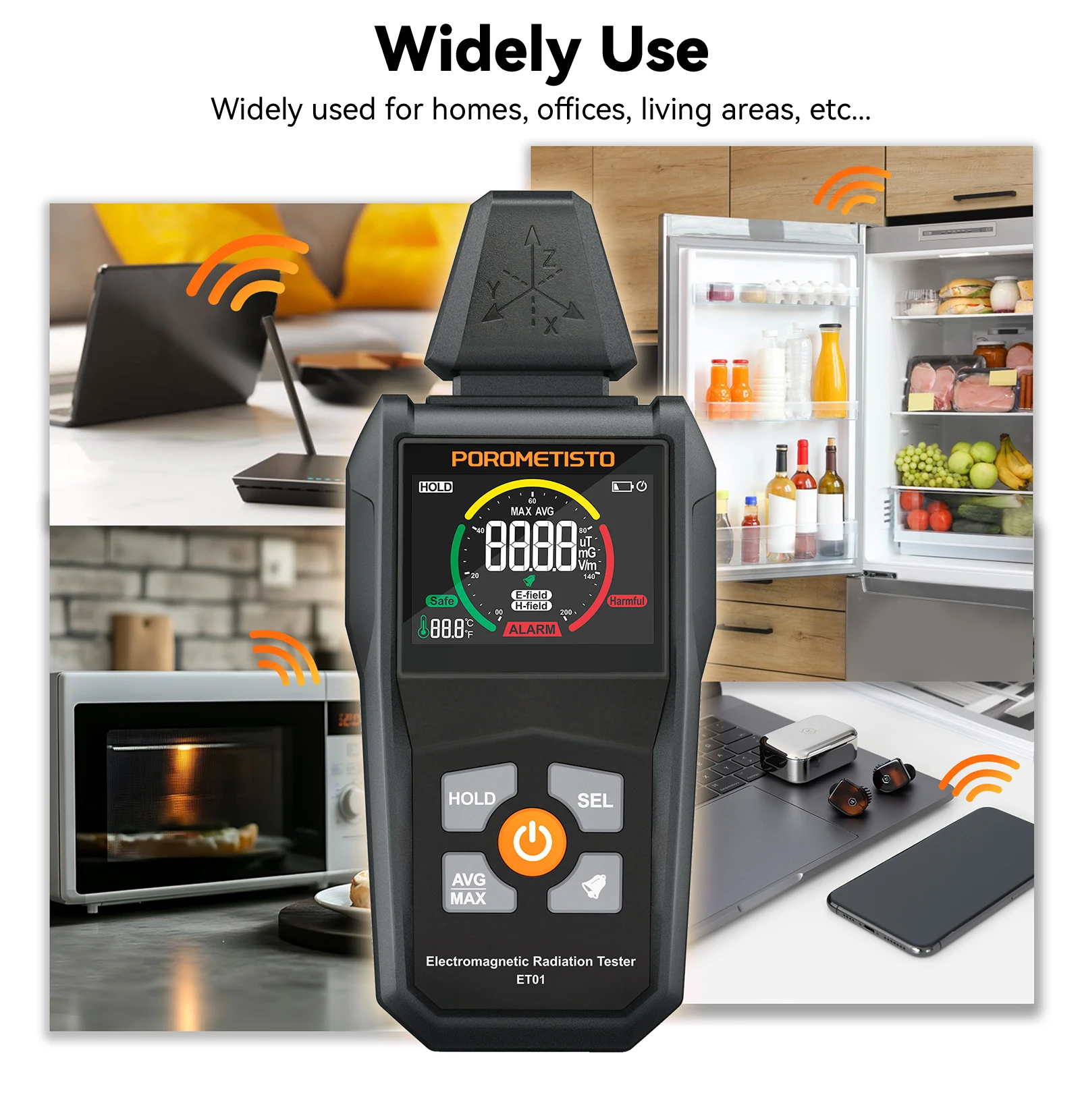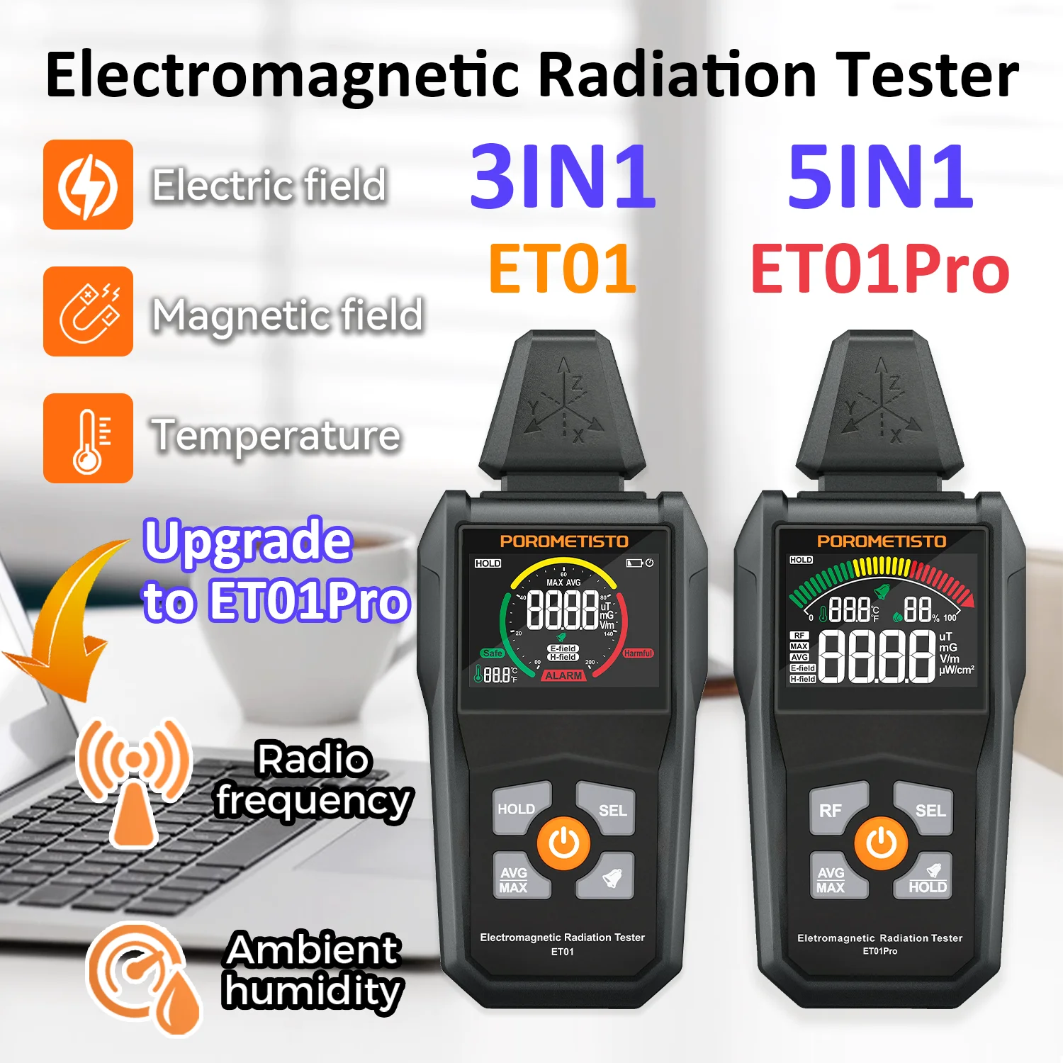ET01/ET01Pro Tester di radiazioni elettromagnetiche Misuratore EMF digitale Rilevatore di radiazioni di campo elettromagnetico Analizzatori a tre assi