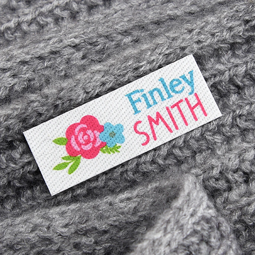 Etichette in cotone personalizzate per abbigliamento – Etichette ecologiche termoadesive/cucire con testo e logo personalizzati